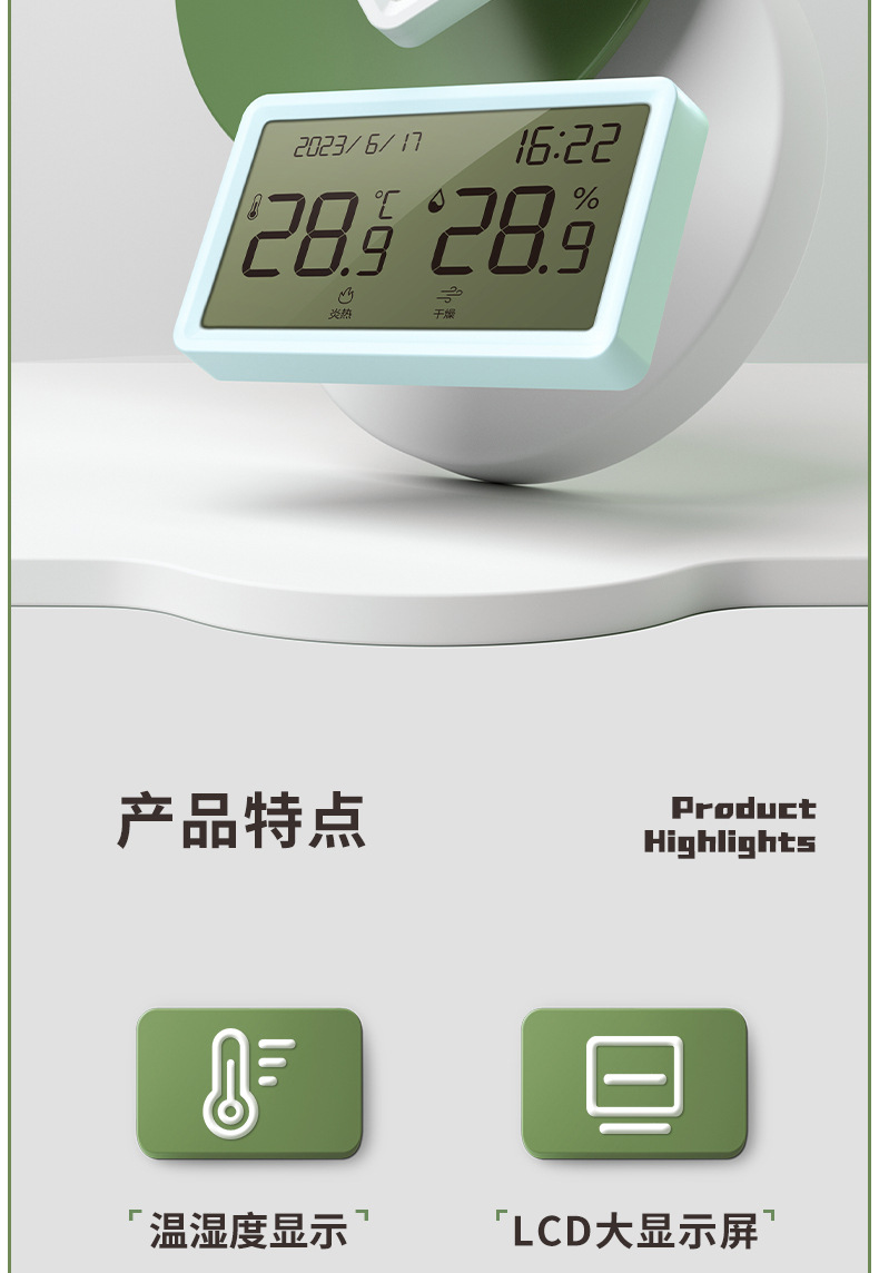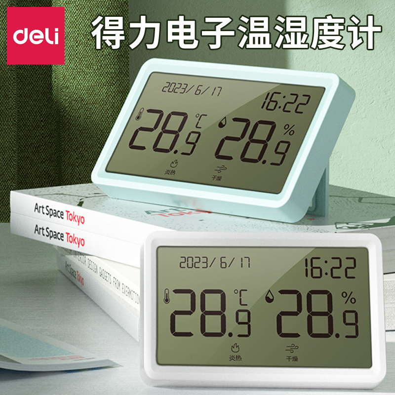 得力电子温湿度计学生白领办公桌面简约电子闹钟温度计湿度计批发