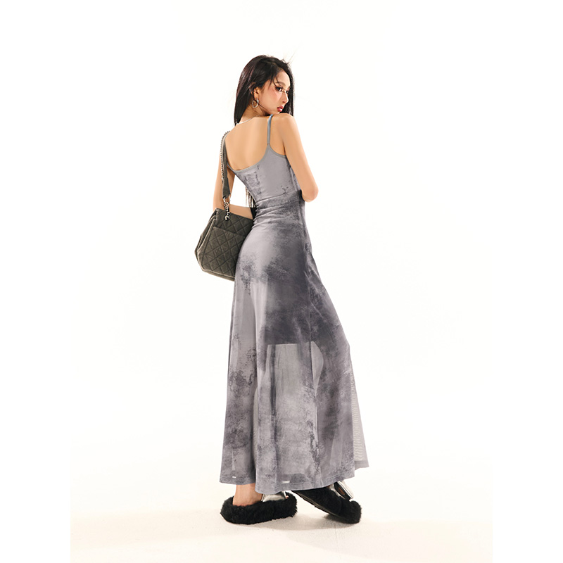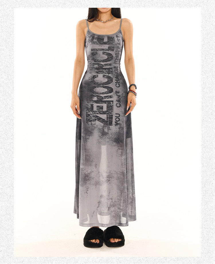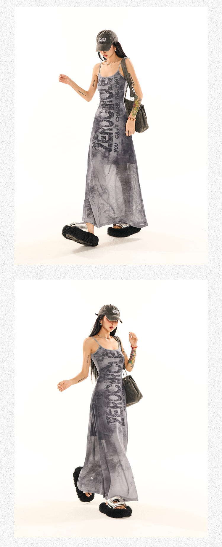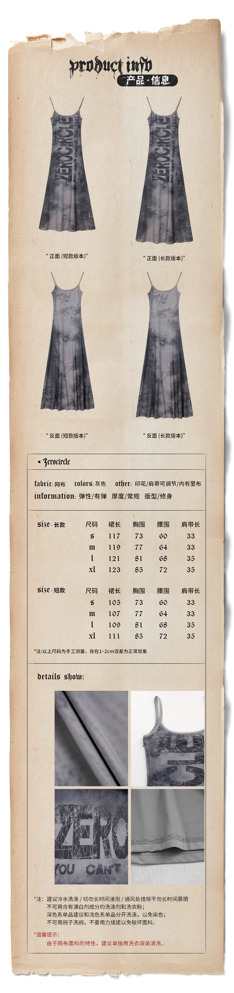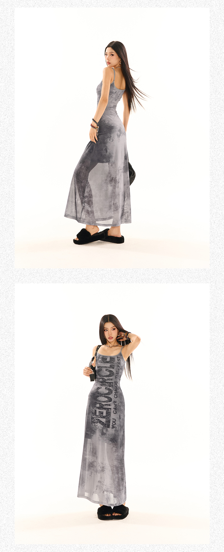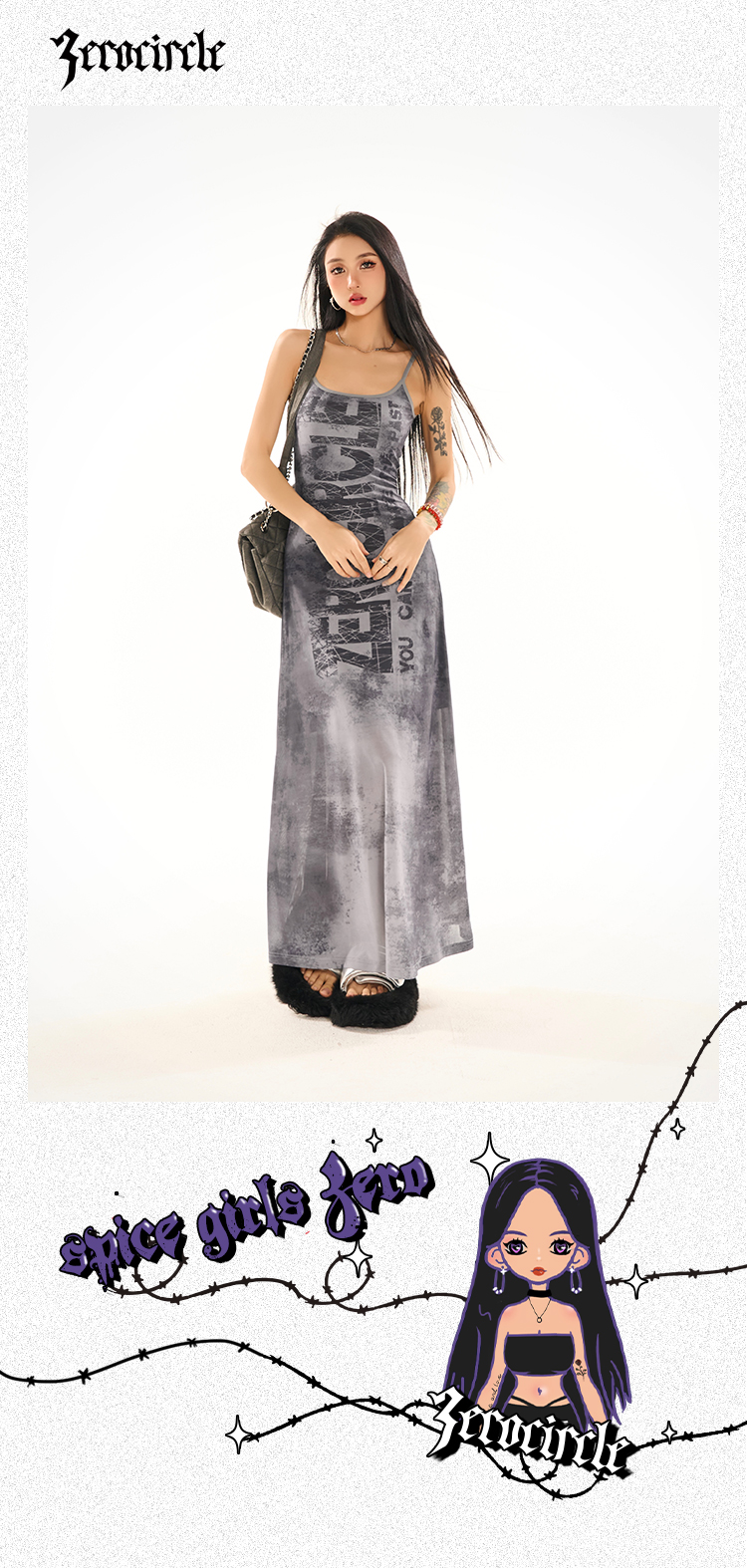野生zerocircle紮染印花吊帶洋裝女夏季辣妹小眾修身顯瘦長裙子