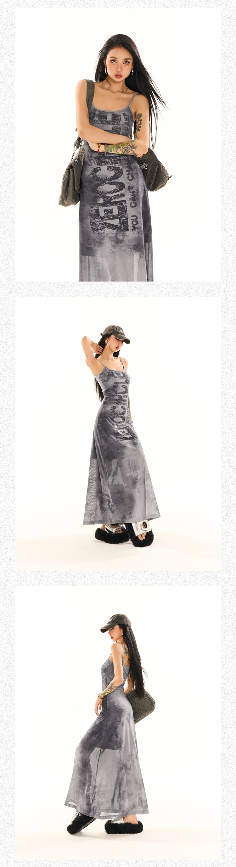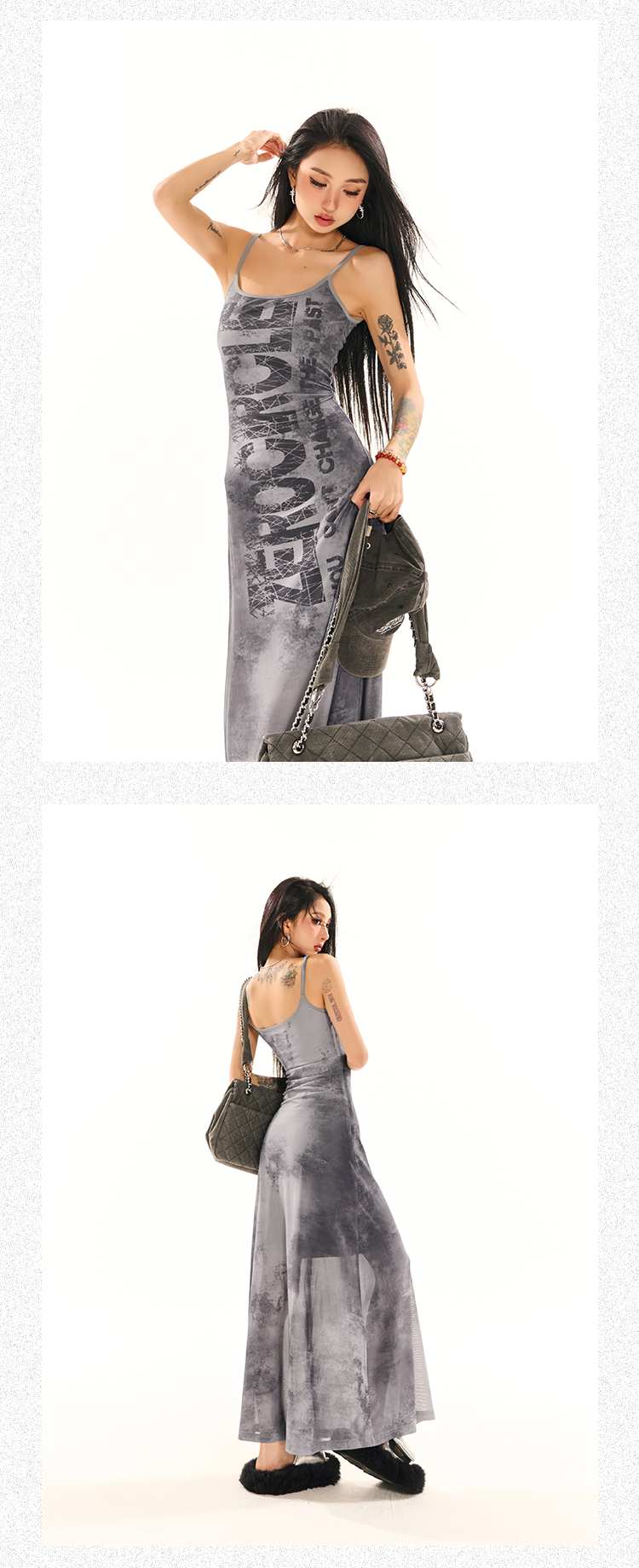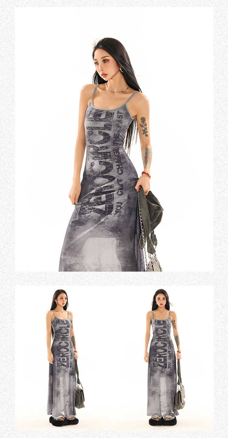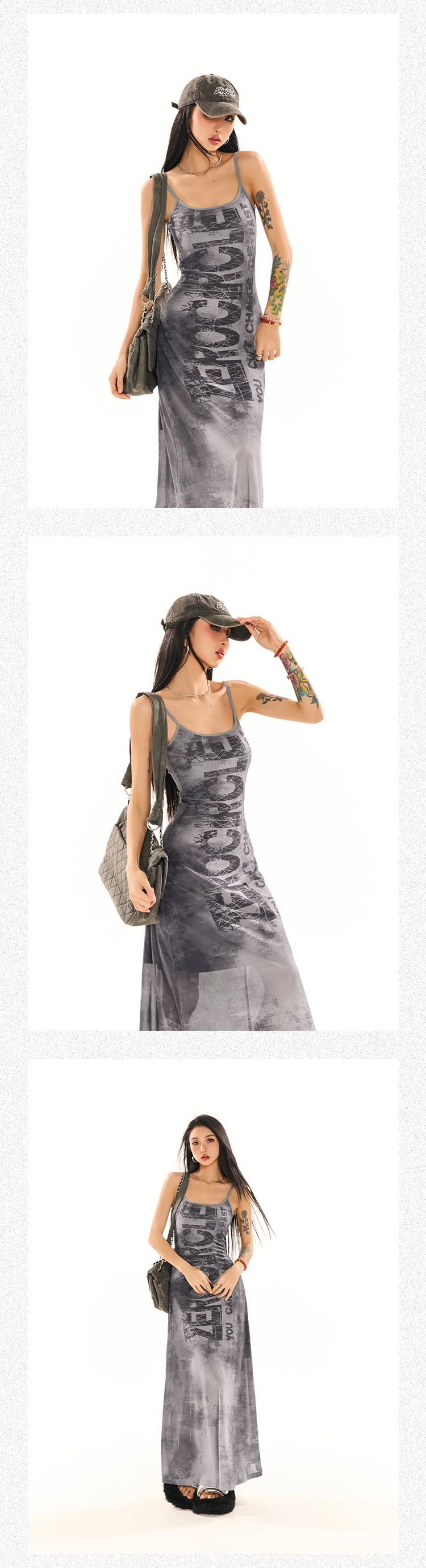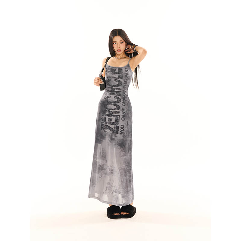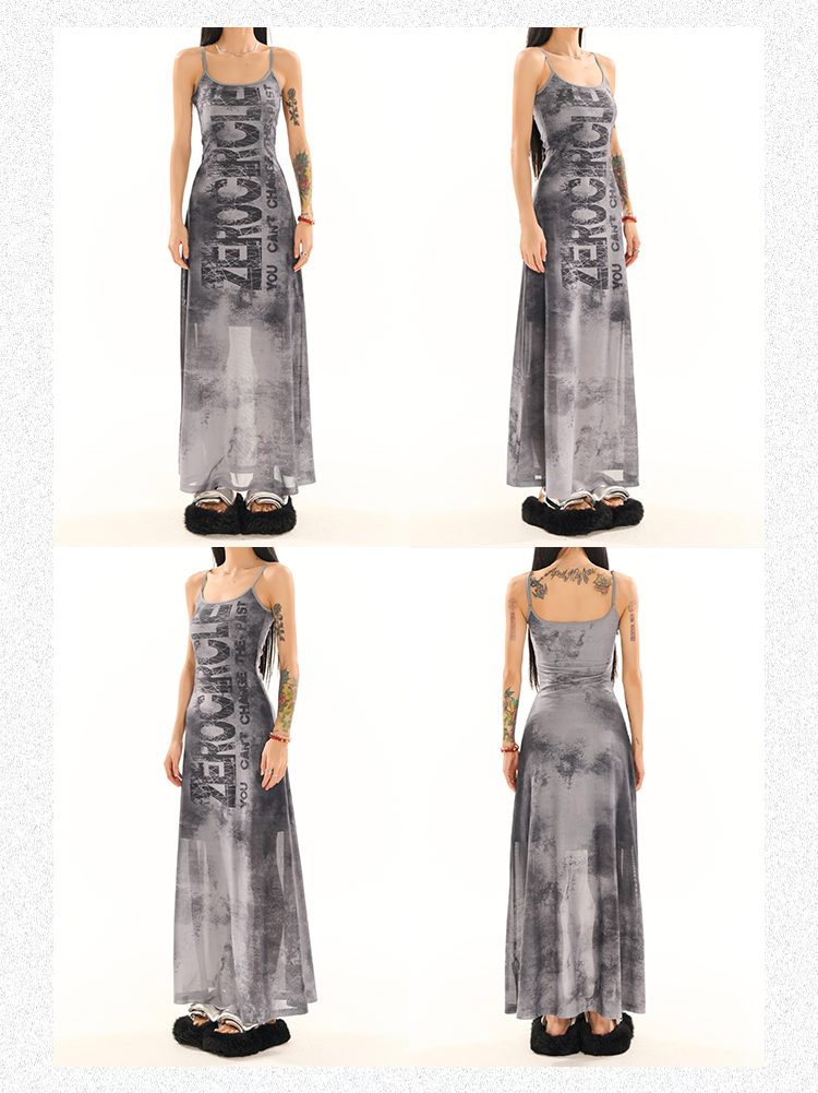 野生zerocircle紮染印花吊帶洋裝女夏季辣妹小眾修身顯瘦長裙子