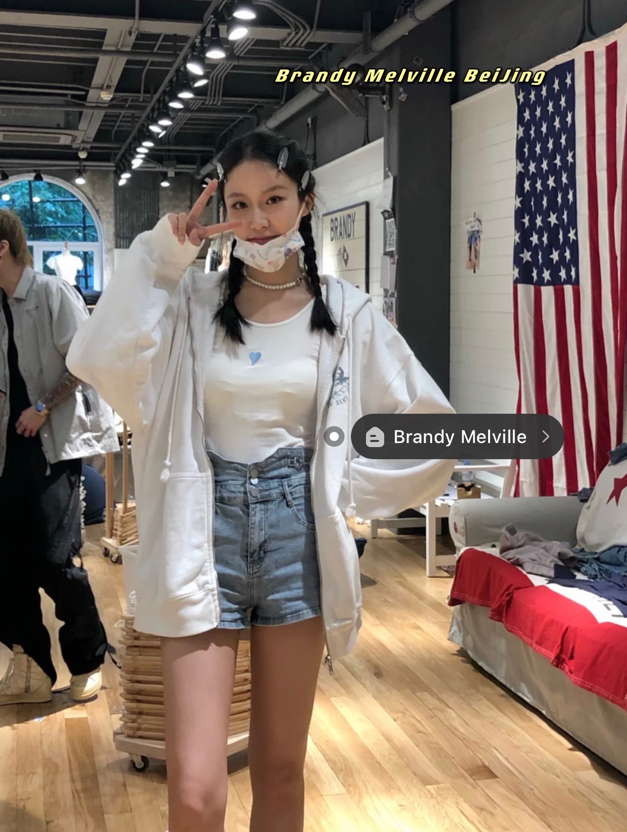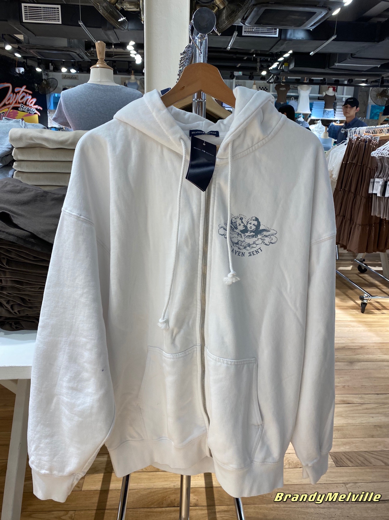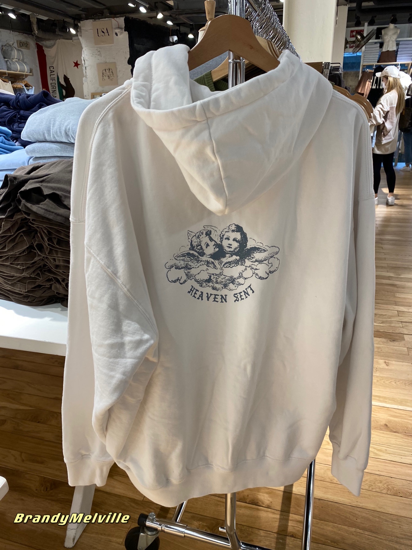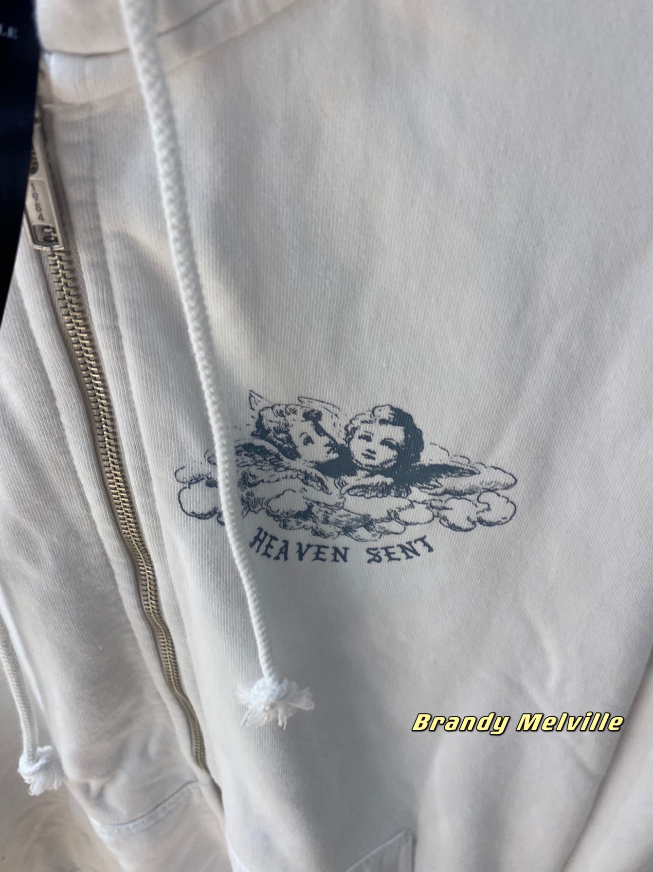 BrandyMelville正品國內代購小天使印花圖案連帽拉鍊寬鬆百搭厚棉T