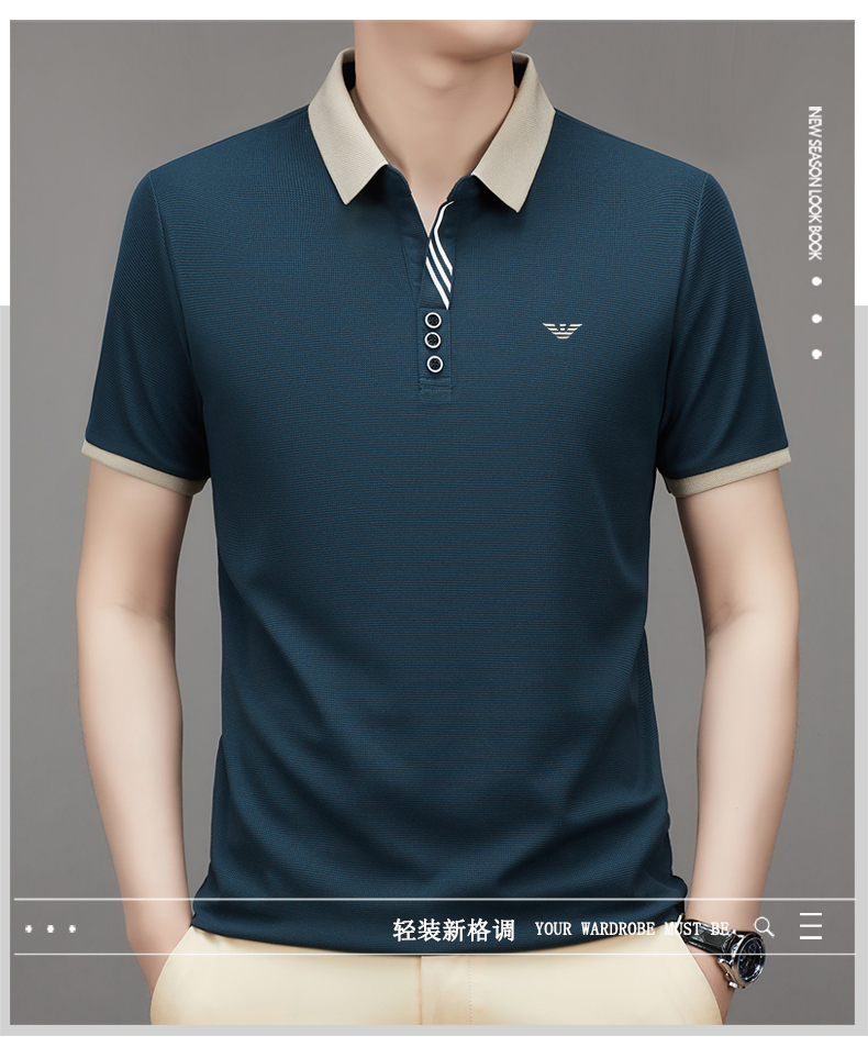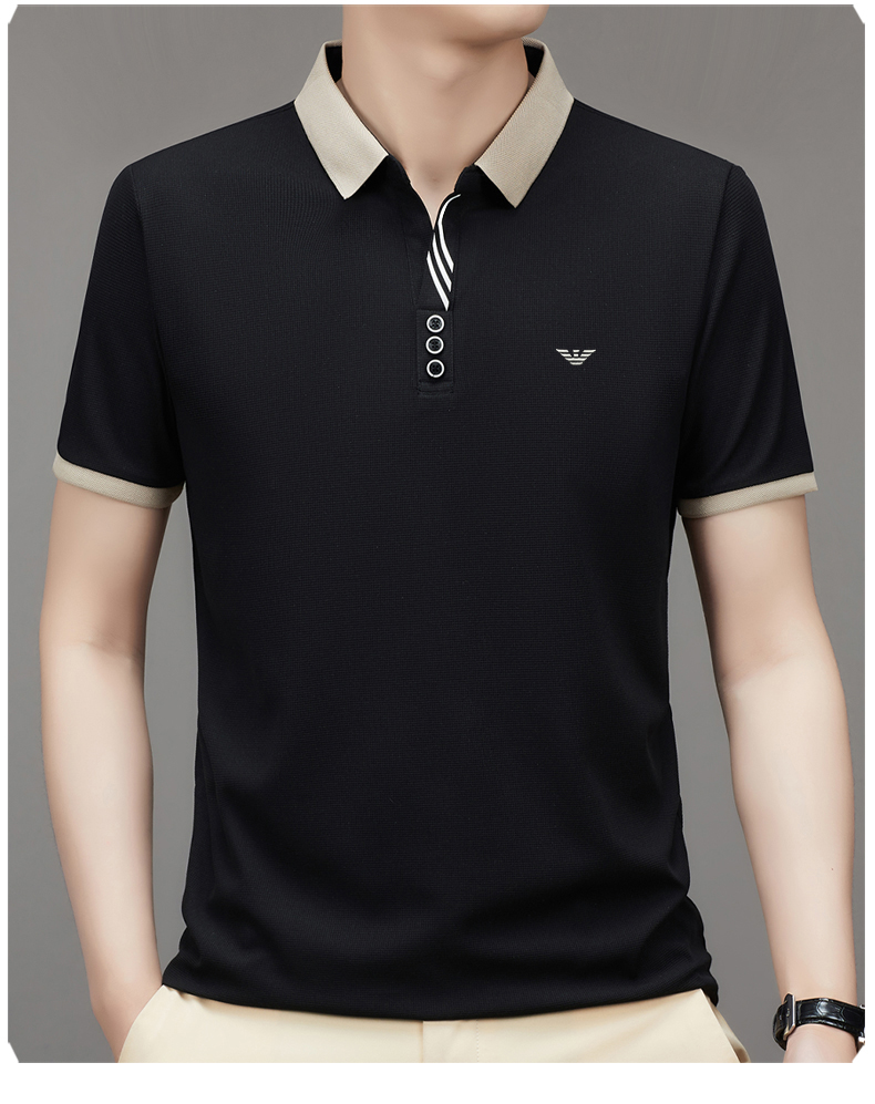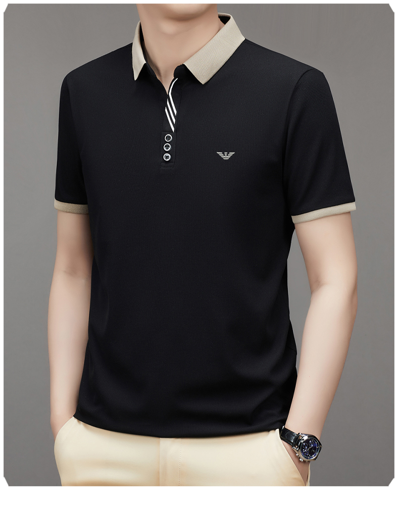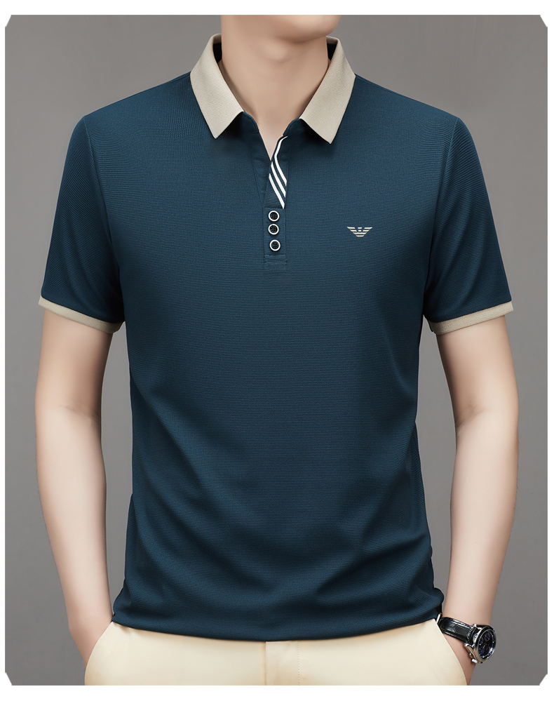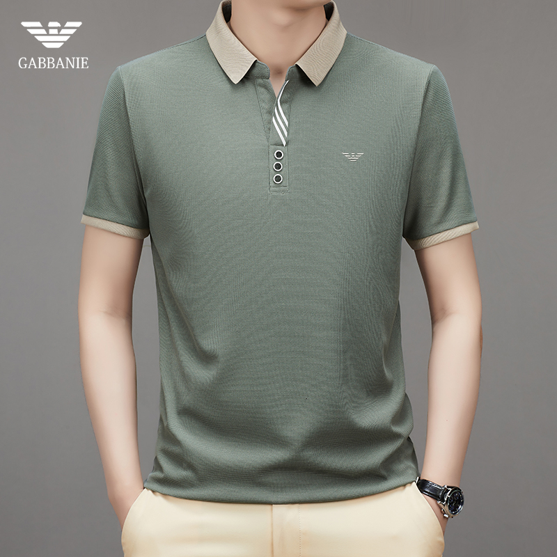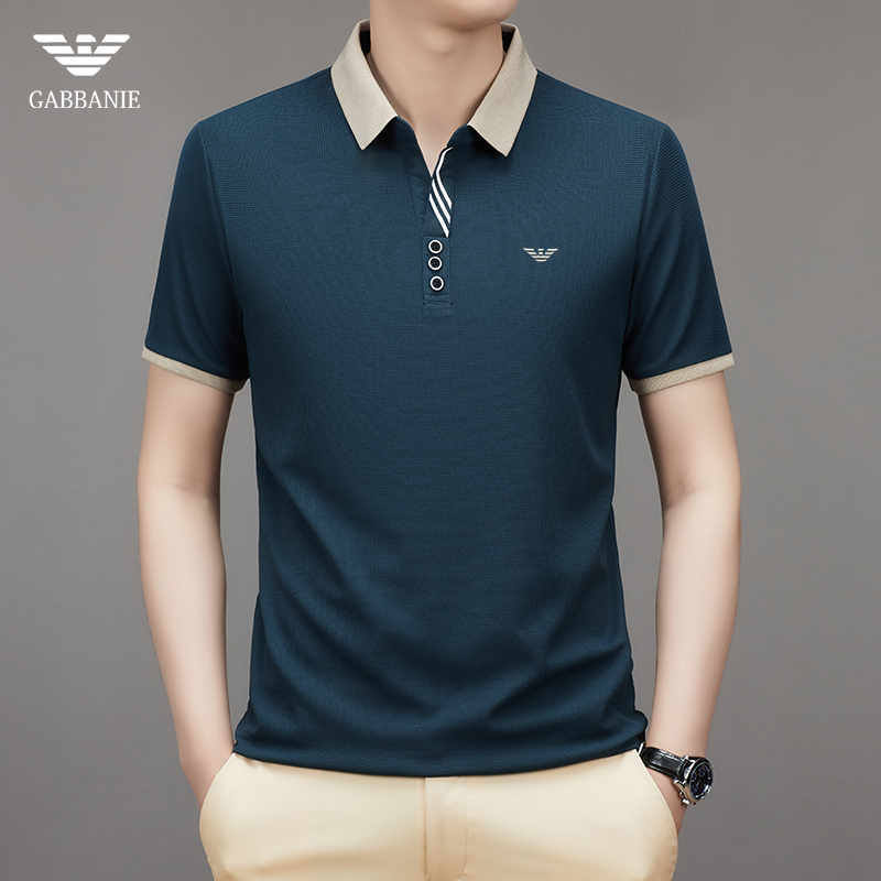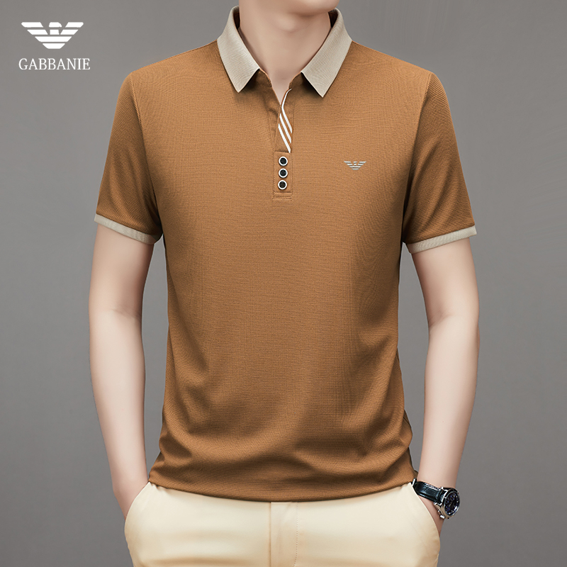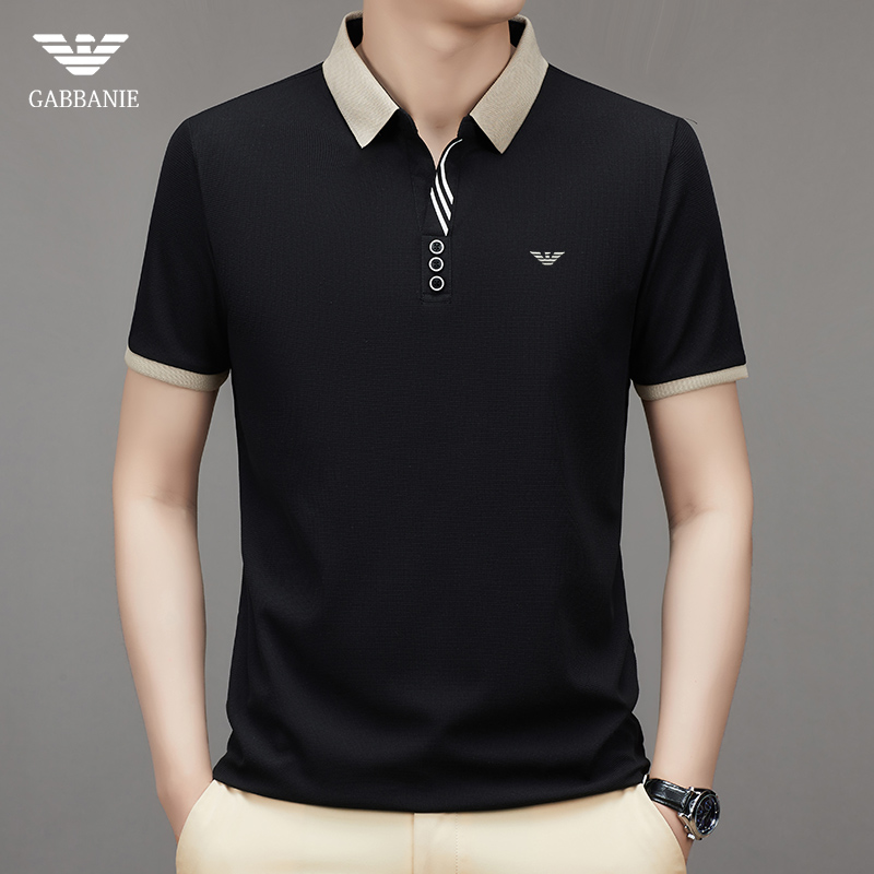 奇 亞曼尼亞夏季男士短袖Polo衫中年商務休閒百搭薄款冰絲翻領T恤