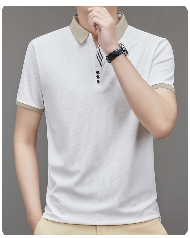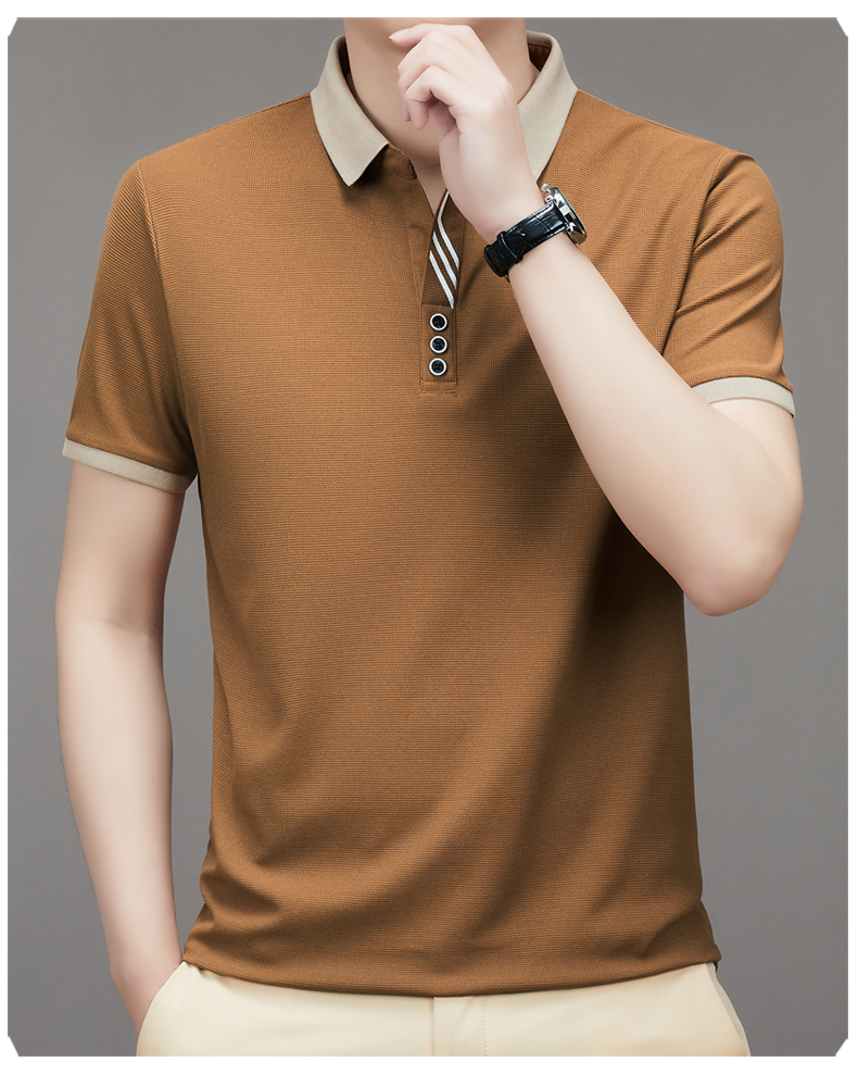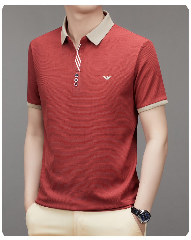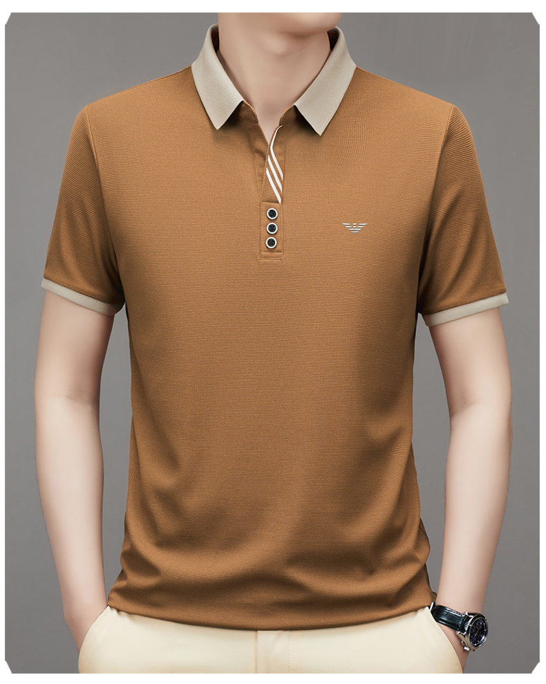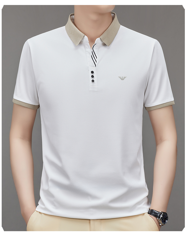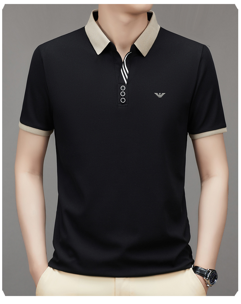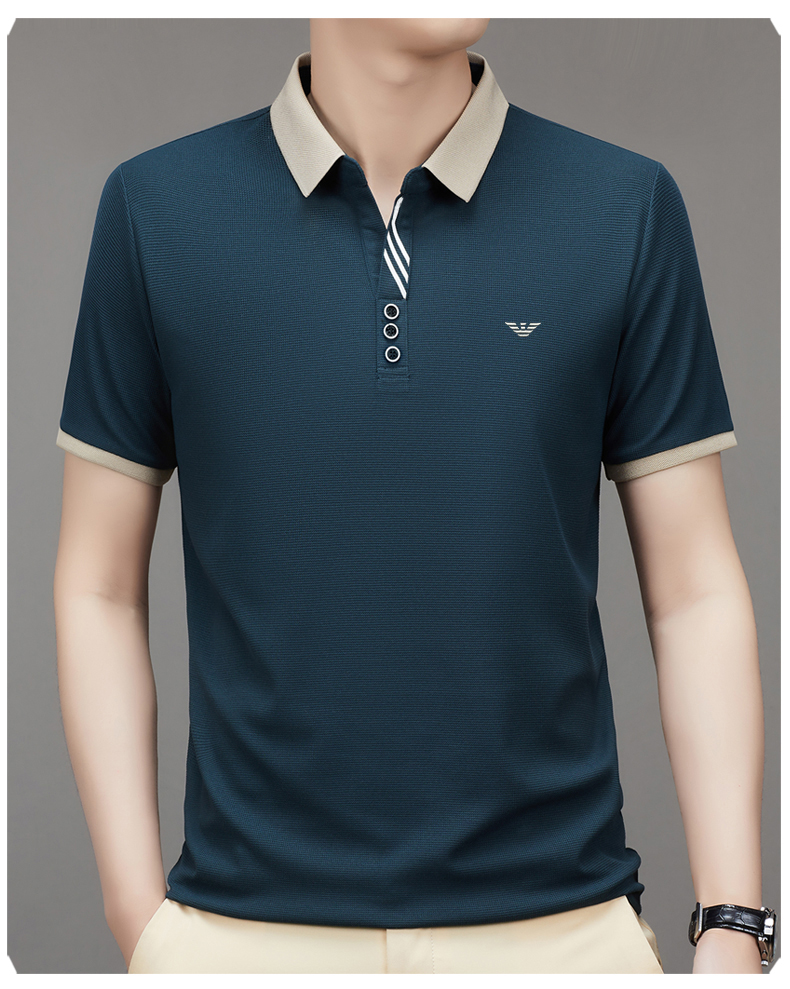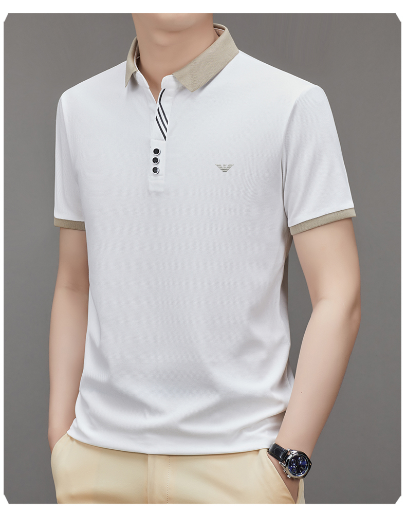 奇 亞曼尼亞夏季男士短袖Polo衫中年商務休閒百搭薄款冰絲翻領T恤