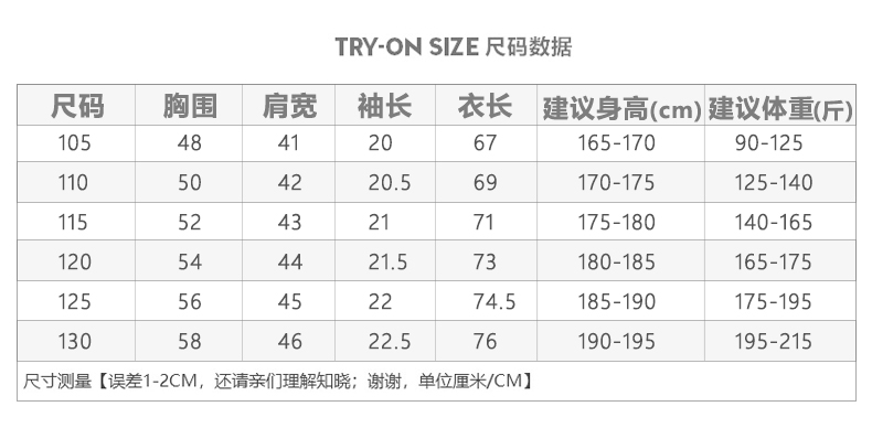 尺碼 105 110 115 120 125 130
