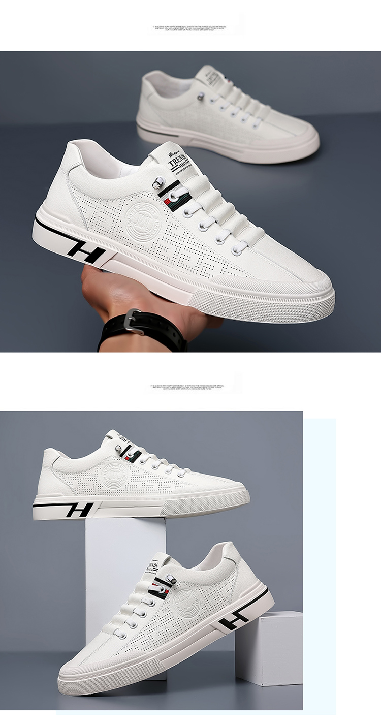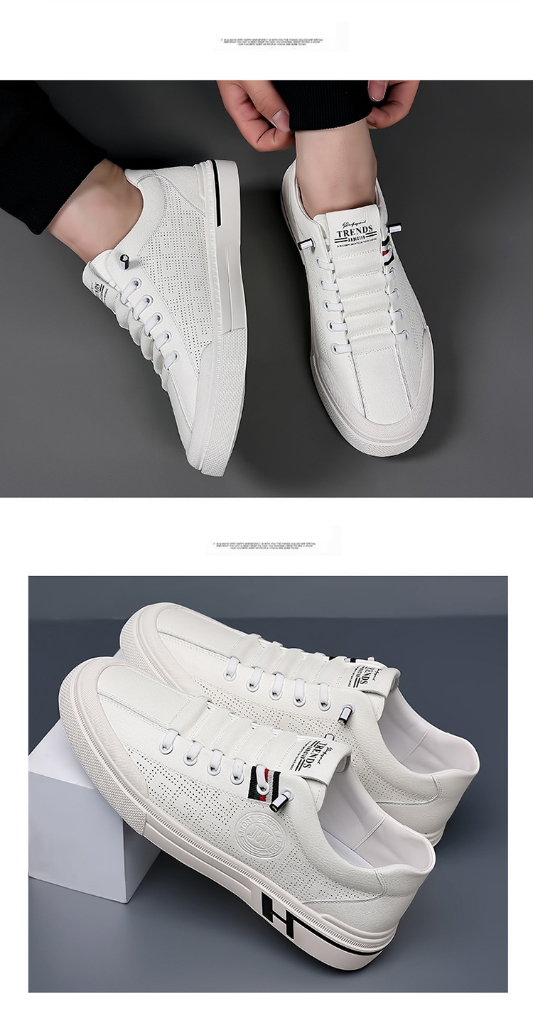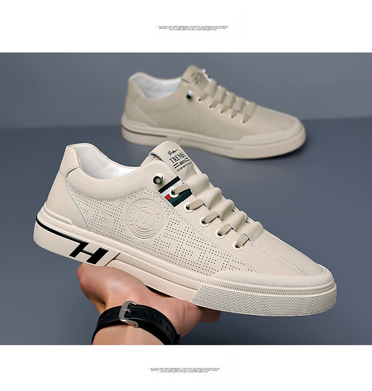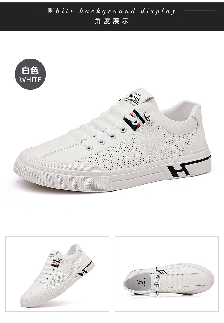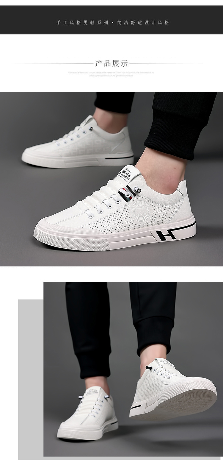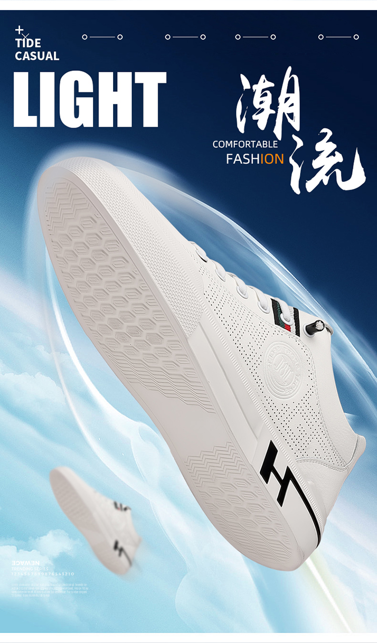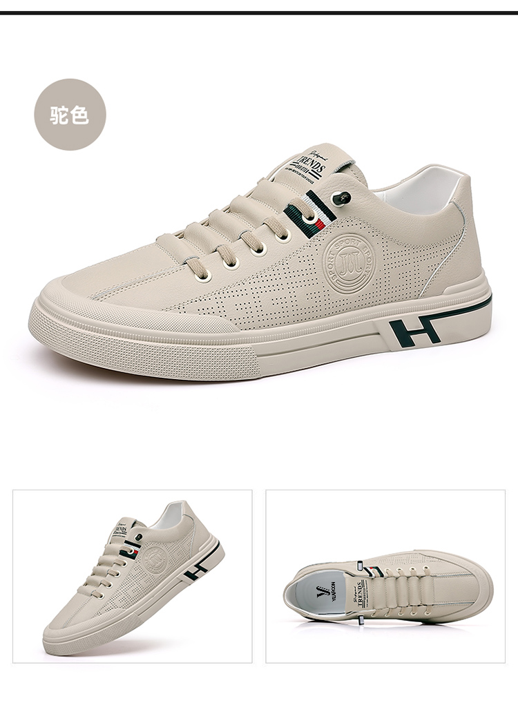 意尓康男鞋2023夏季鏤空男士休閒板鞋真皮軟底透氣內增高小白鞋男