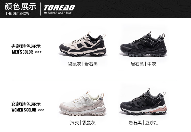 顏色分類 巖石黑/中灰(男) 袋鼠灰/巖石黑(男) 巖石黑/豆沙紅(女) 汽灰/袋鼠灰(女)