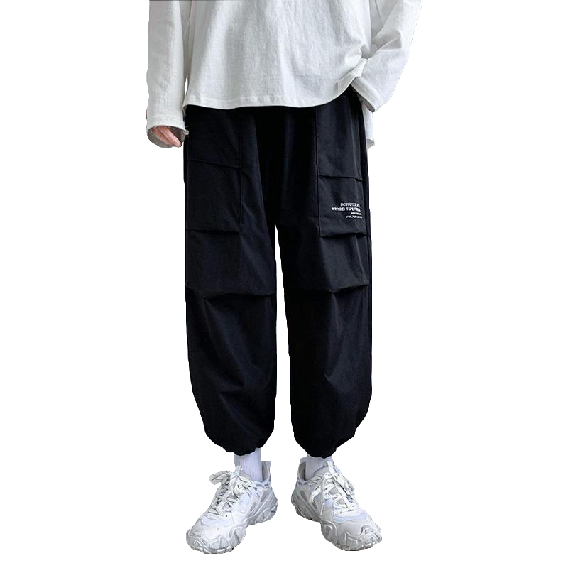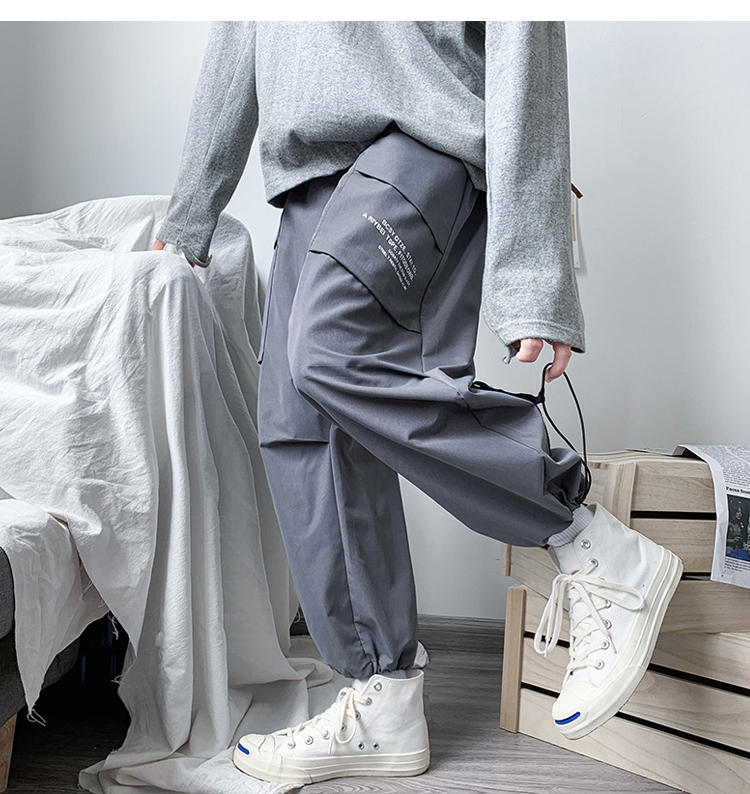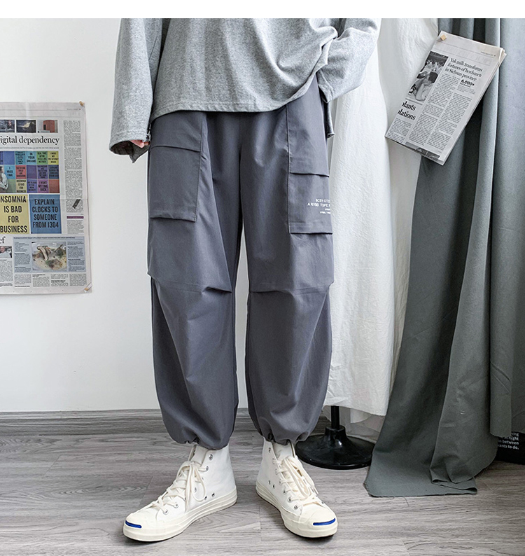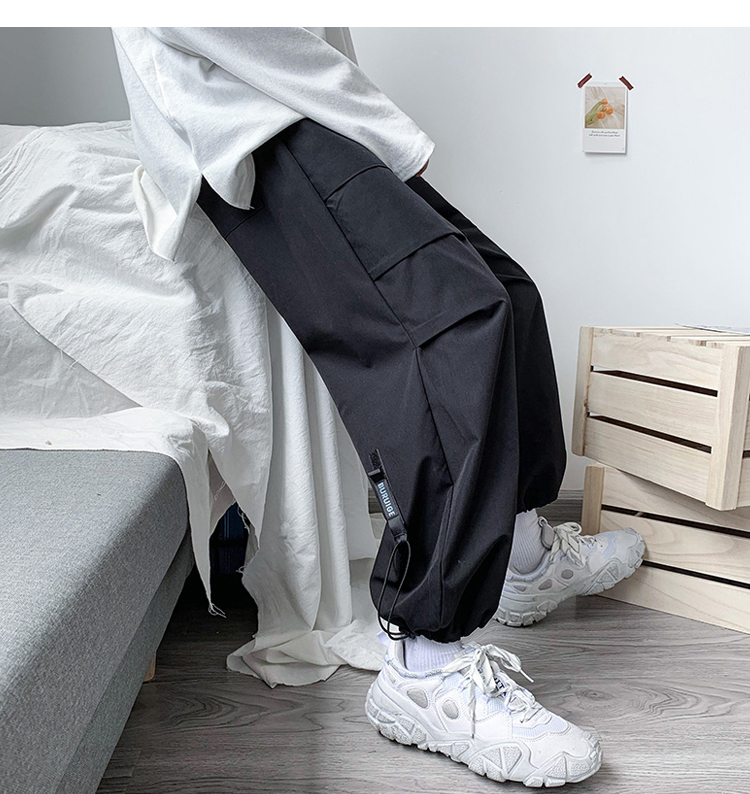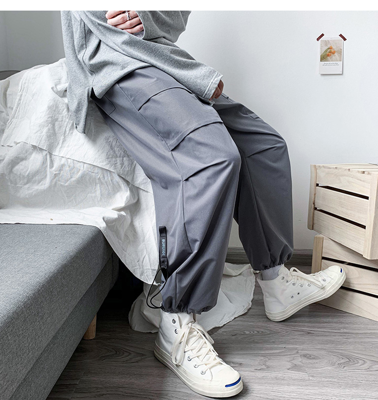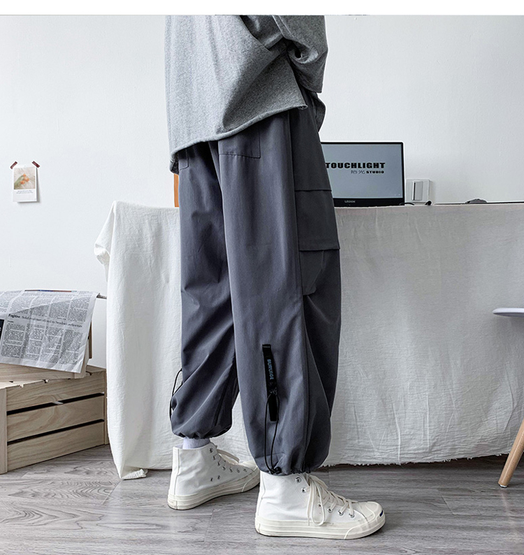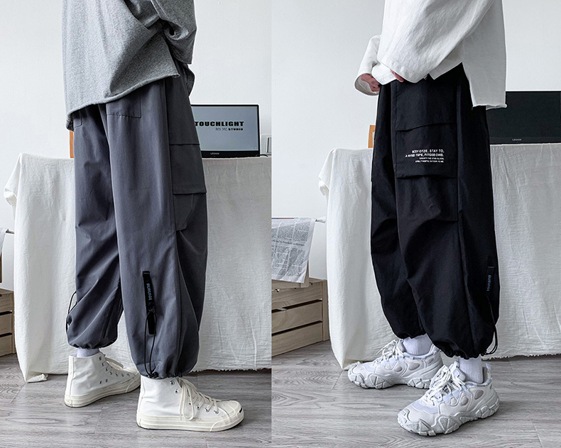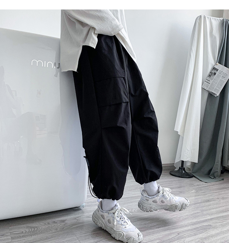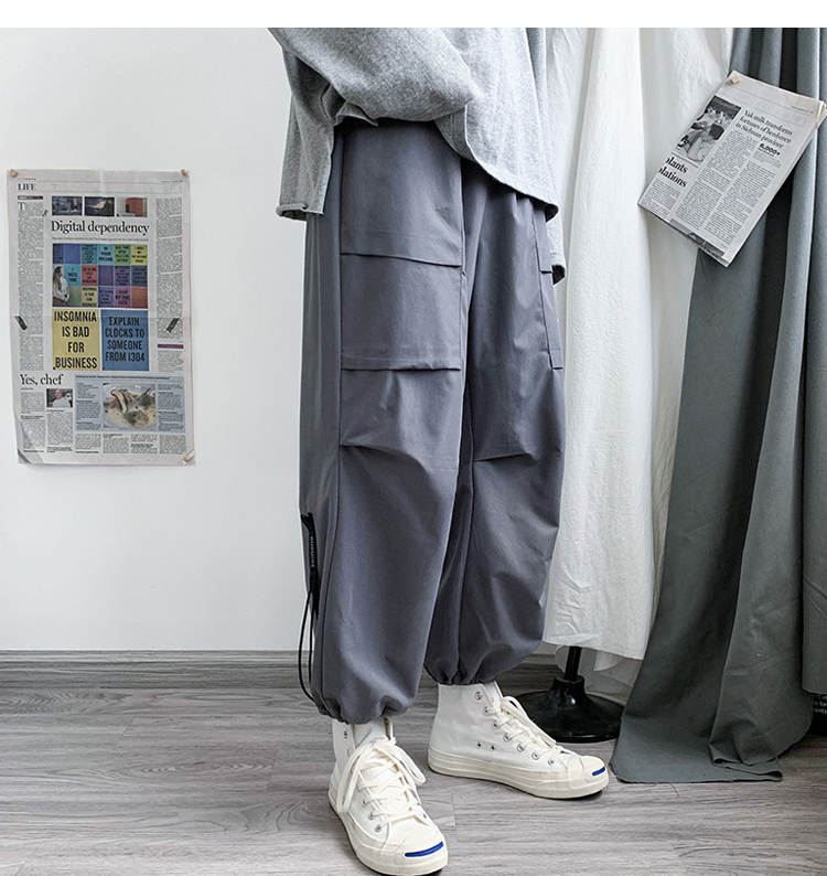 工裝褲男春夏薄款機能束口褲子男美式潮流寬鬆情侶大尺碼闊腿九分褲