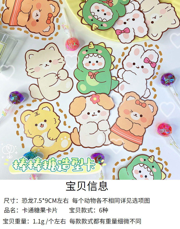颜色 糖果卡片捣蛋小恐龙,糖果卡片贪吃小兔,糖果卡片眨眼小猫,糖果卡片伸手小老虎,糖果卡片害羞小熊,糖果卡片贪吃小狗,以上均仅为卡片无糖果