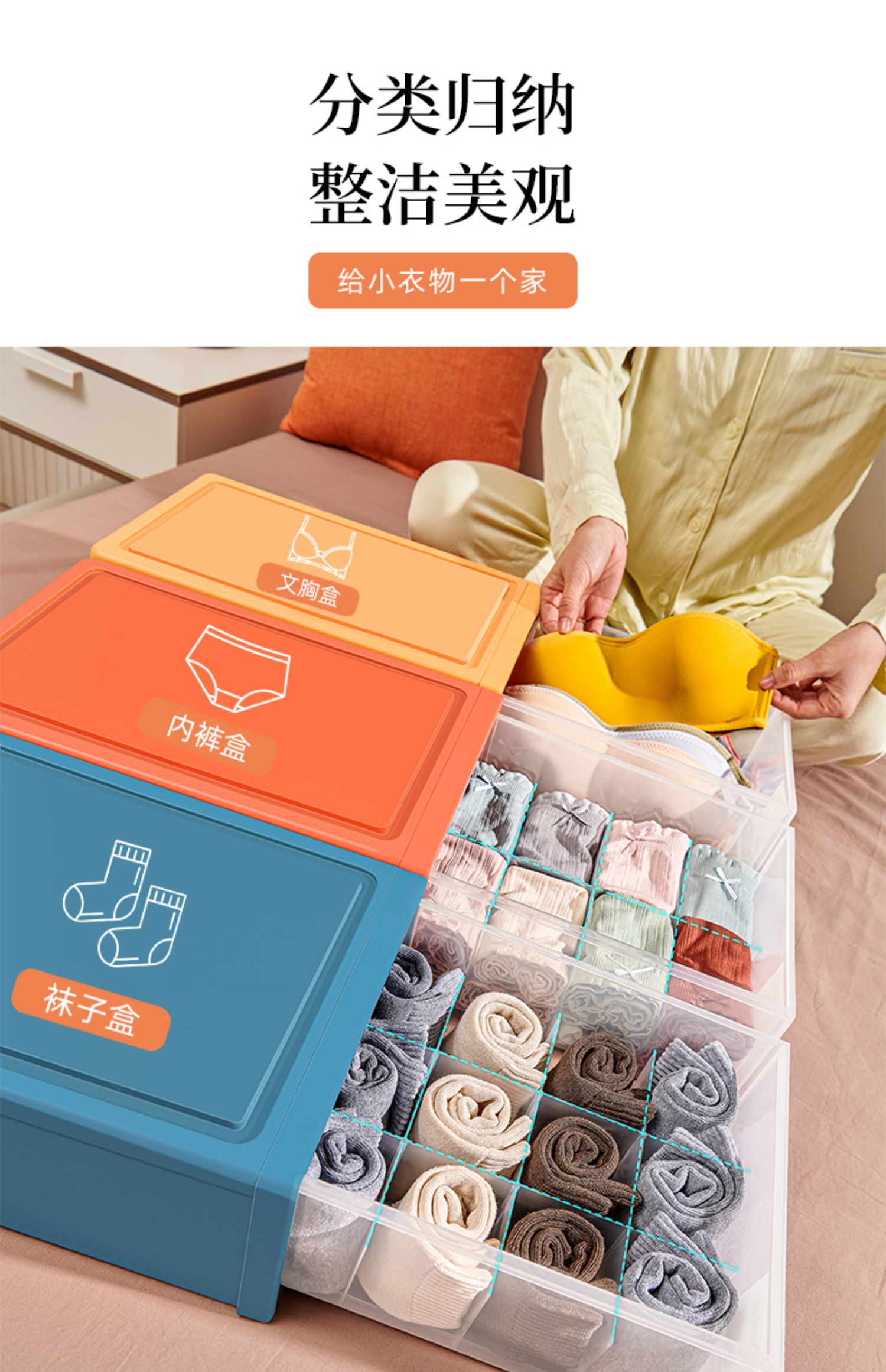 内衣收纳盒抽屉式家用内裤袜子衣物收纳神器衣柜分格三合一整理箱