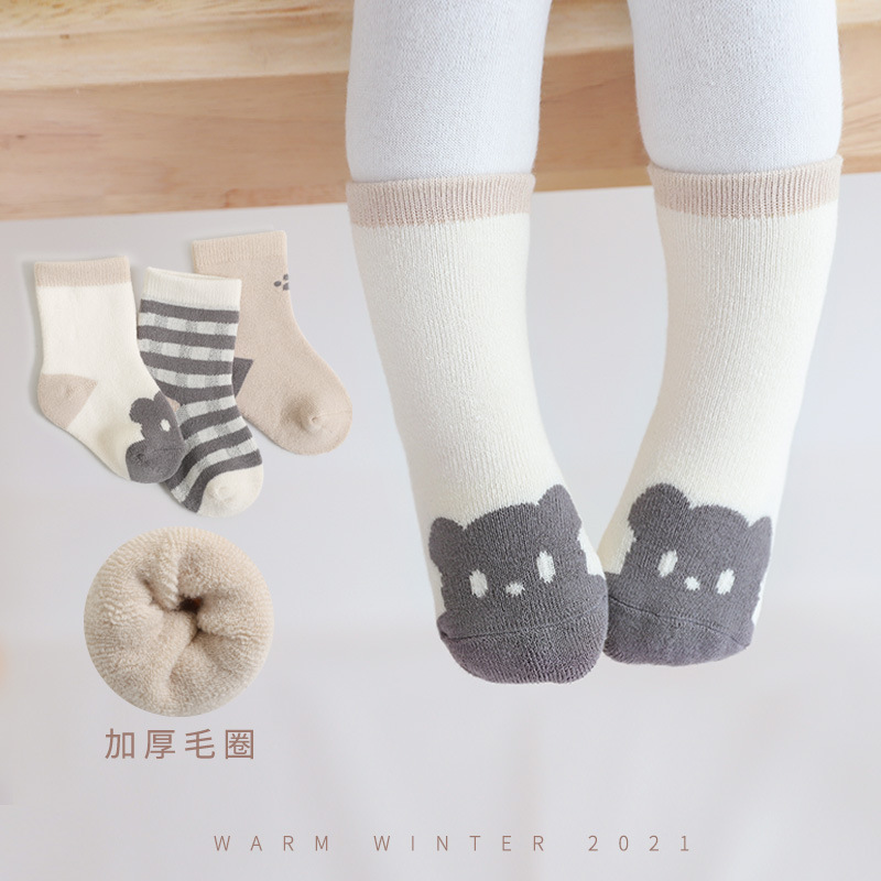 21新款宝宝袜子秋冬季精梳棉加厚保暖新生婴儿袜男女儿童中筒袜子