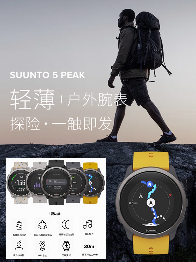 頌拓SUUNTO 5 Peak運動戶外跑步遊泳登山GPS北鬥導航心率專業手錶