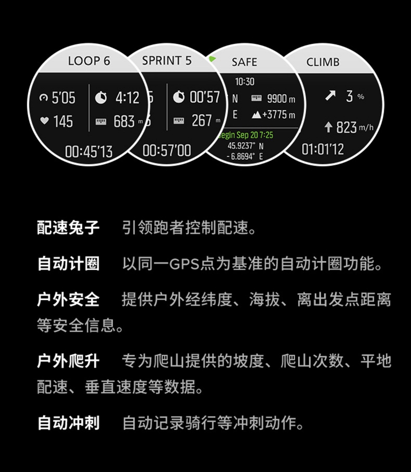 功能 24小時指示,計時碼錶,鬧鈴,日曆,測速,高度測量,GPS導航,夜光,防水,防震,其他/other,計步,智能提醒