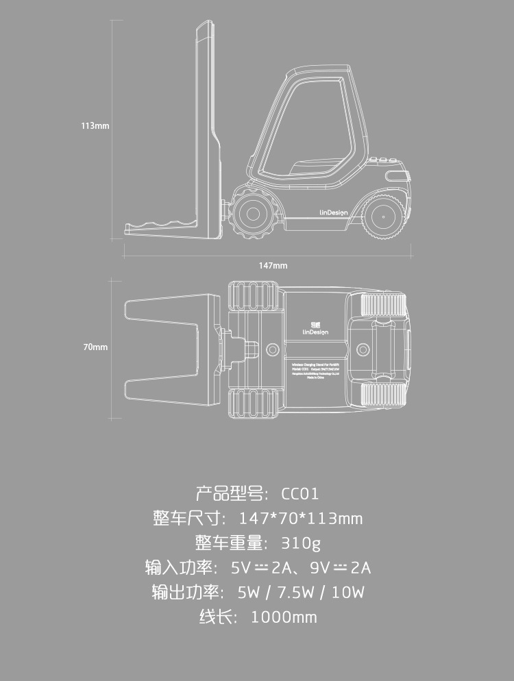 货号 LinDesign翎感/小叉车手机无线充支架/CC01