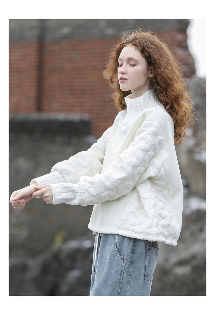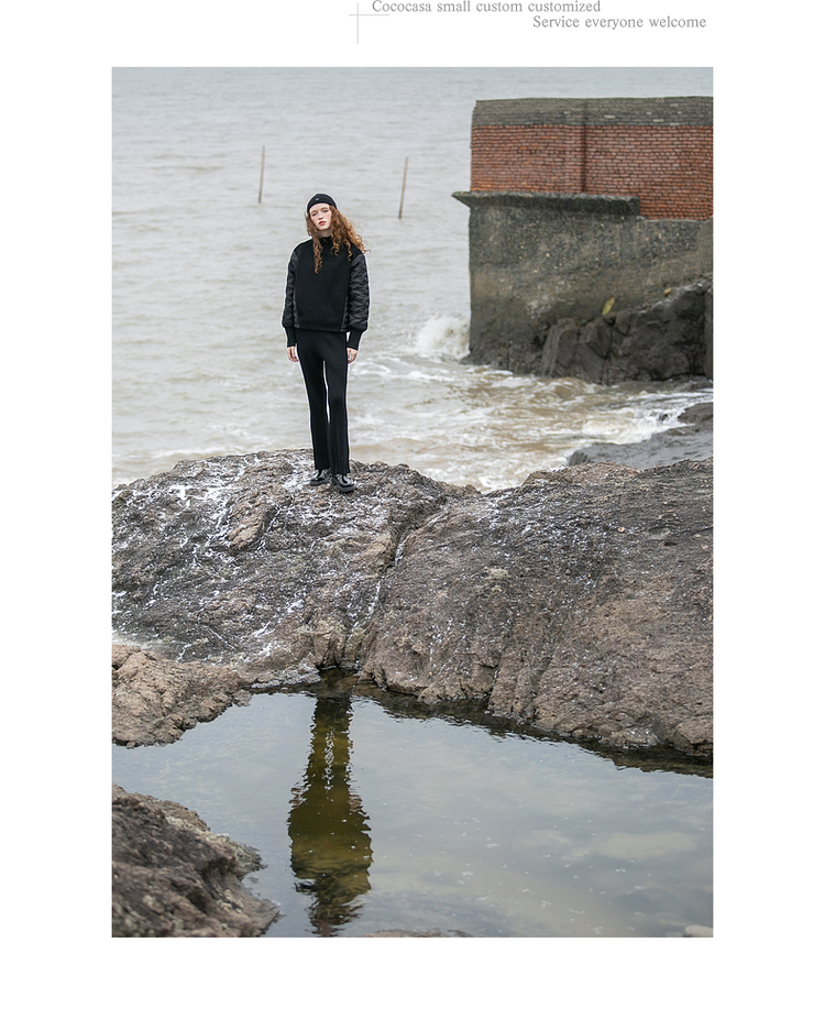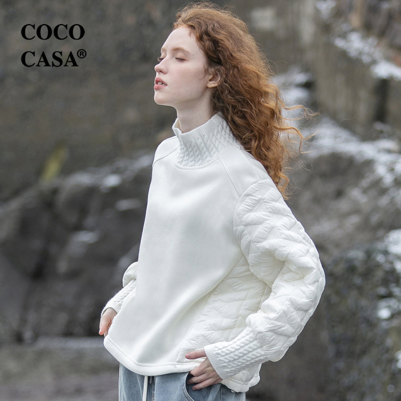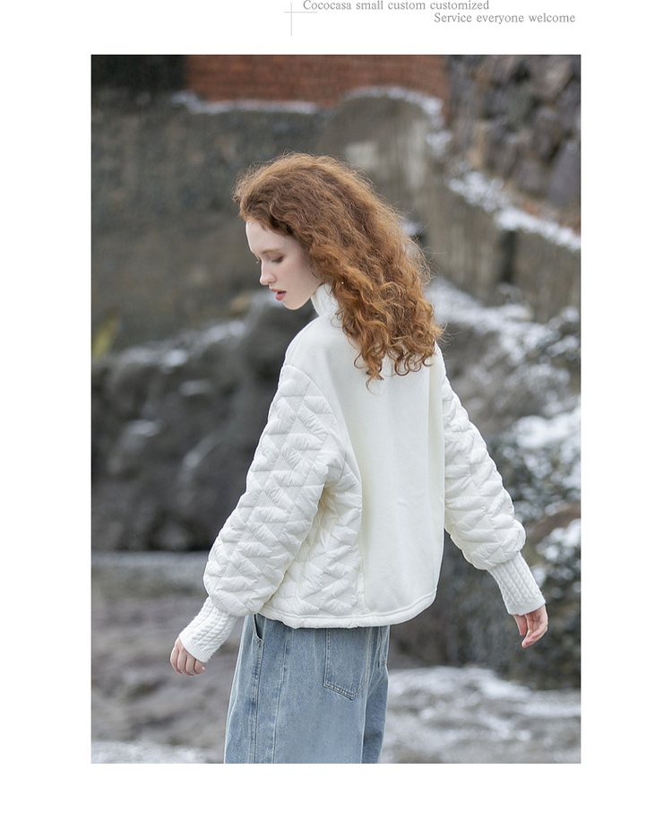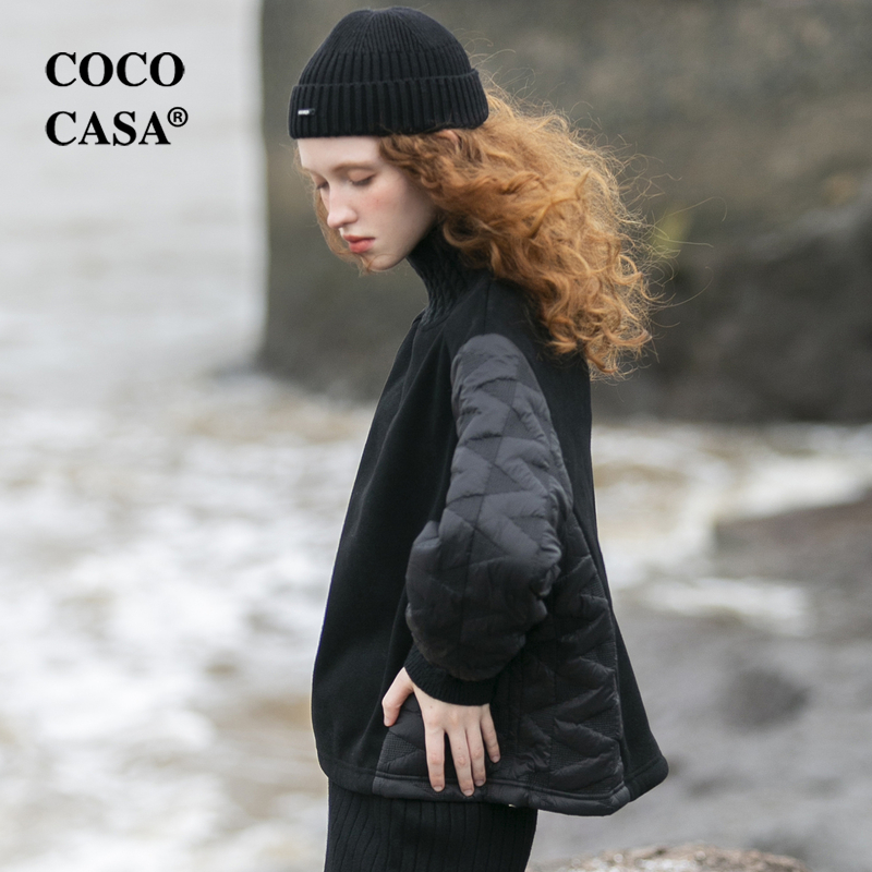 cococasa原創設計歐貨衛衣女短款2023秋冬新款廓形黑白色夾棉上衣