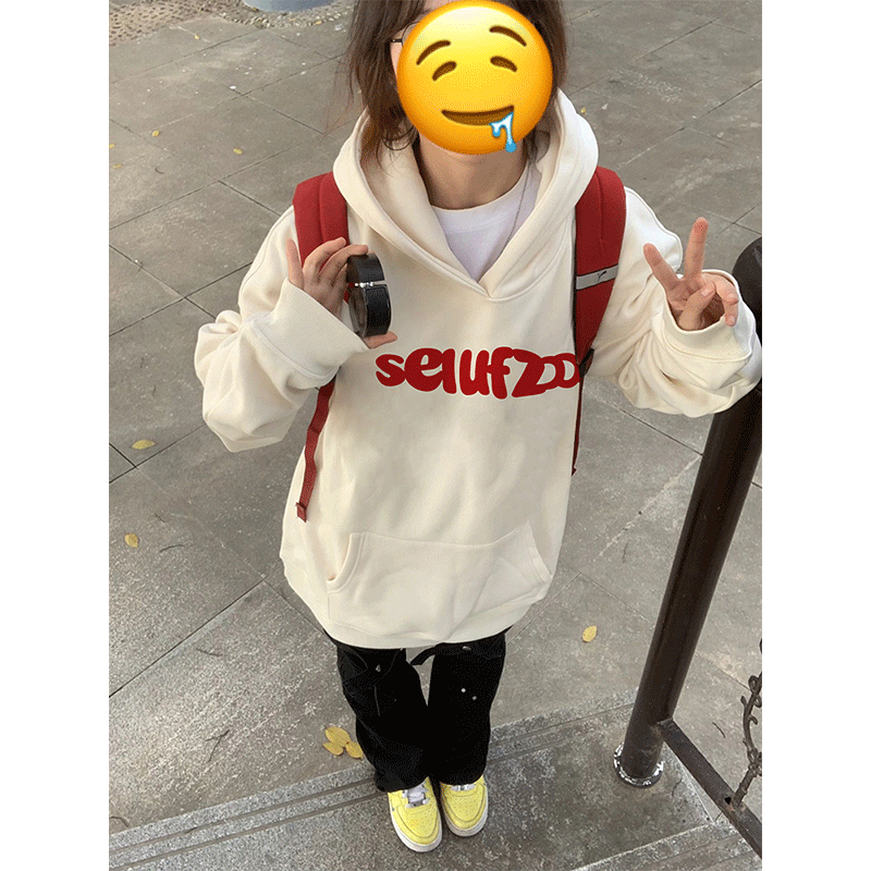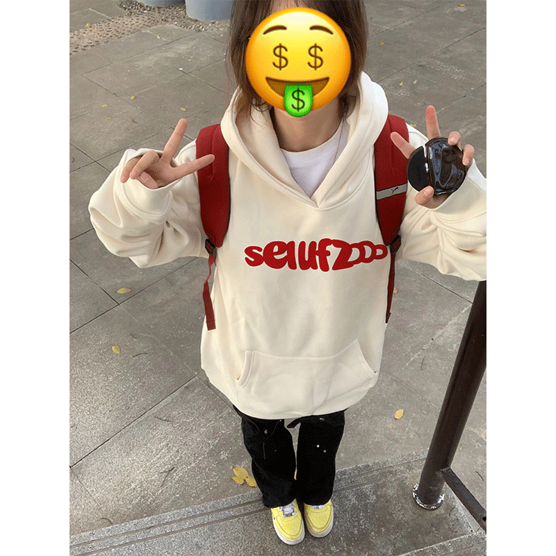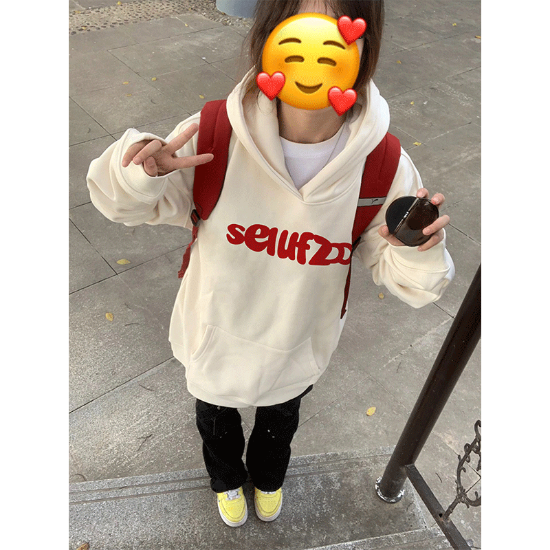 美式復古寬鬆重磅連帽運動衫女秋冬季2023爆款韓系風格加絨加厚上衣