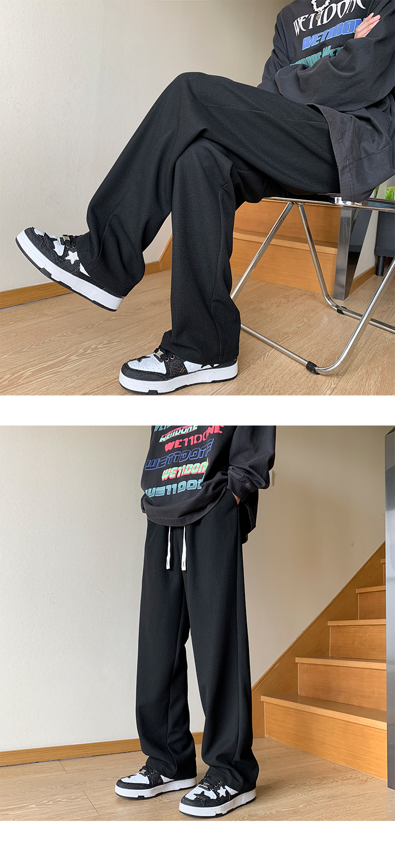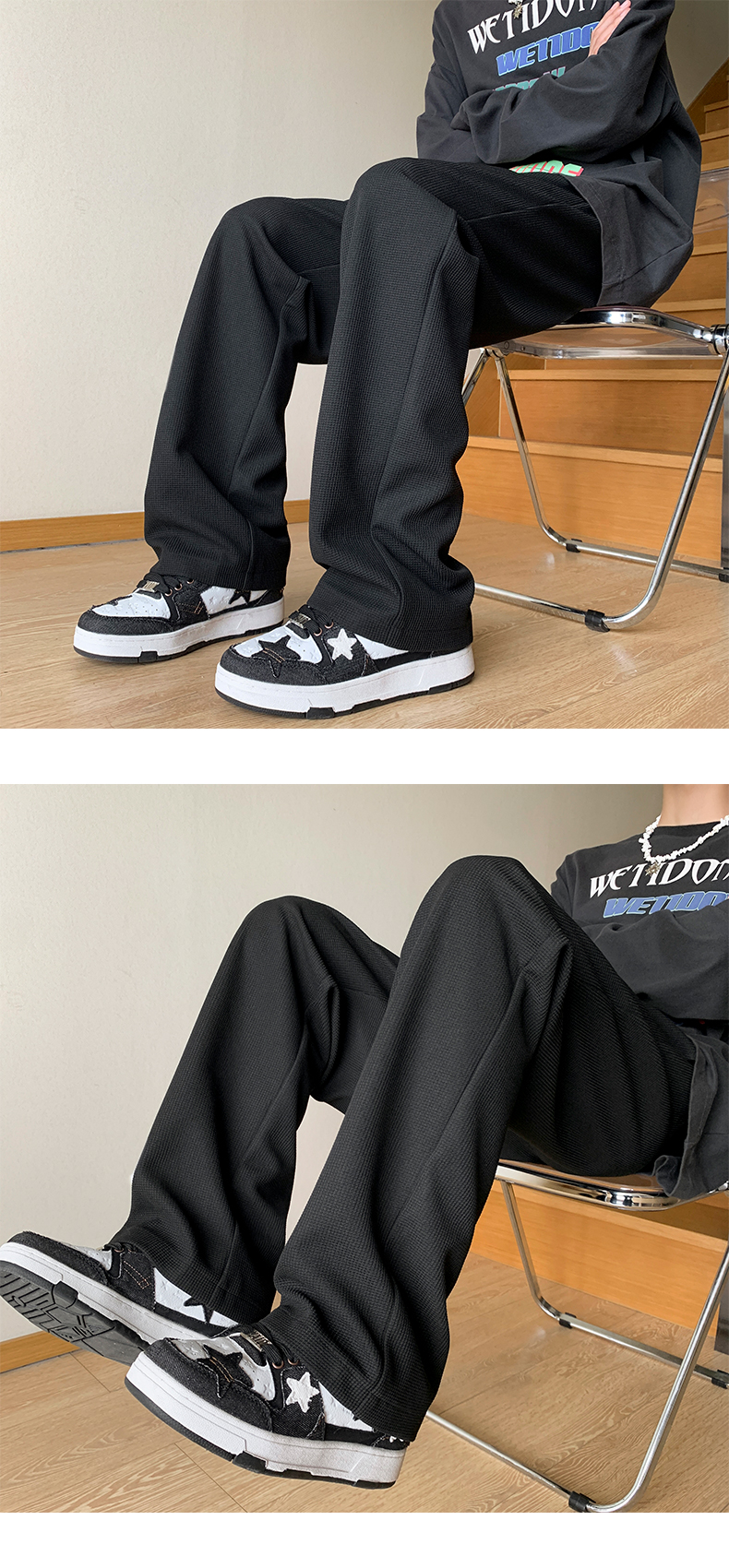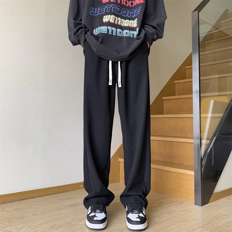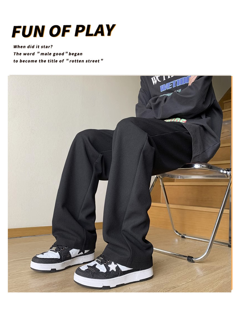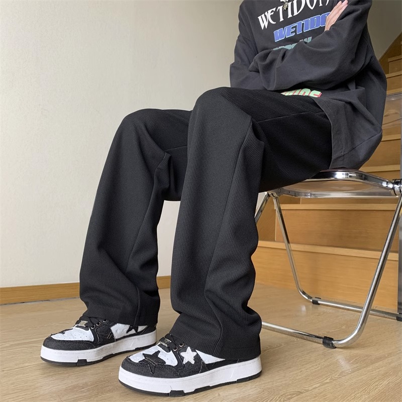 華夫格褲子男秋季垂感高級感穿搭直筒褲潮流潮牌痞帥大學生休閒褲