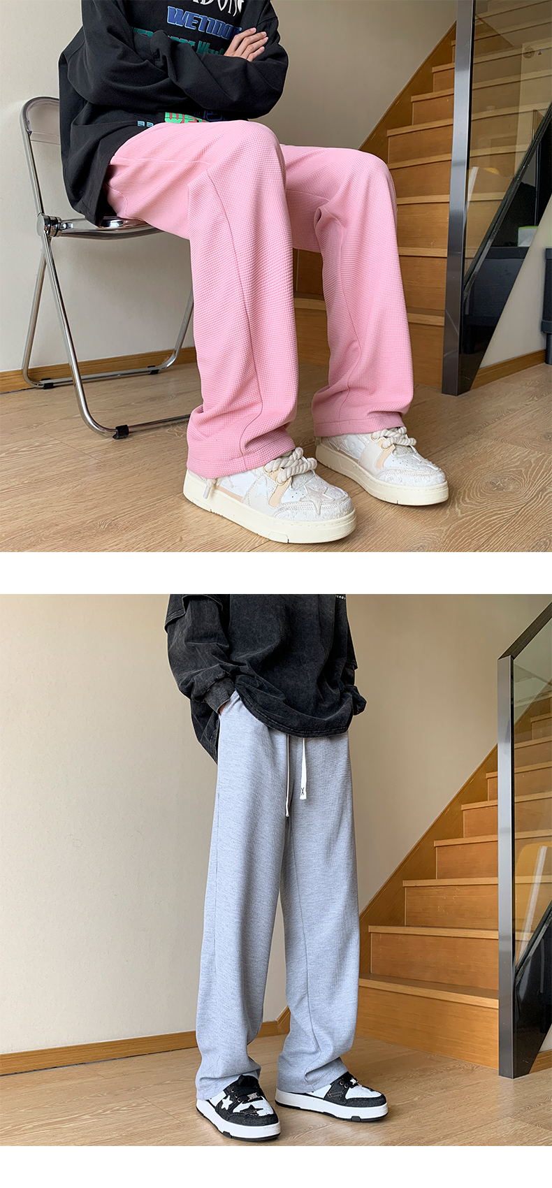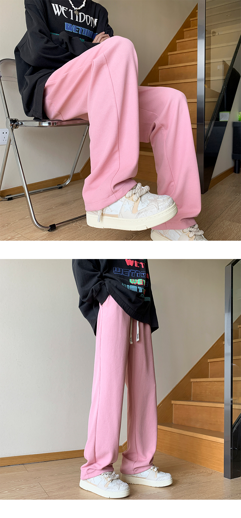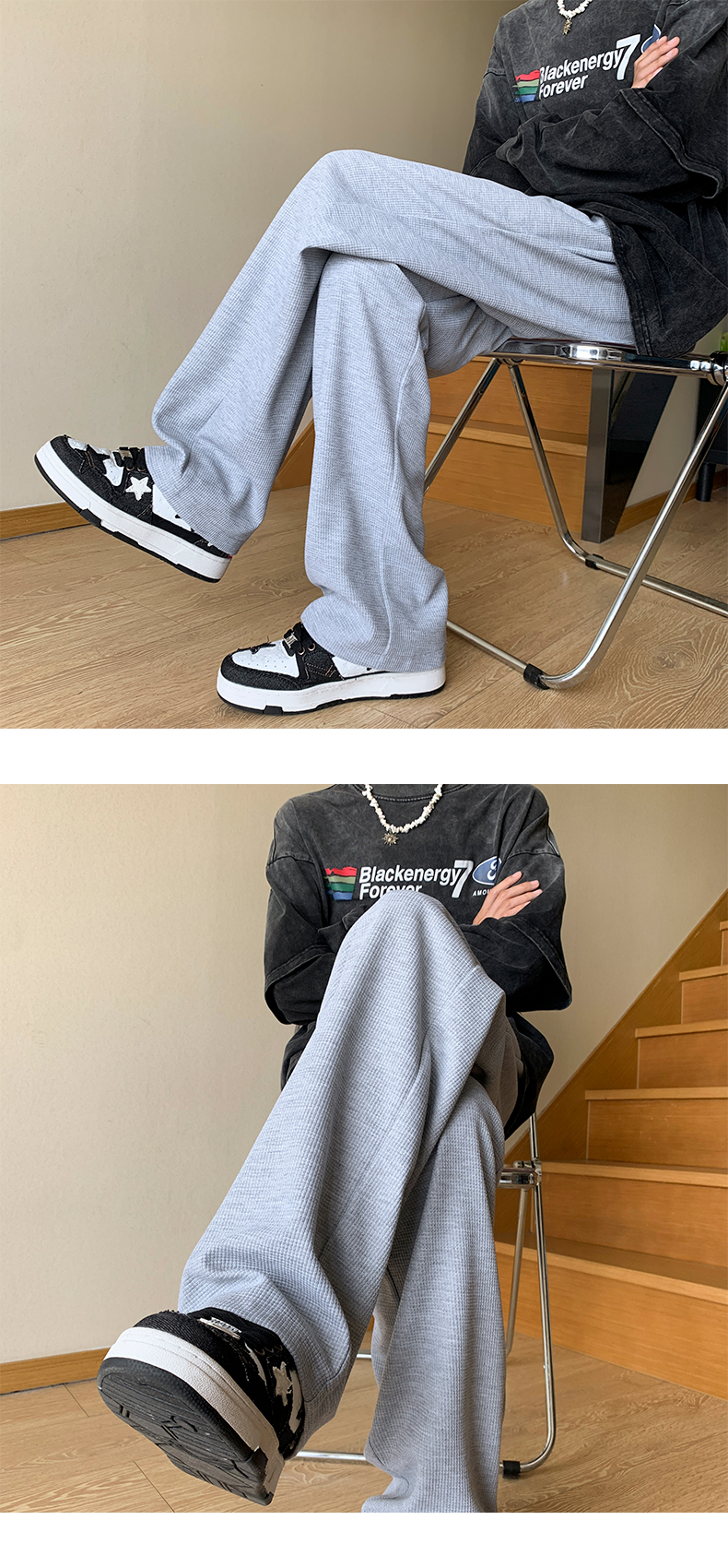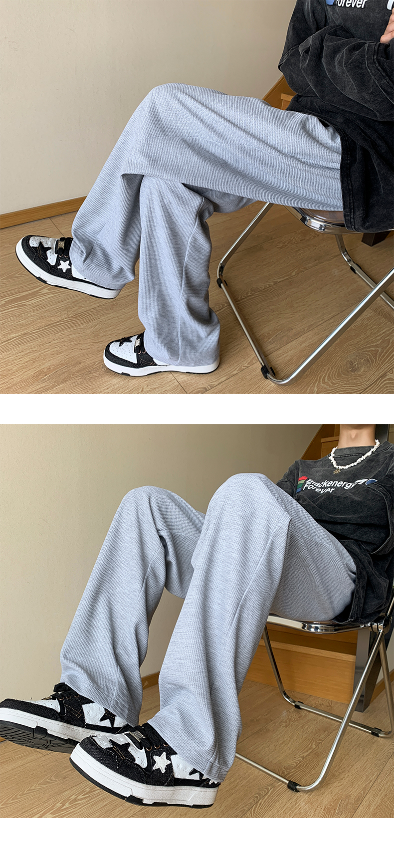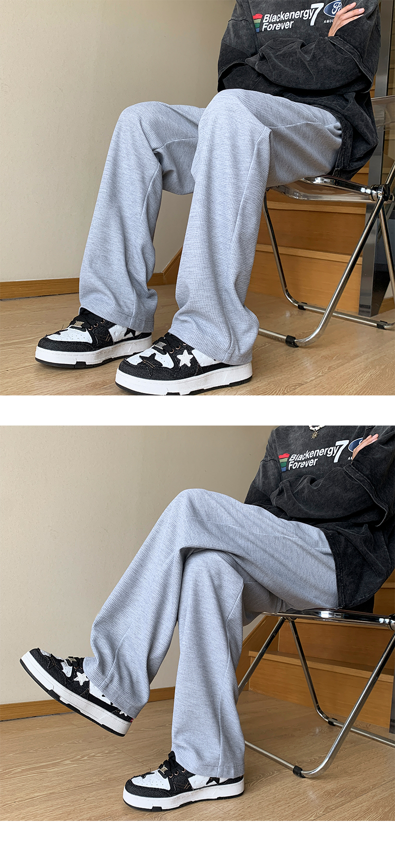 華夫格褲子男秋季垂感高級感穿搭直筒褲潮流潮牌痞帥大學生休閒褲