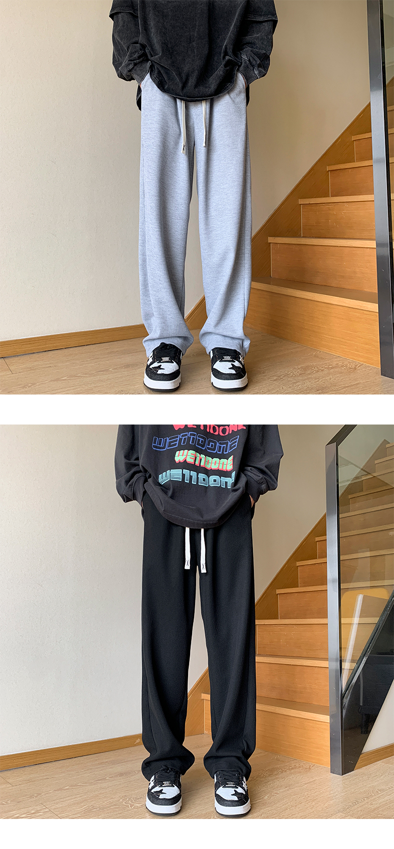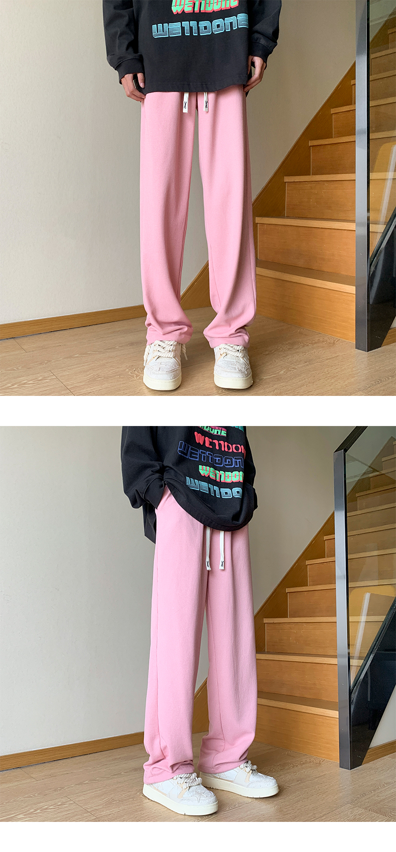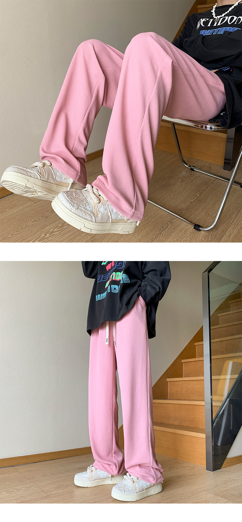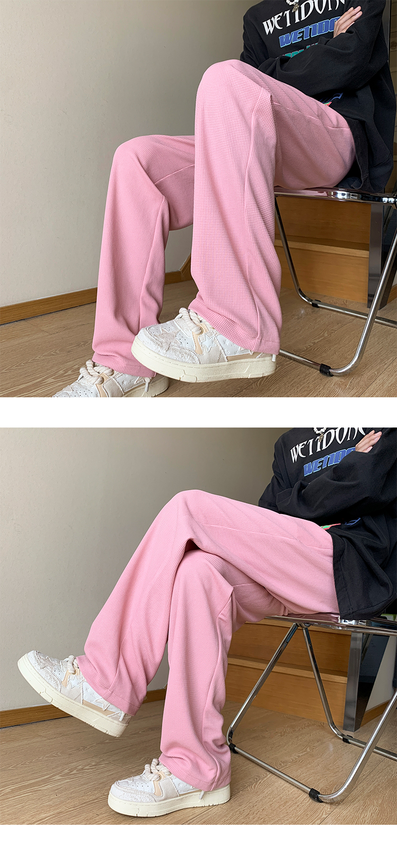 華夫格褲子男秋季垂感高級感穿搭直筒褲潮流潮牌痞帥大學生休閒褲