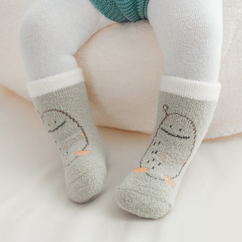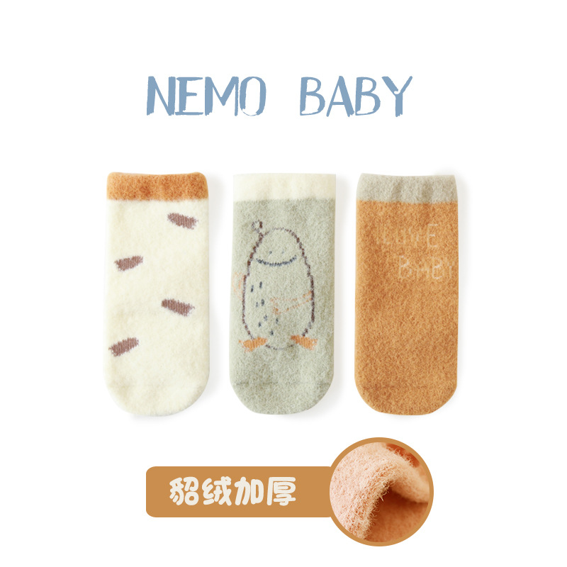 20年宝宝袜子新款秋冬季加厚仿貂绒新生婴儿袜保暖卡通中筒儿童袜