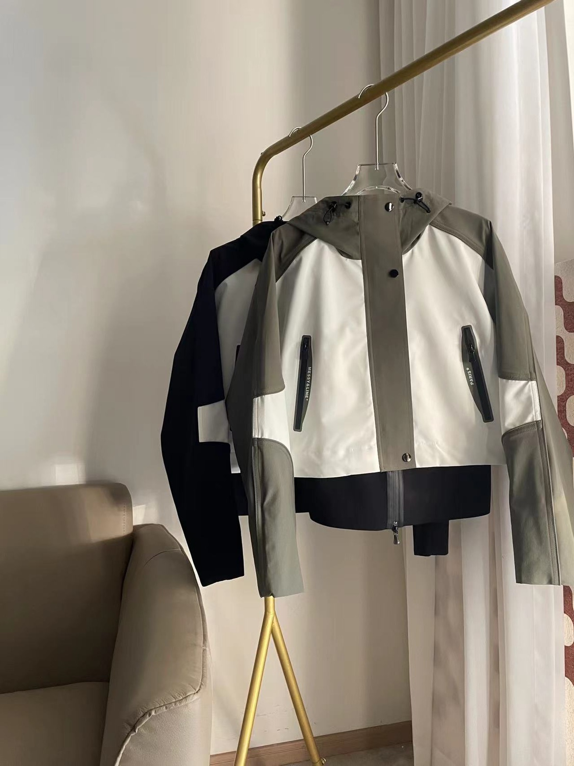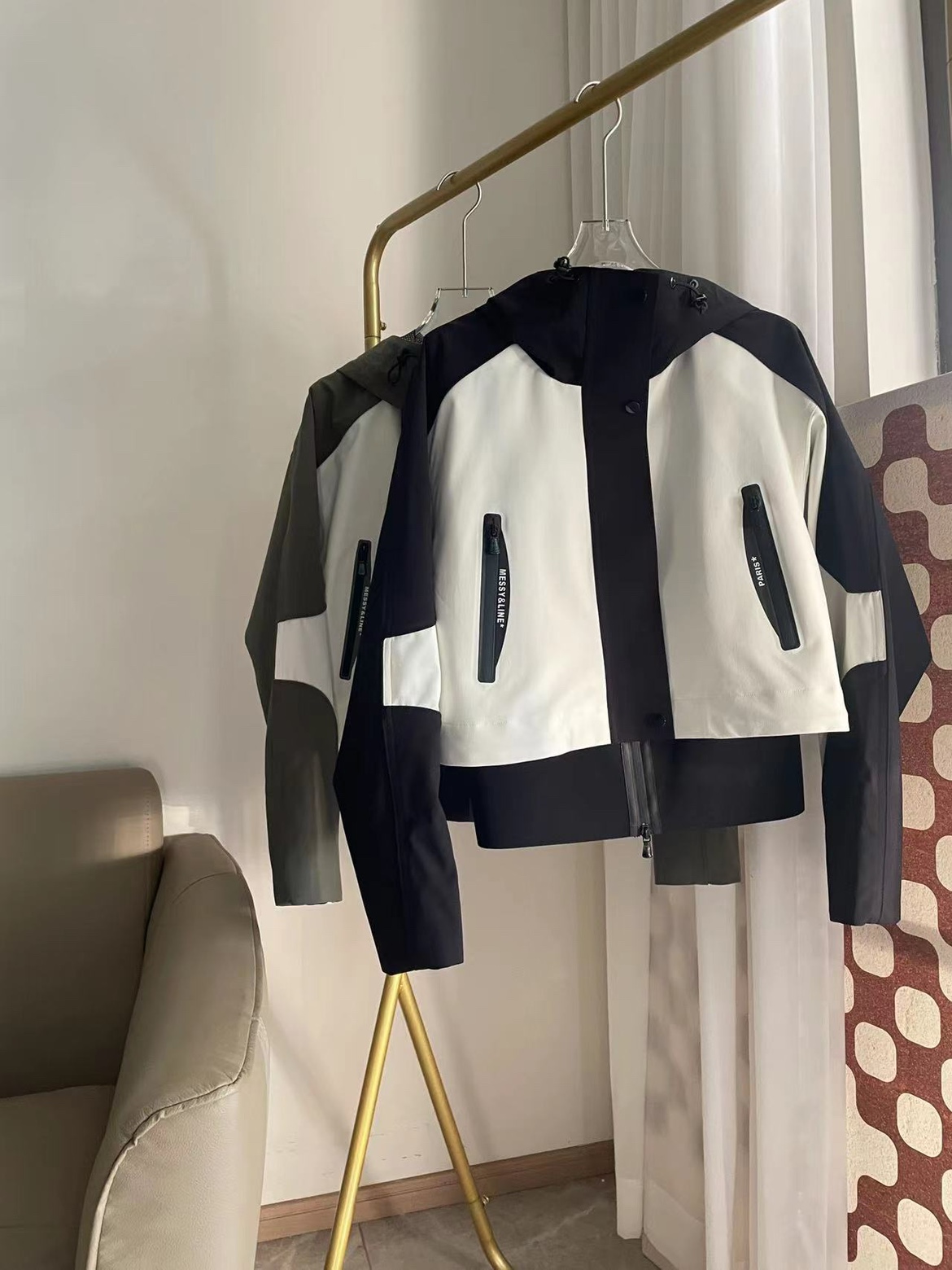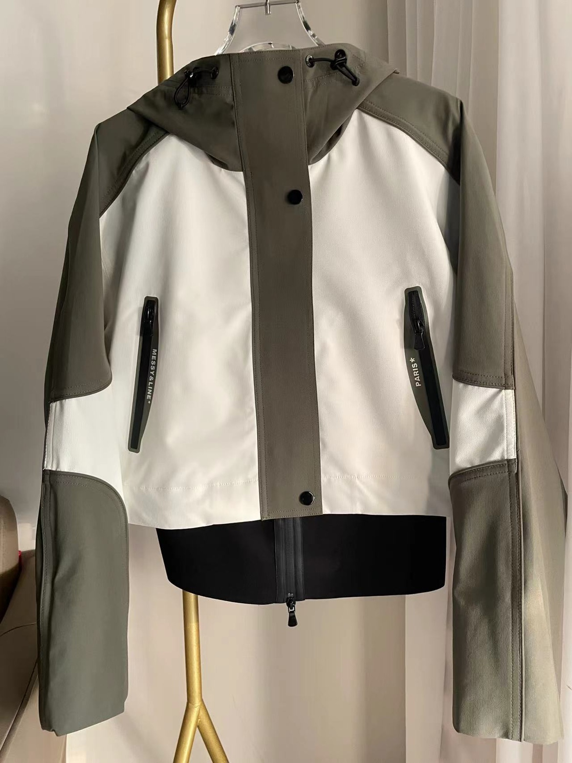 2023新款拼色連帽短版風衣假兩件寬鬆夾克外套衝鋒衣小個子