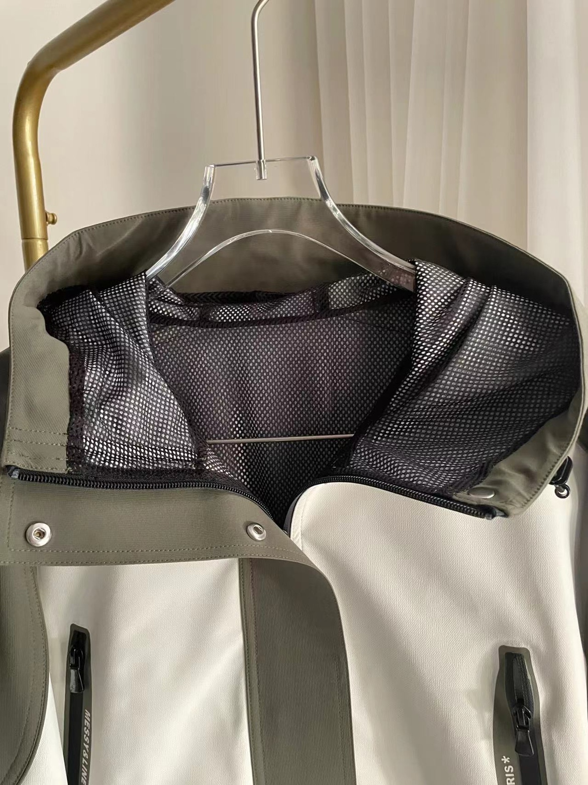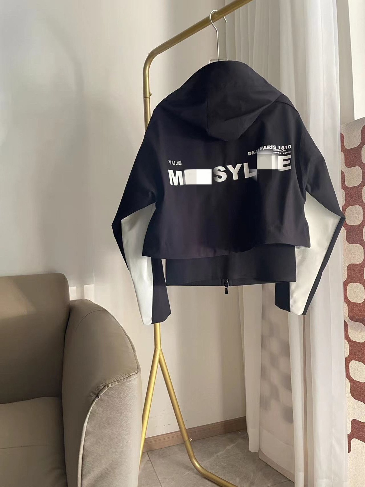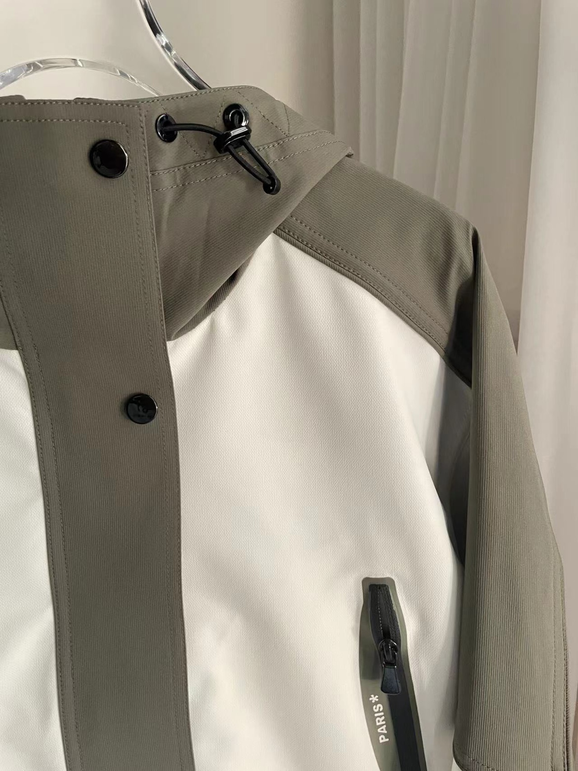 2023新款拼色連帽短版風衣假兩件寬鬆夾克外套衝鋒衣小個子