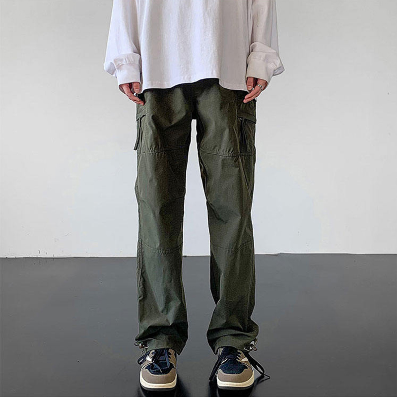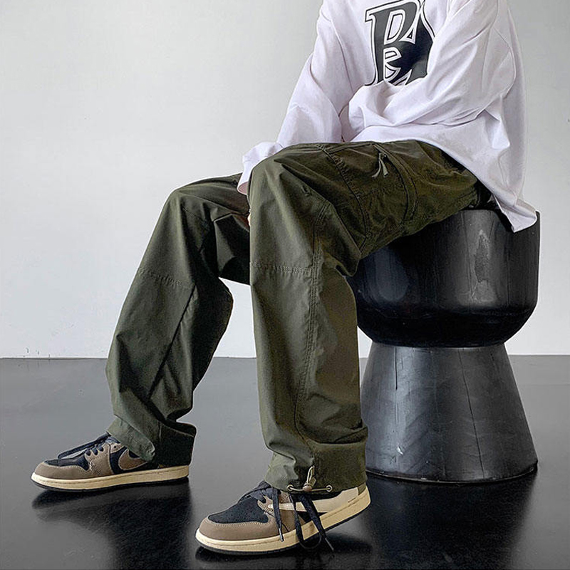 美式復古機能暴雨級防水衝鋒褲男夏季軍綠色高級感工裝褲直筒褲子