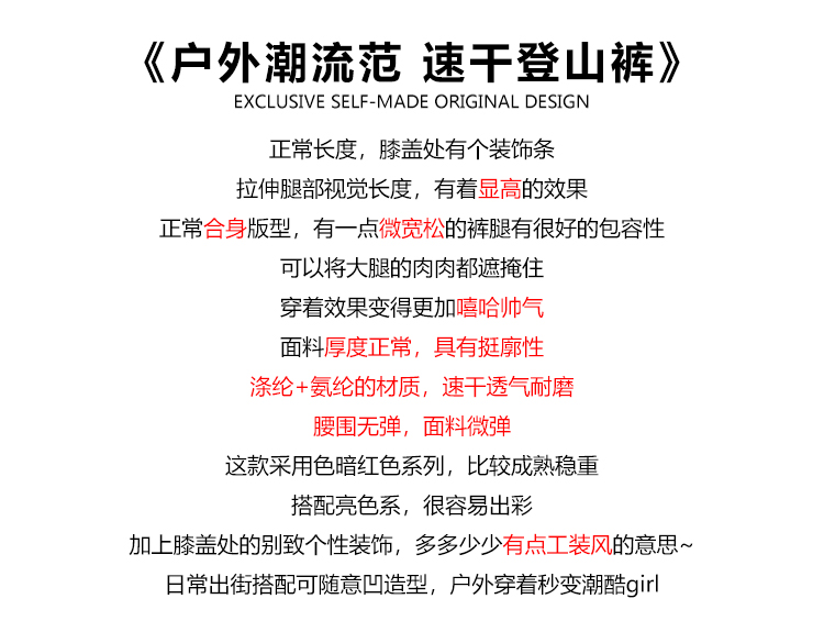 北京森林戶外2023春秋原創休閒旅行透氣快乾潮牌速乾登山褲女式
