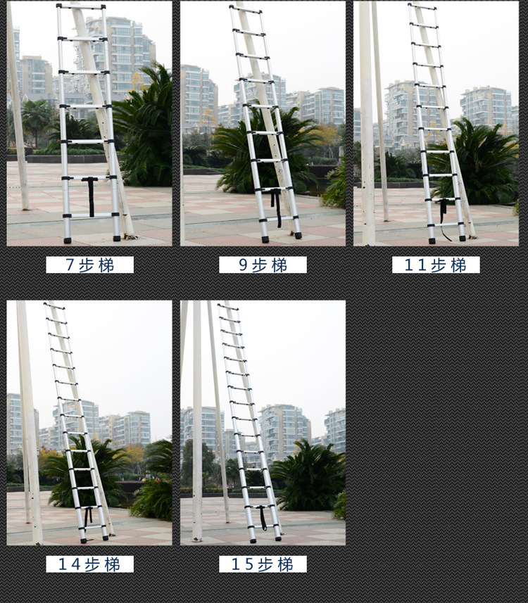 踏板数 单面直梯2米,单面直梯2.6米,单面直梯2.9米,单面直梯3.2米,单面直梯3.8米,单面直梯4.1米,单面直梯4.4米,单面直梯4.8米,单面直梯5.2米,双面人字梯1.4+1.4米,双面人字梯2.0+2.0米,双面人字梯2.6+2.6米,双面人字梯3.2+3.2米,双面人字梯3.8+3.8米,两用1.6+1.6变3.2米,两用1.9+1.9变3.8米,两用2.8+2.8变5.6米,两用2.2+2.2变4.4米,两用2.5+2.5变5米,两用3.2+3.2变6.4米,单面直梯1.4米