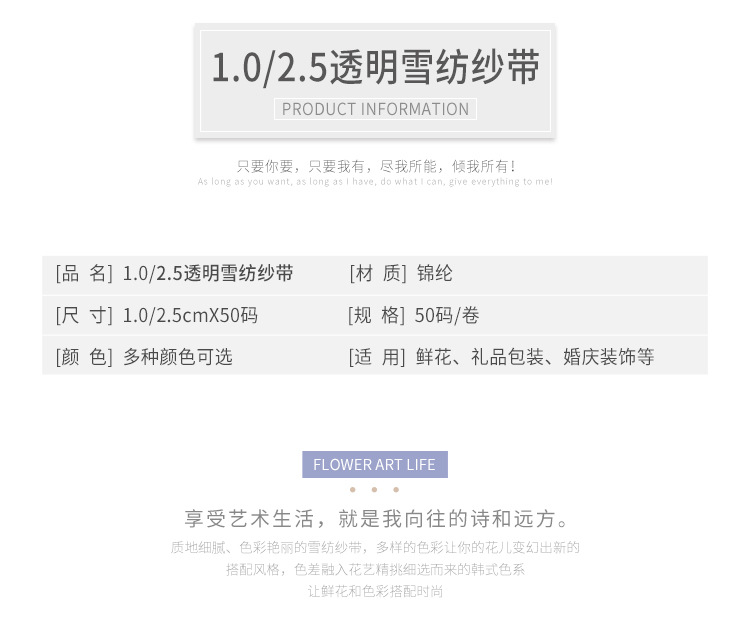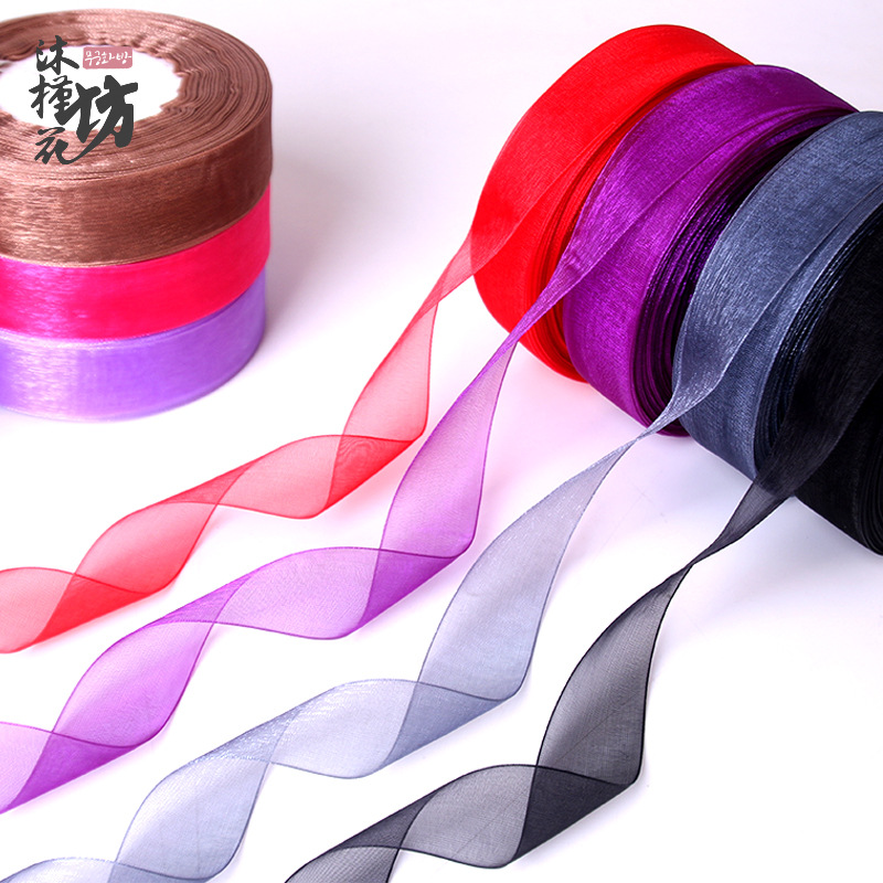 2.5透明雪纺纱带发饰蝴蝶结织带花束礼品包装韩式彩带手工diy材料
