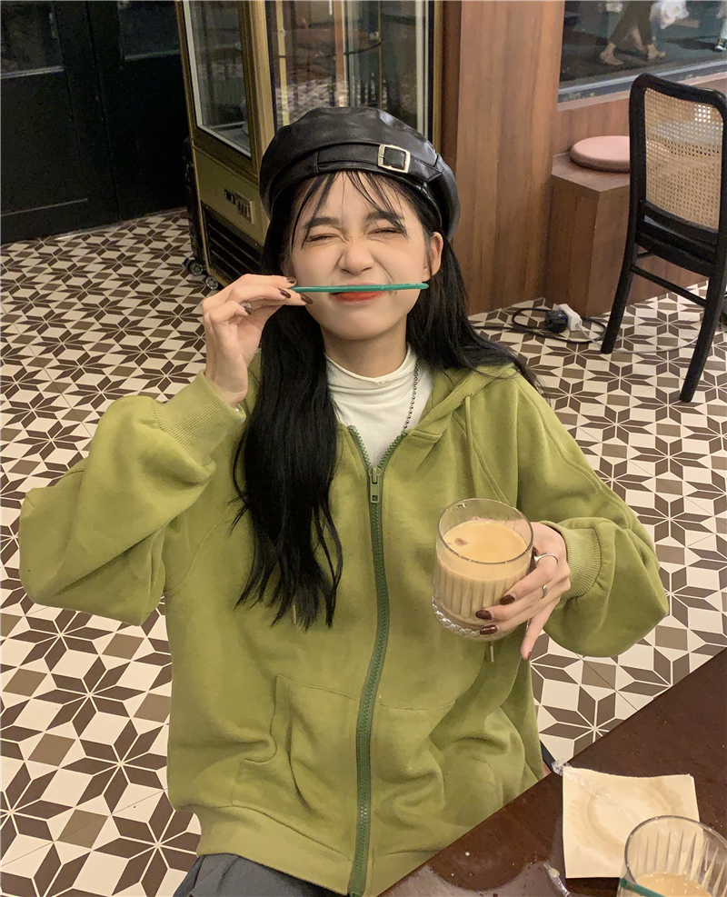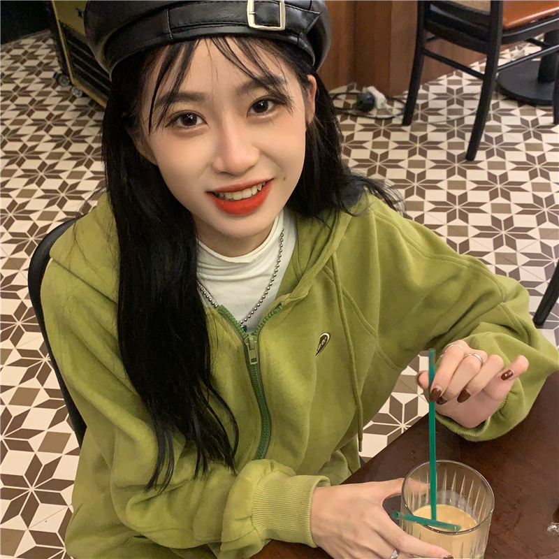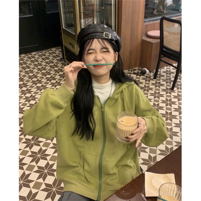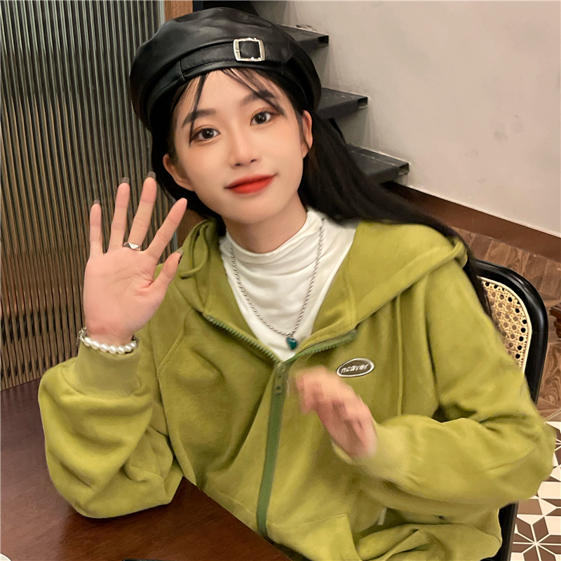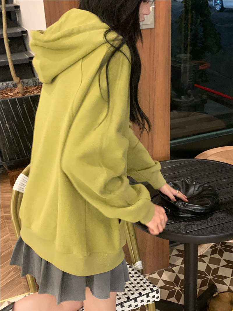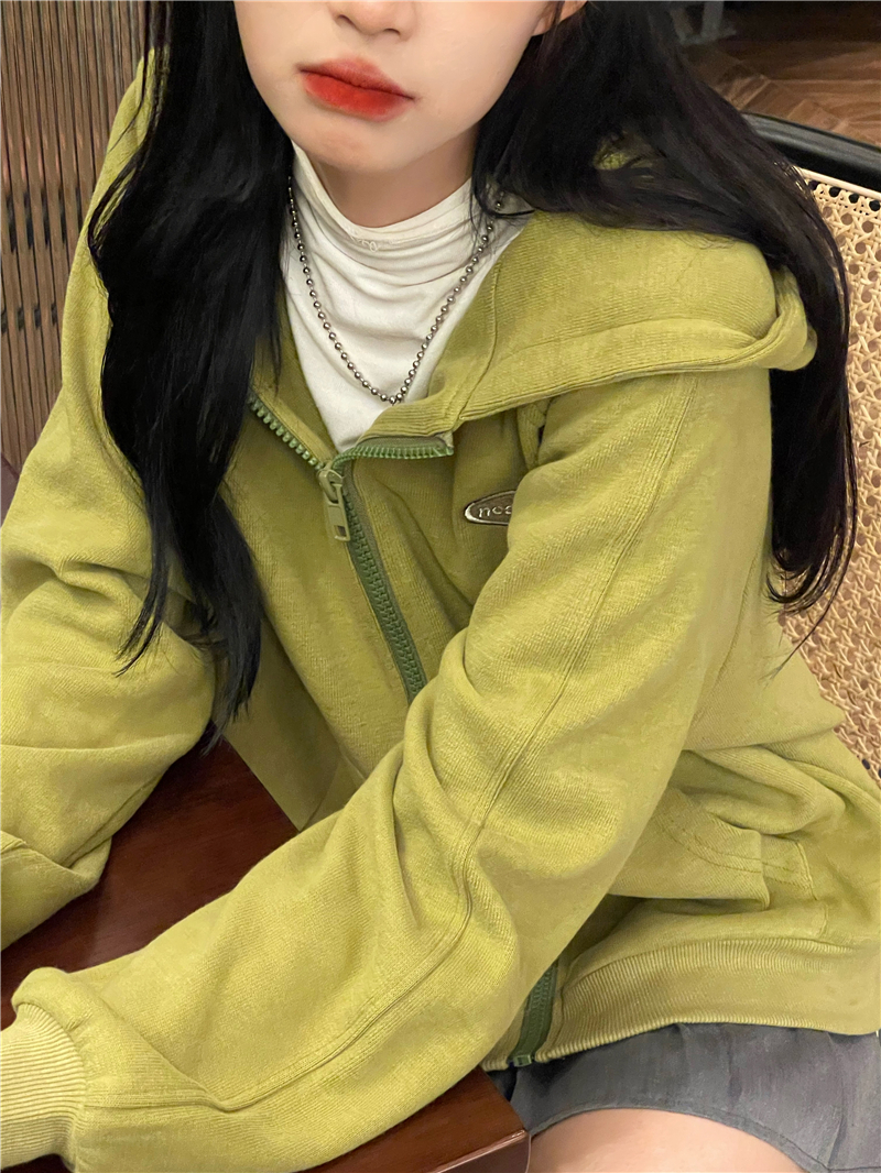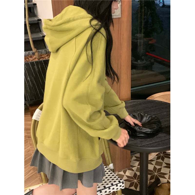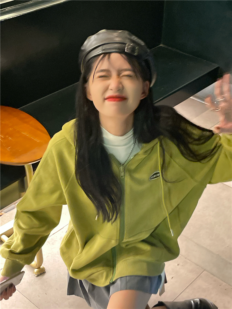 芥末綠衛衣女春秋2023年新款韓版連帽寬鬆長袖上衣開衫外套ins潮