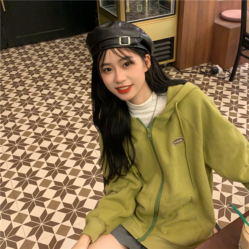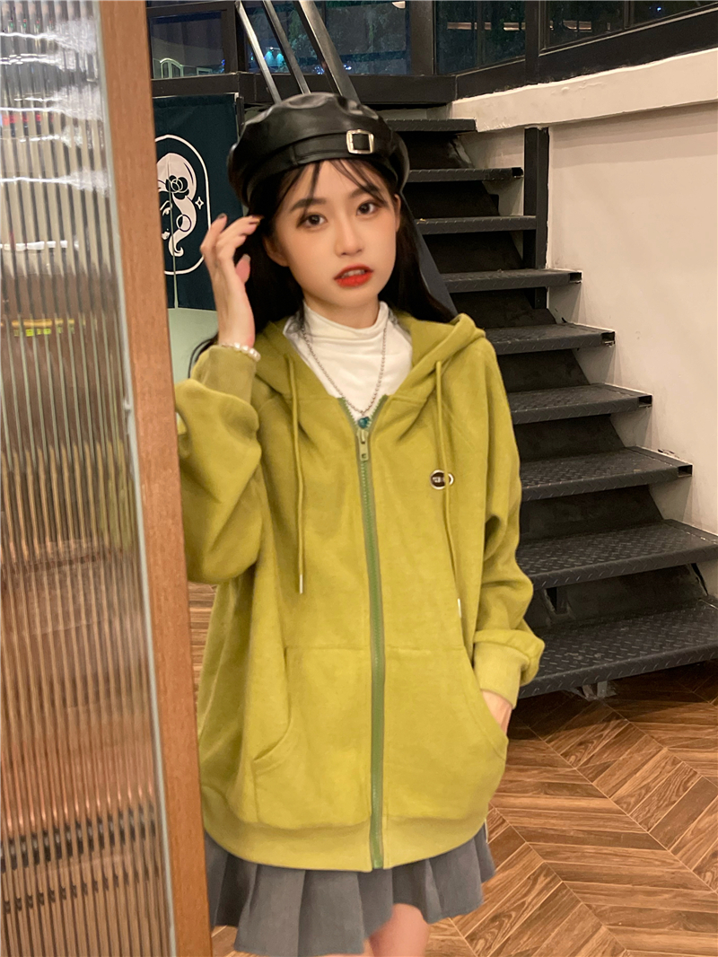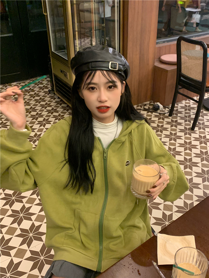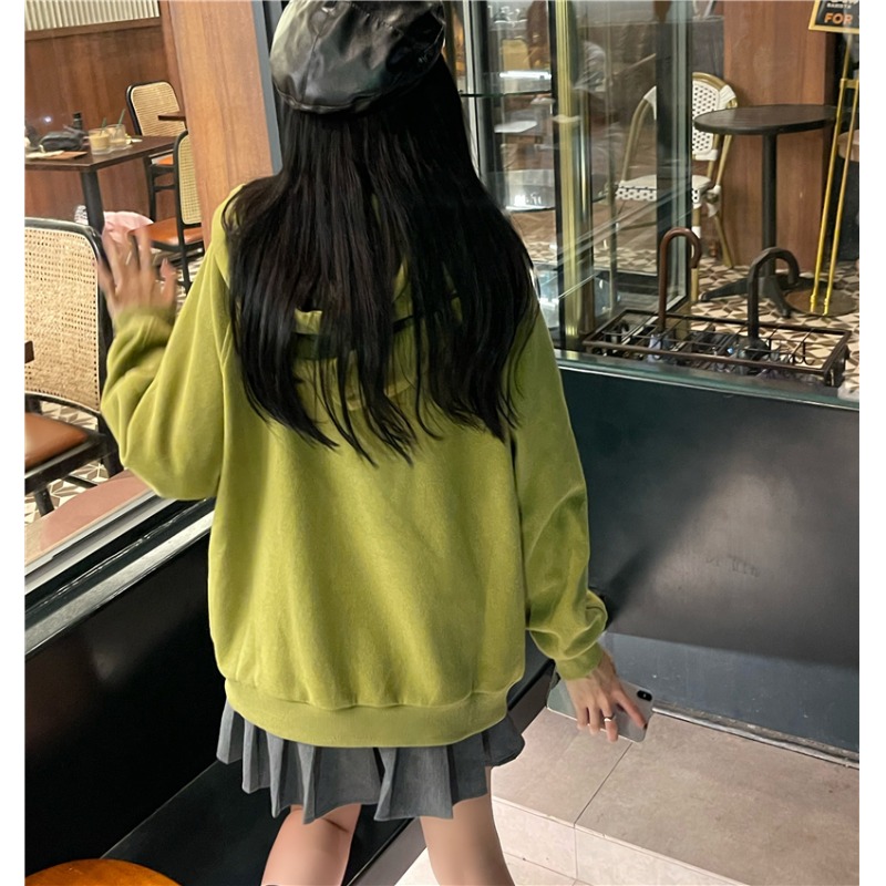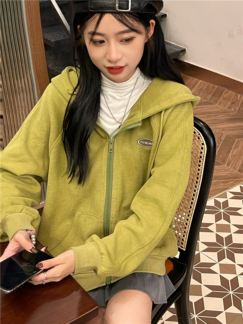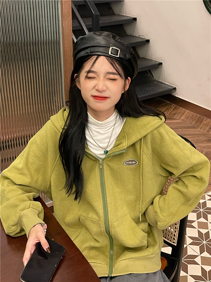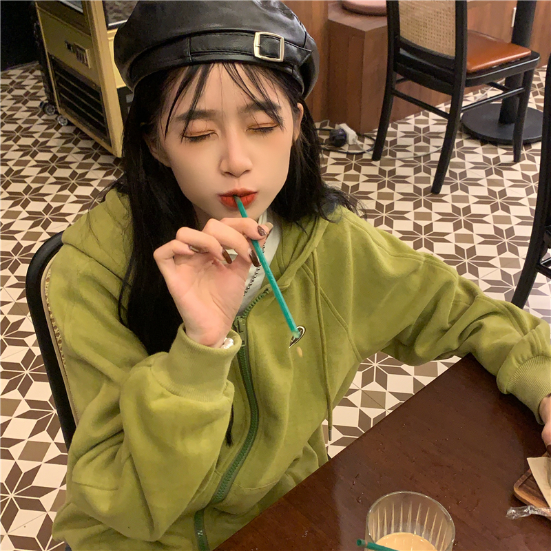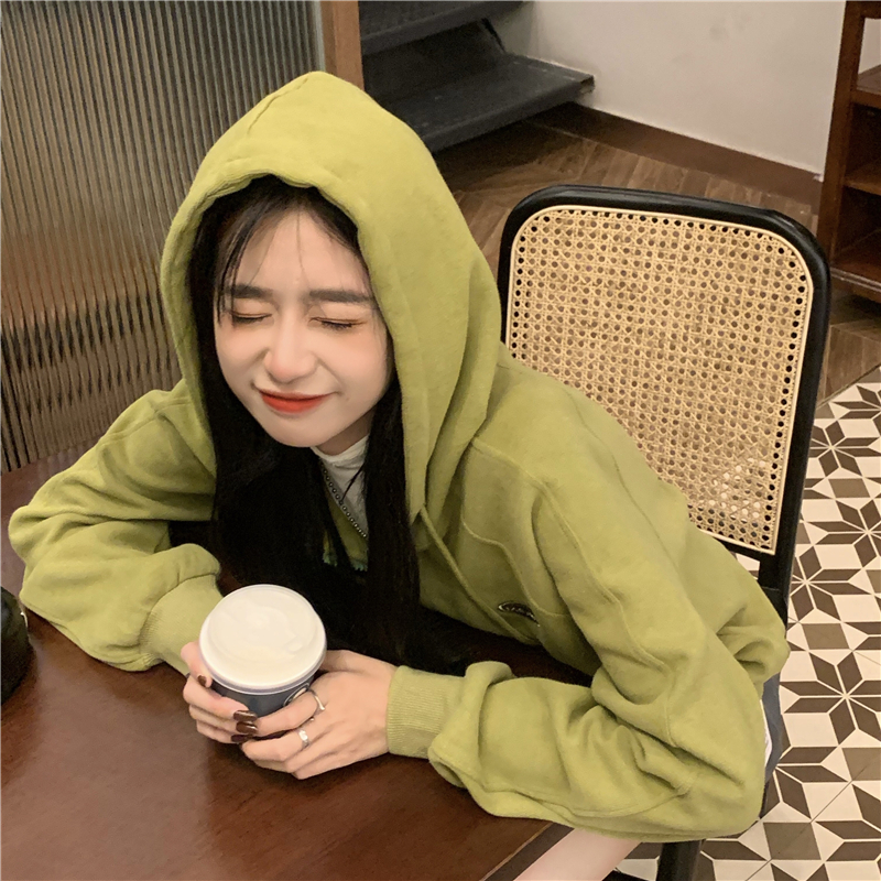 芥末綠衛衣女春秋2023年新款韓版連帽寬鬆長袖上衣開衫外套ins潮