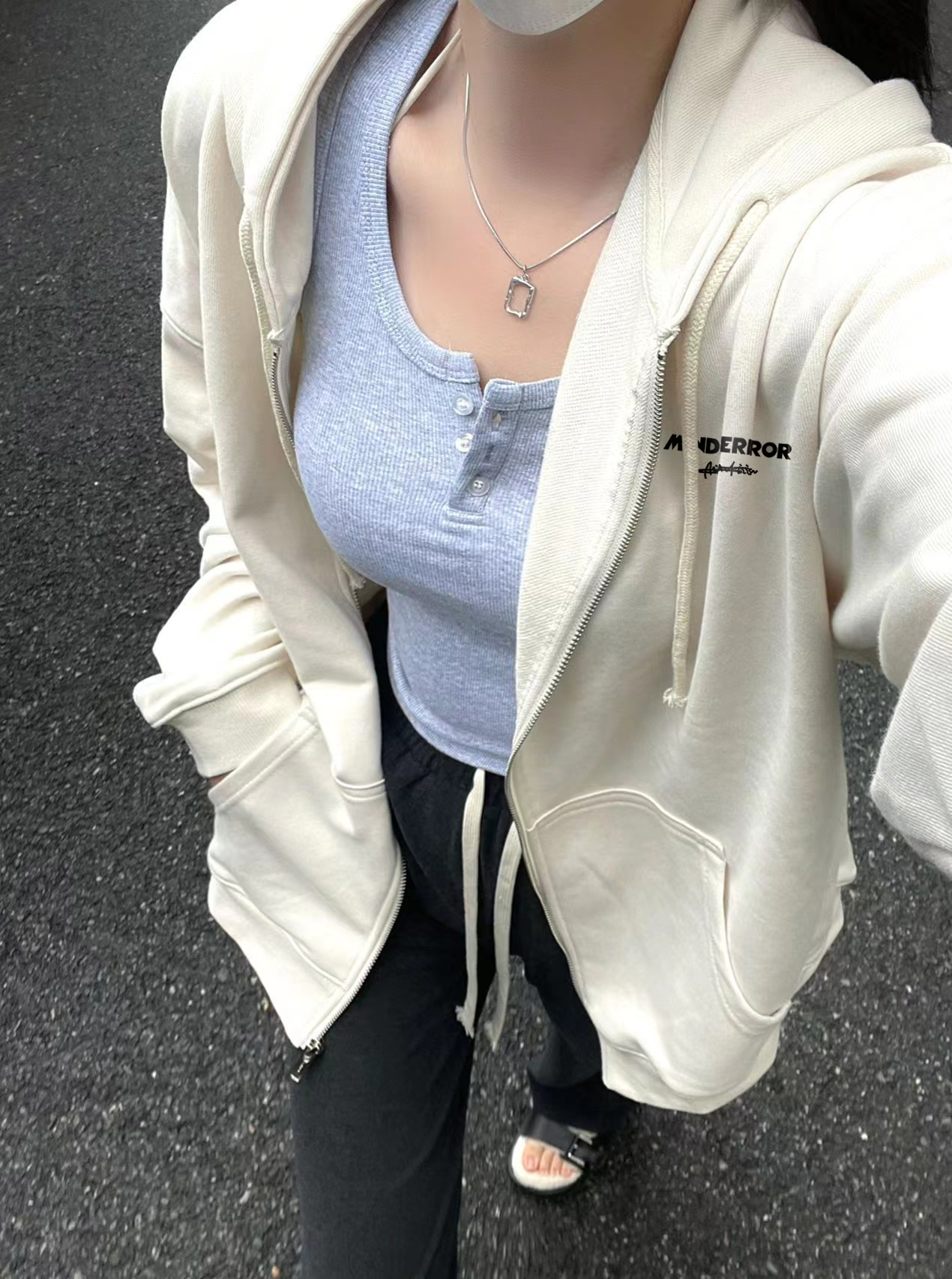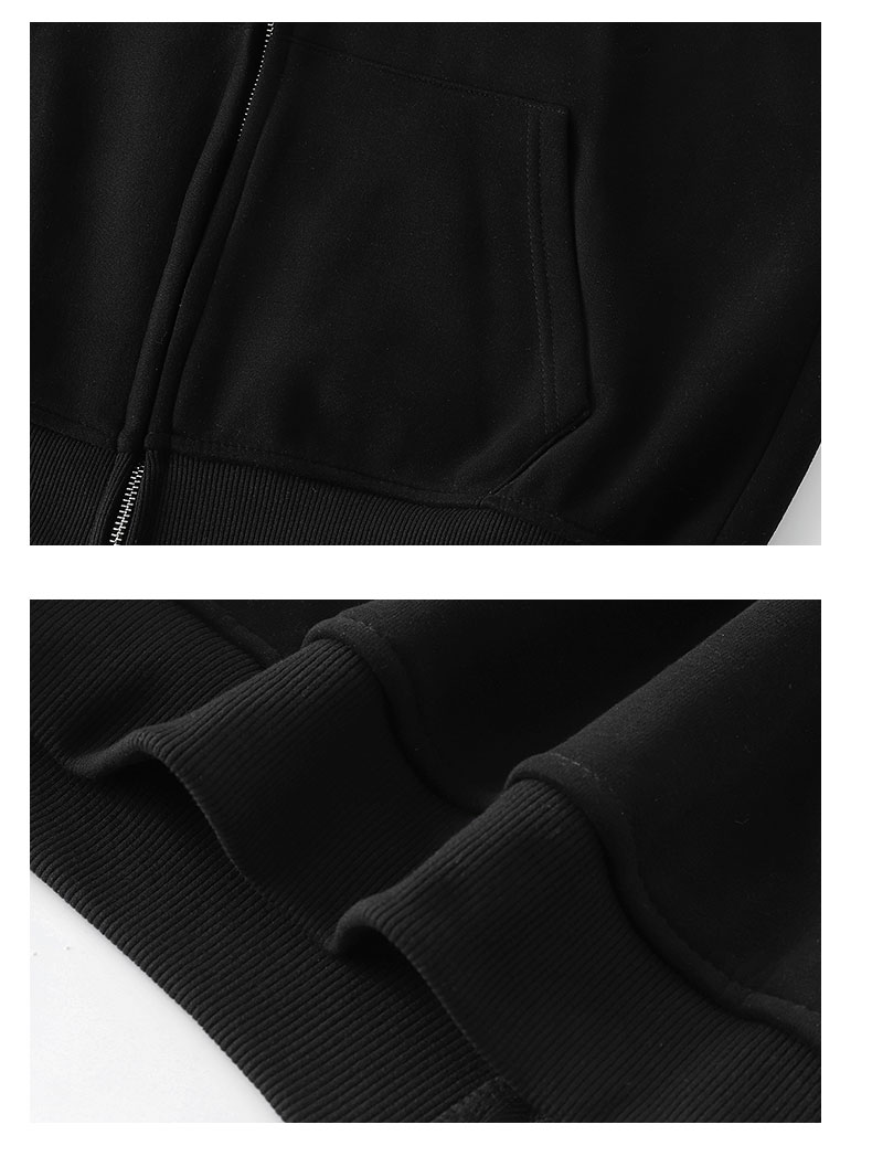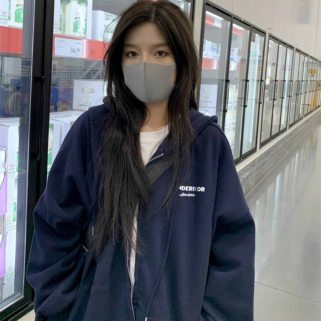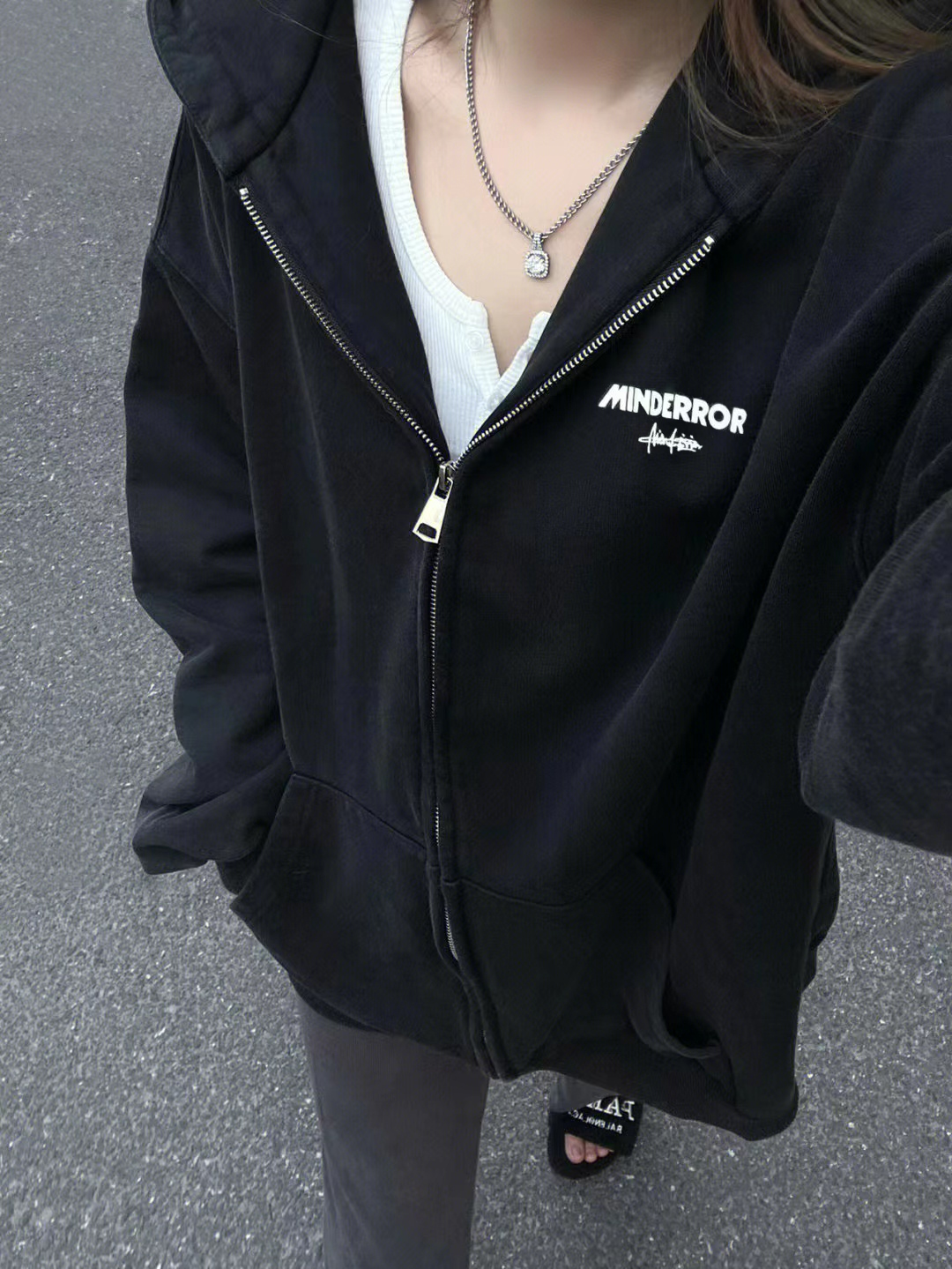 初春黑色純棉拉鍊開衫厚棉T外套女春秋薄款連帽oversize寬鬆小個子