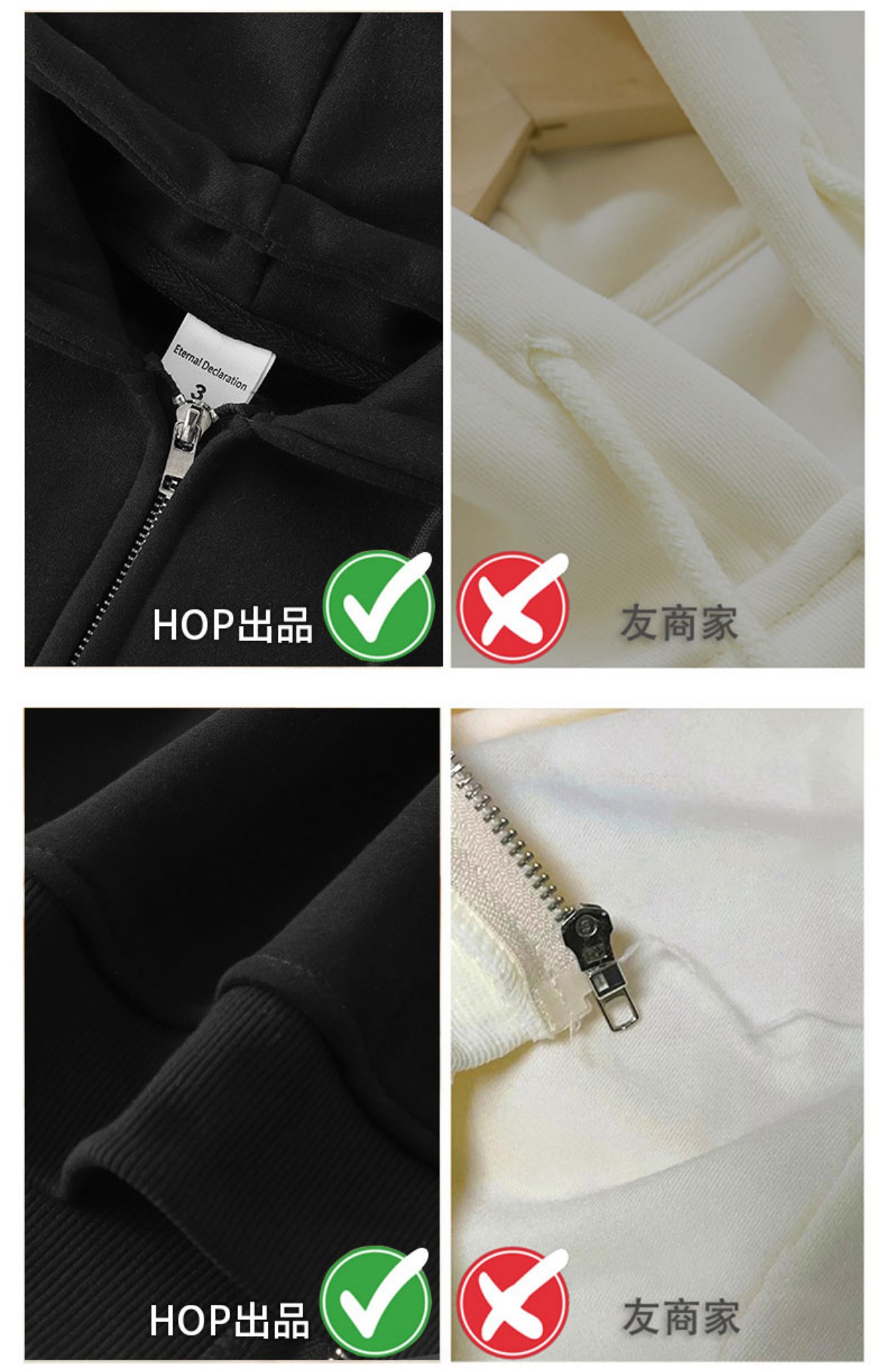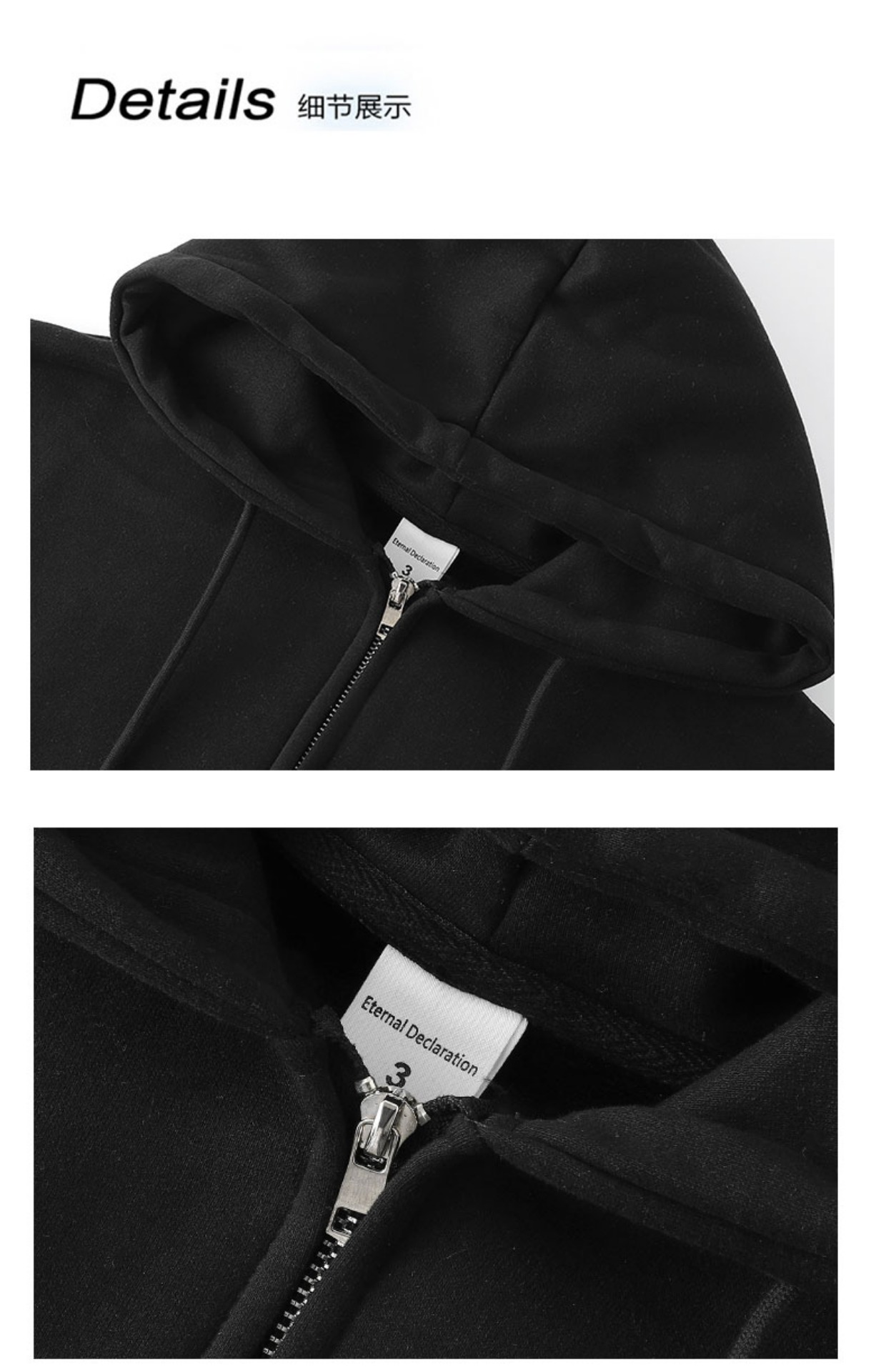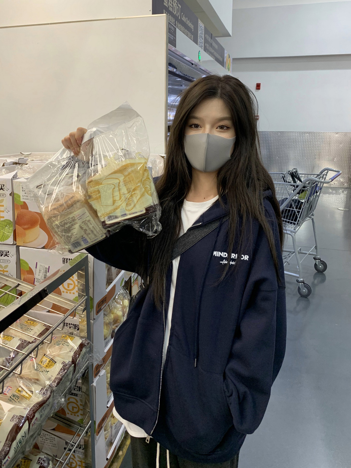 初春黑色純棉拉鍊開衫厚棉T外套女春秋薄款連帽oversize寬鬆小個子