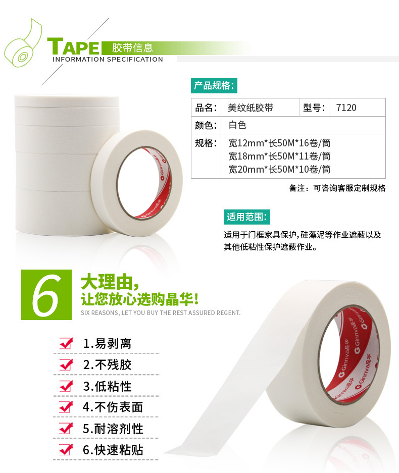 晶华家装美纹纸胶带装修喷漆遮蔽美缝可书写美纹胶和纸胶带批发