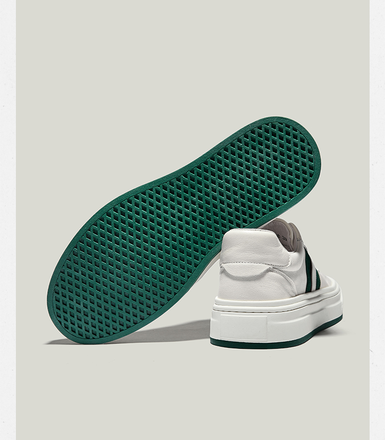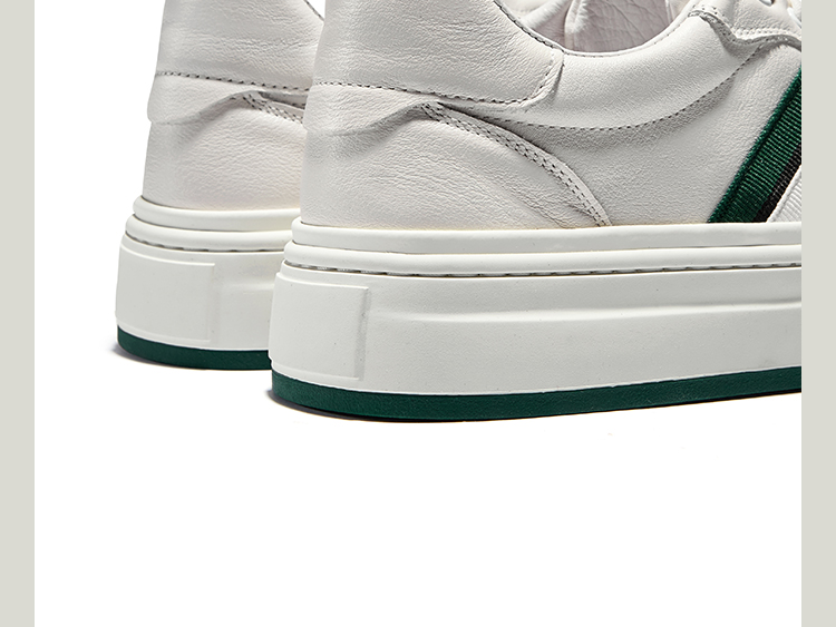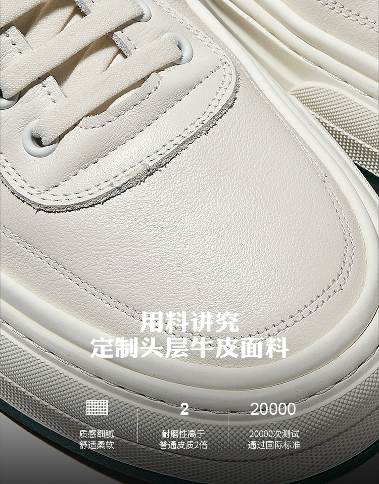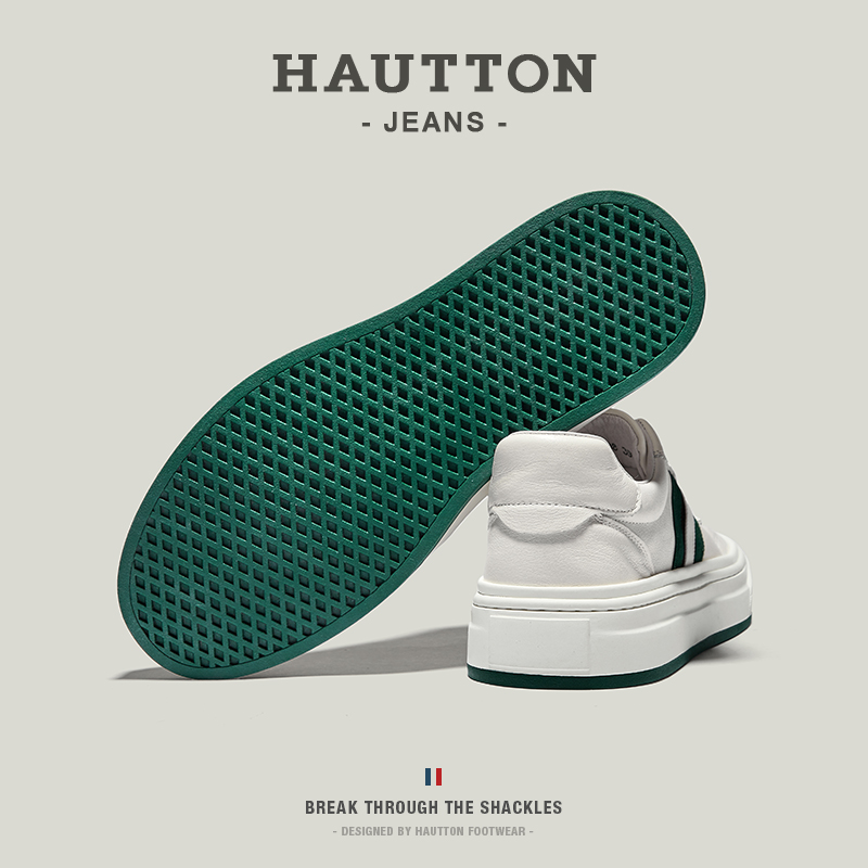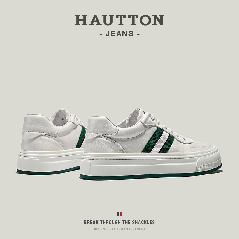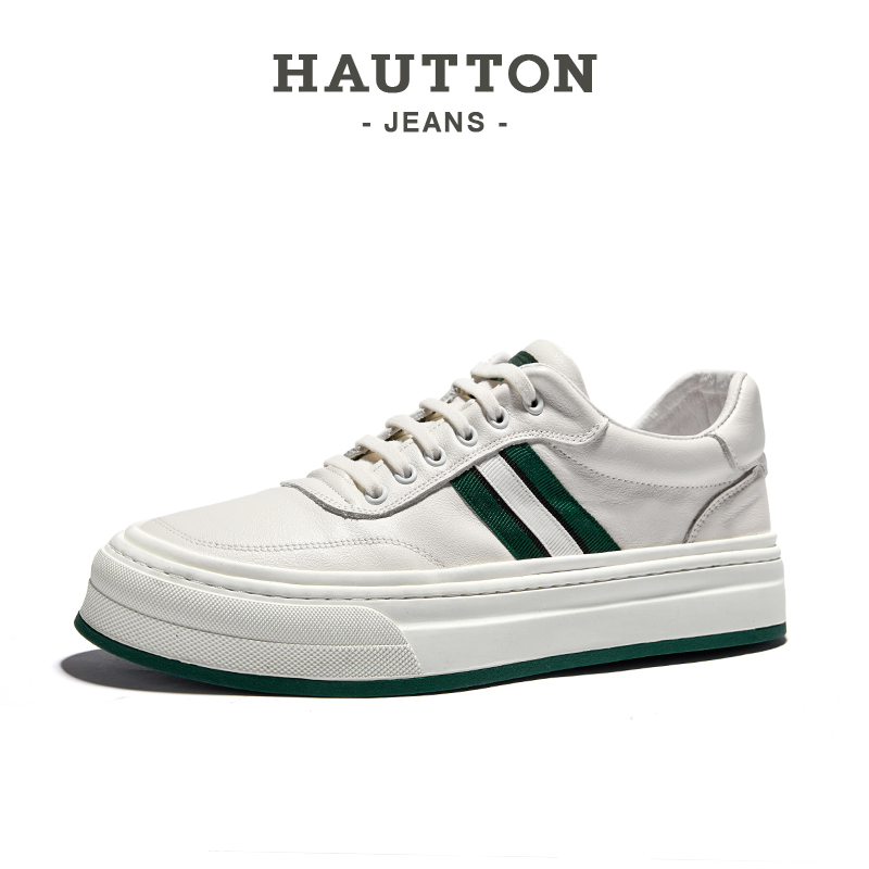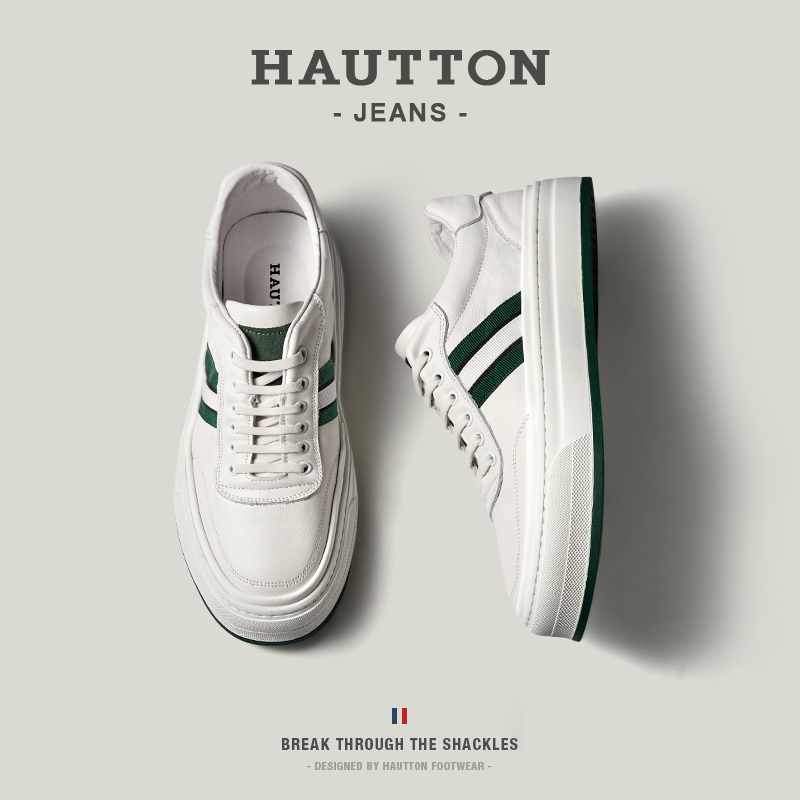 HauttonJeans休閒板鞋男士頭層牛皮小白鞋男款夏季透氣厚底休閒鞋