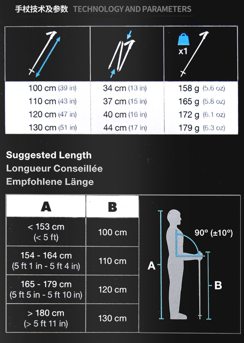 顏色分類 112532-100(適用身高153cm以下,收疊長34cm,約158g/支,一對) 112532-110(適用身高154-164cm,收疊長37cm,約165g/支,一對) 112532-120(適用身高165-179cm,收疊長40cm,約172g/支,一對) 112532-130(適用身高180cm以上,收疊長44cm,約179g/支,一對)