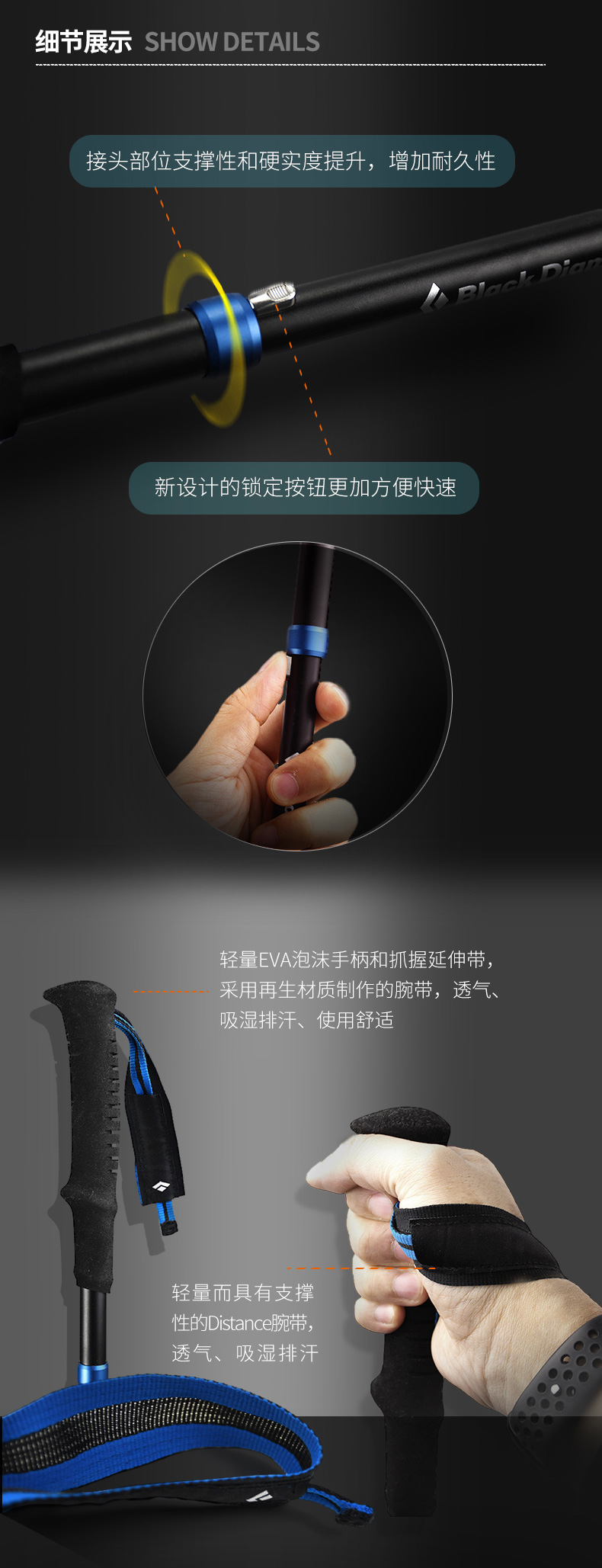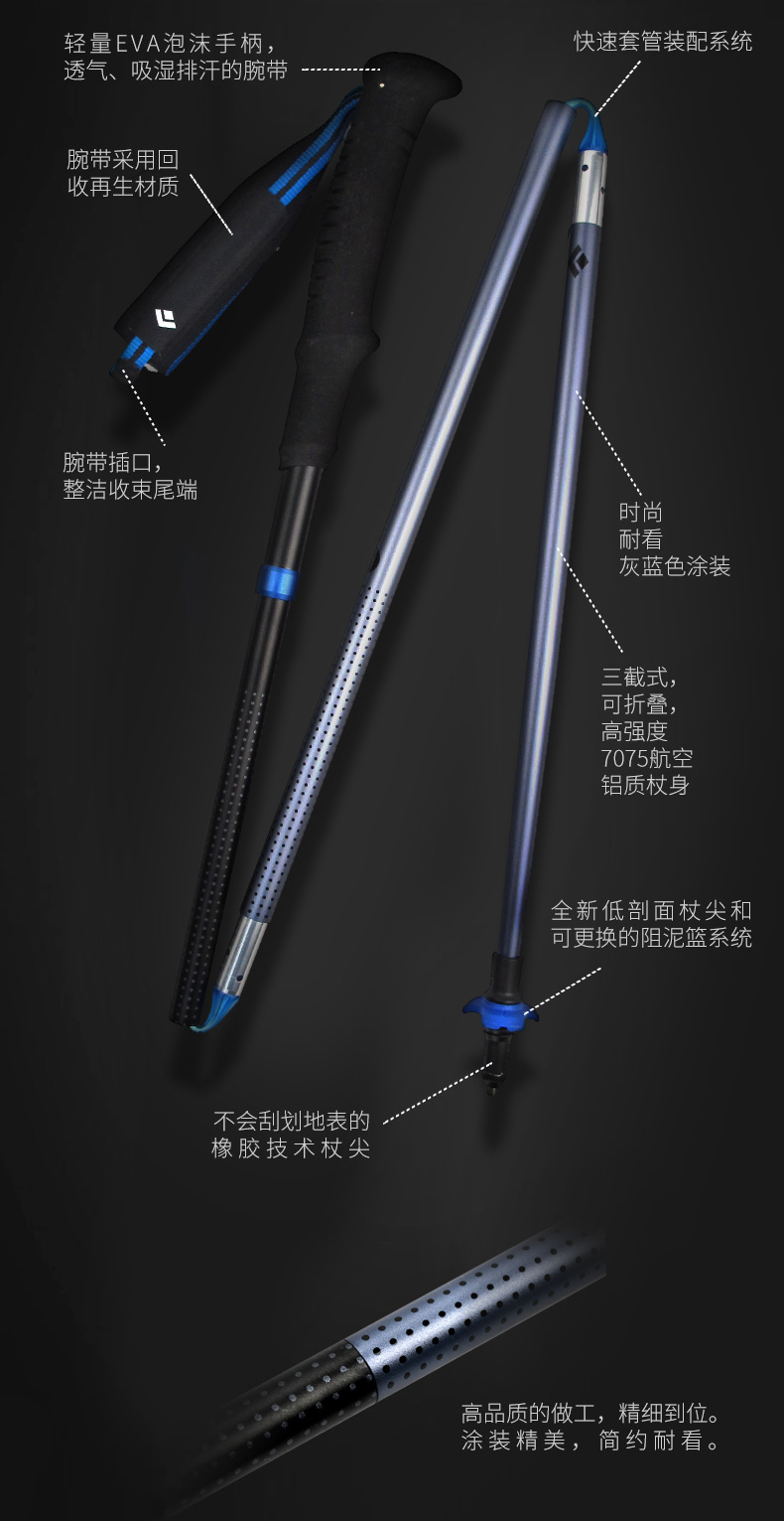blackdiamond黑鑽BD登山手杖戶外鋁合金摺疊徒步越野杖柺杖112532
