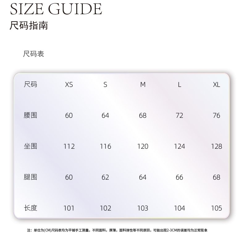 尺寸 XS S M L XL