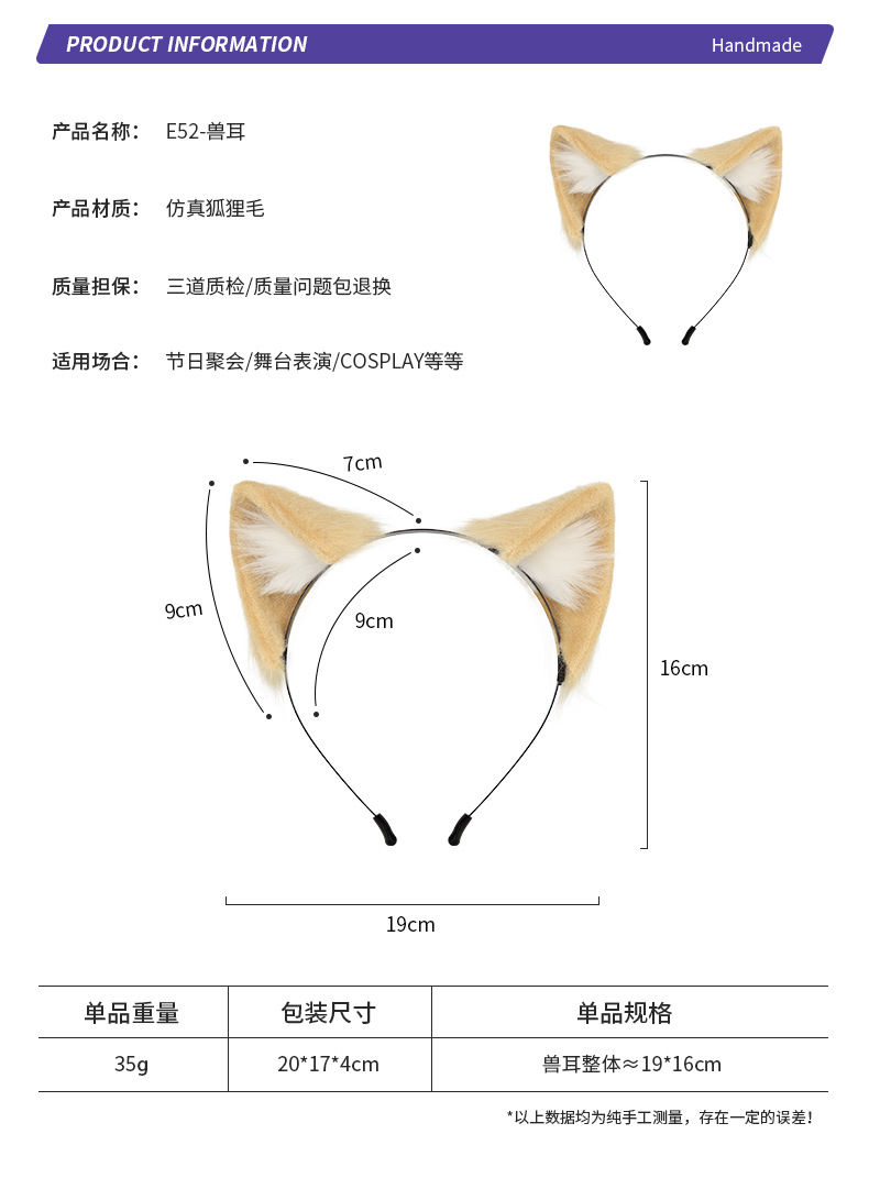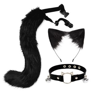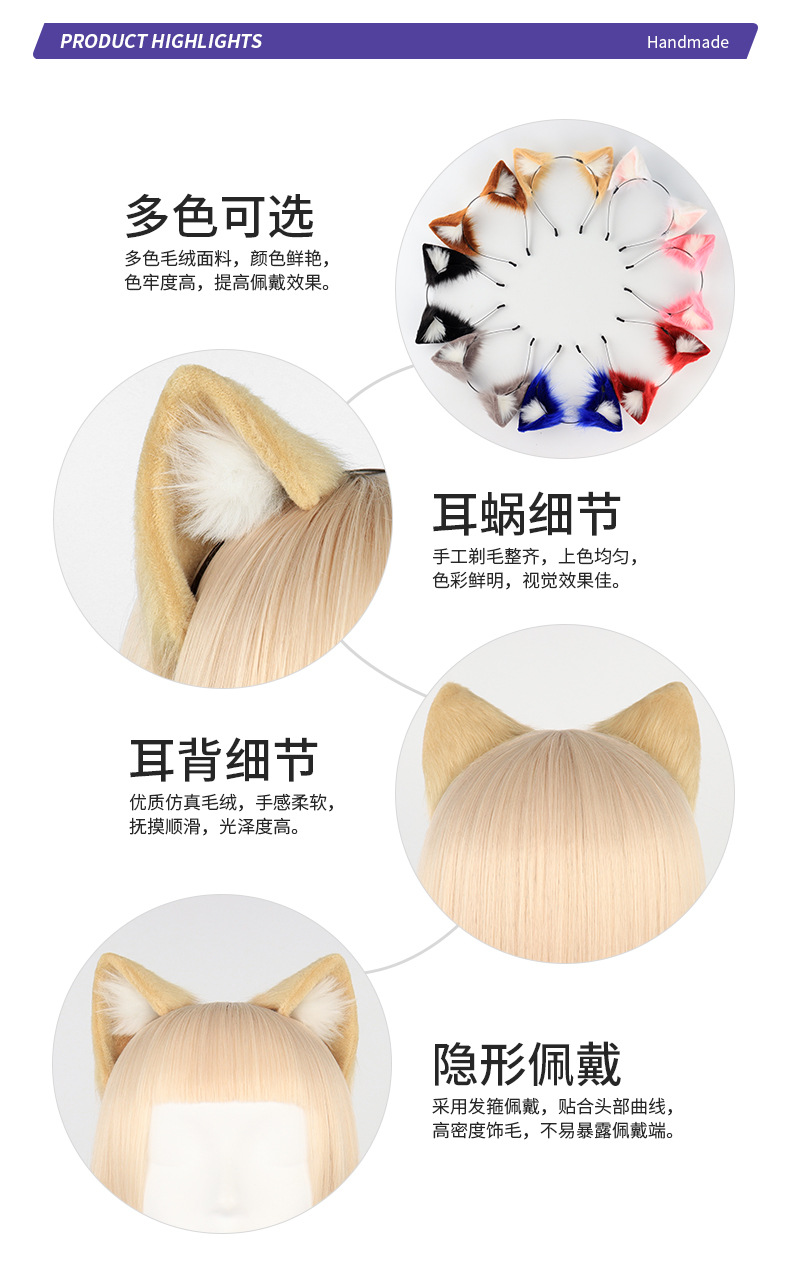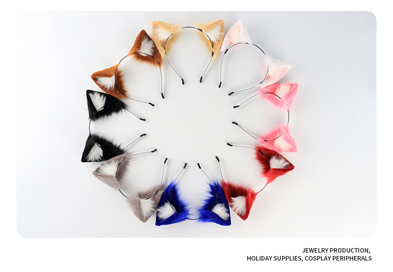 手作仿真猫耳发箍狐狸尾巴配饰二次元兽耳兽尾套装项圈发夹批发
