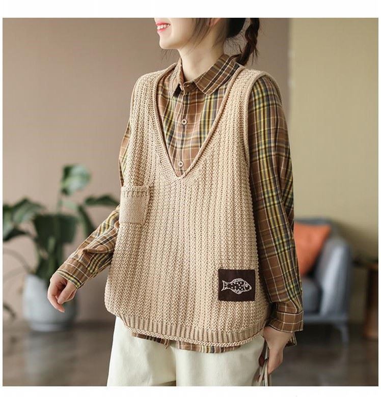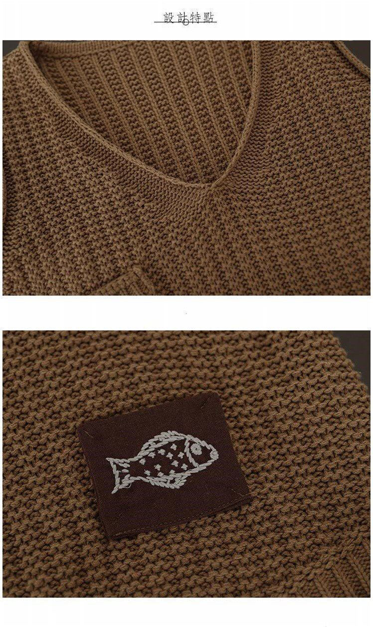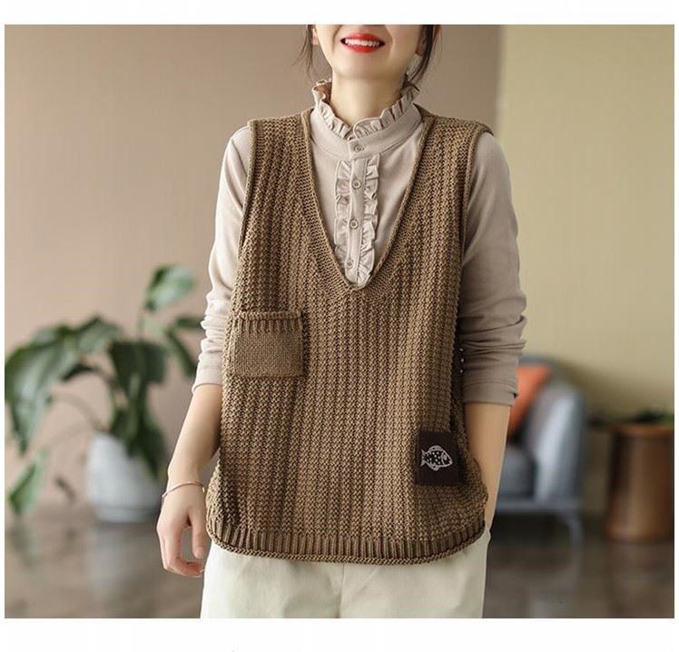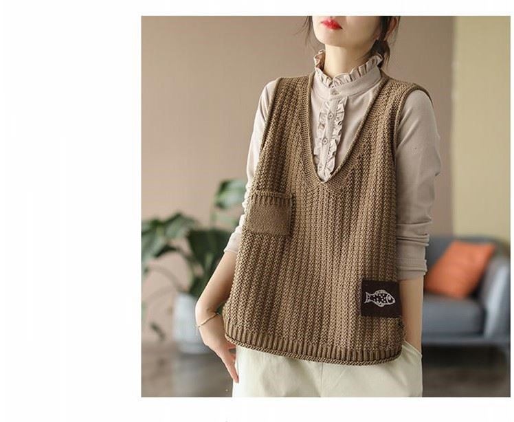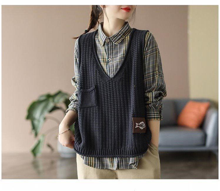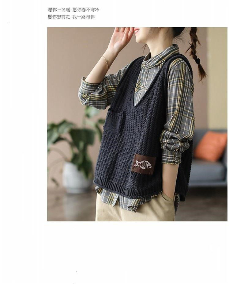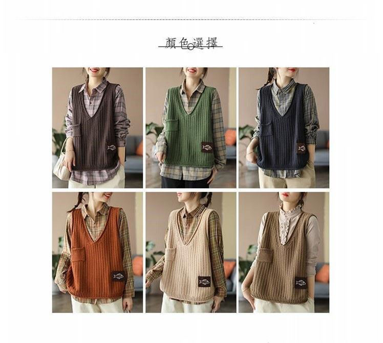 复古贴标马甲针织背心女2022秋季新款V领宽松休闲套头针织衫马夹