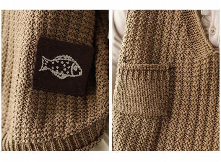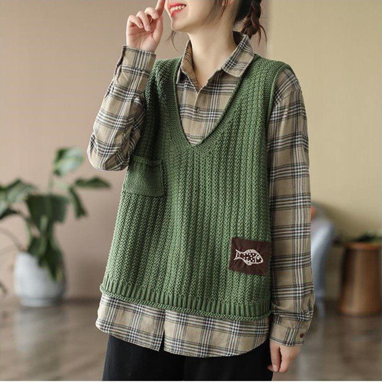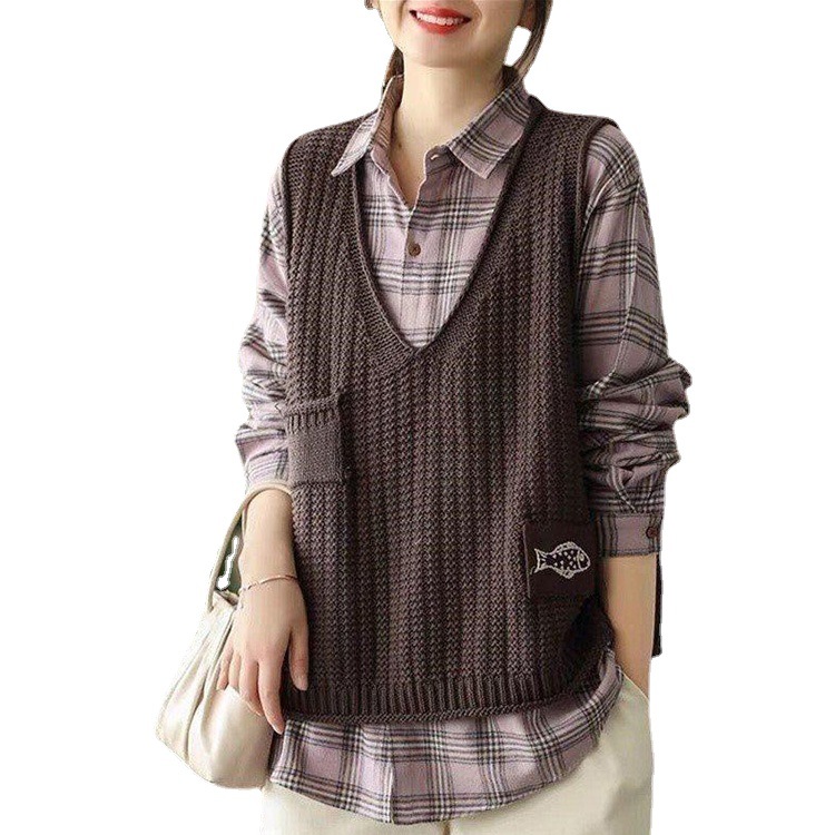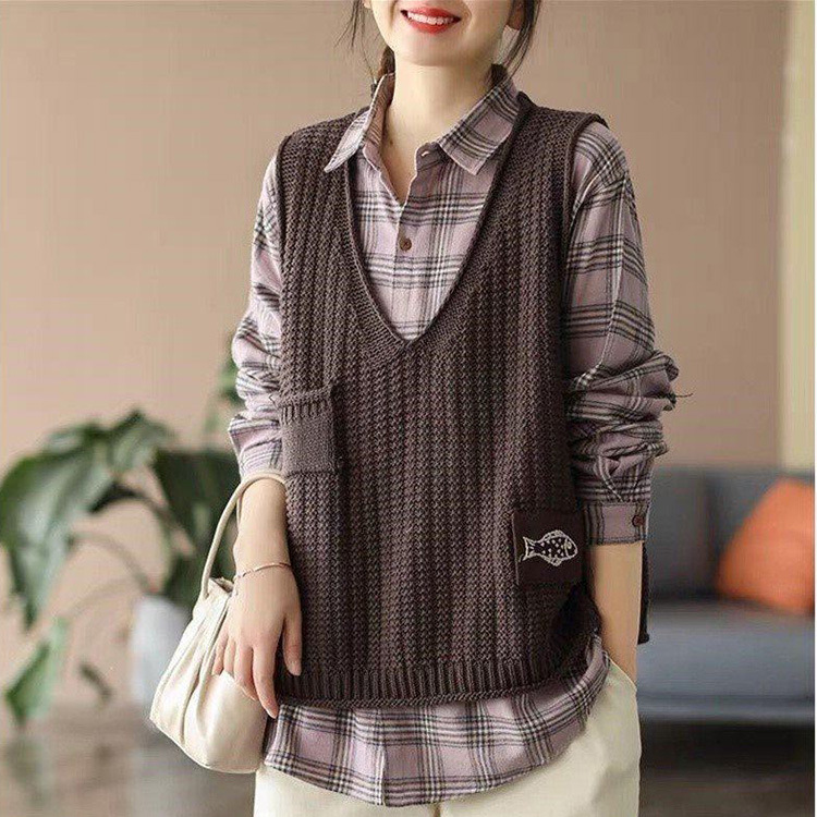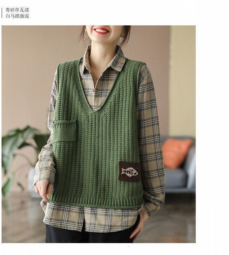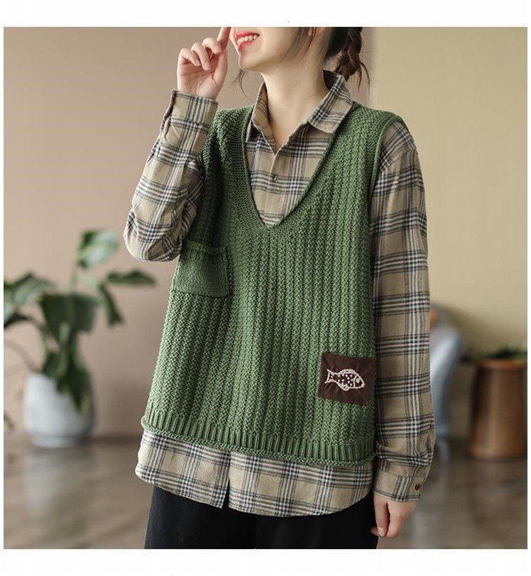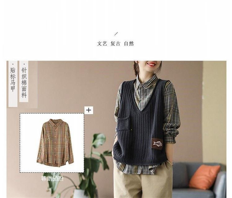 复古贴标马甲针织背心女2022秋季新款V领宽松休闲套头针织衫马夹