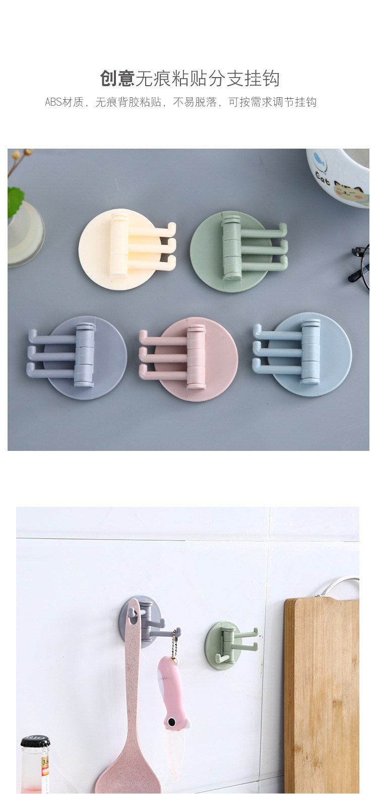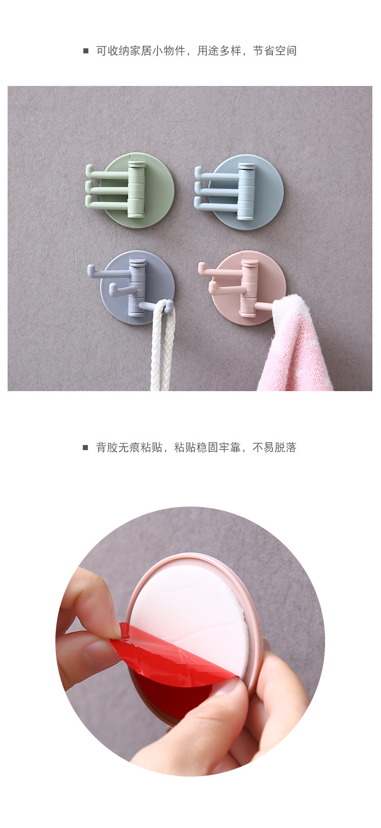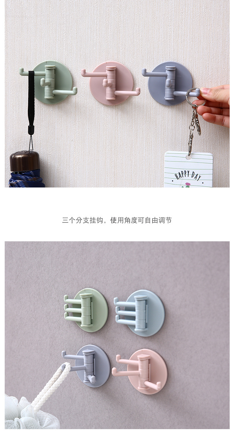 无痕粘贴3分支旋转挂钩厨房卫浴墙壁挂钩居家素色挂钩免钉粘钩3钩