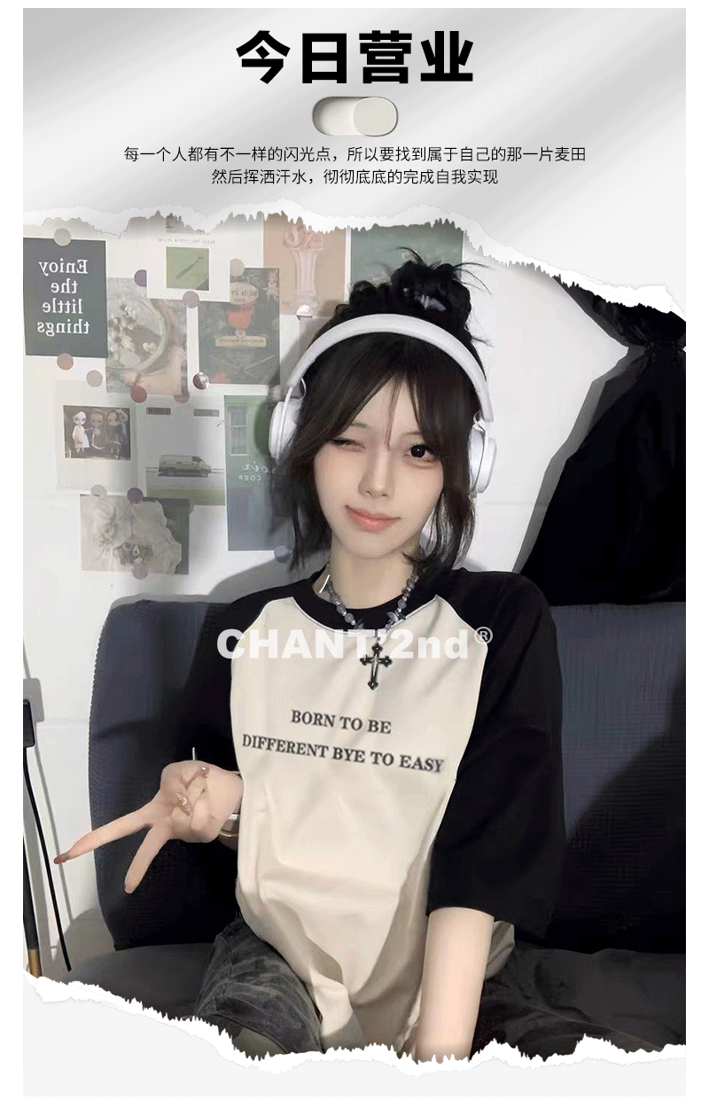 azlan美式復古短袖t恤女2023新款夏季大尺碼純棉半袖寬鬆插肩袖上衣