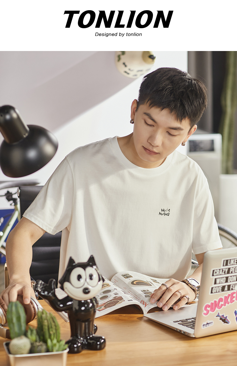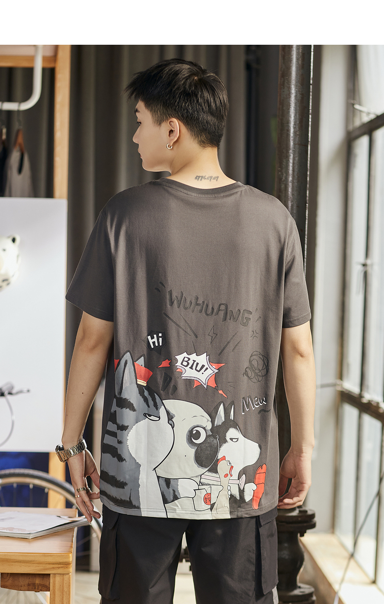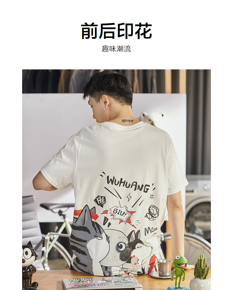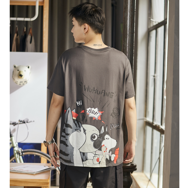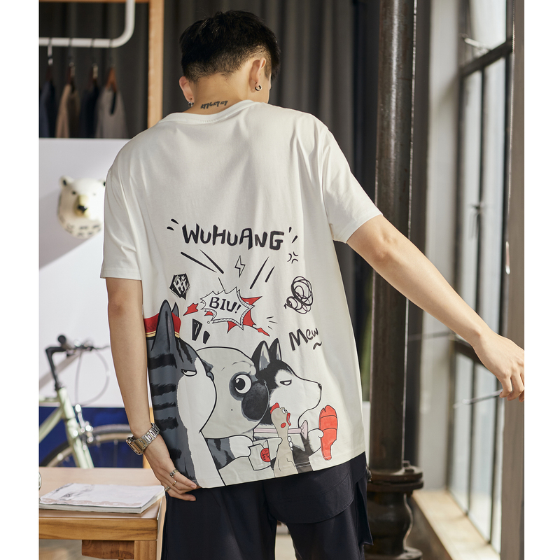 [吾皇貓聯名]唐獅2023年夏季新款短袖T恤男寬鬆後背潮流印花T恤