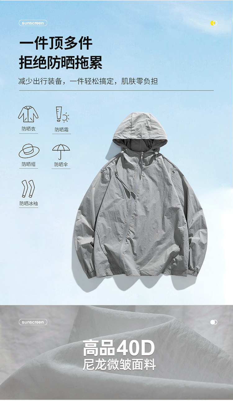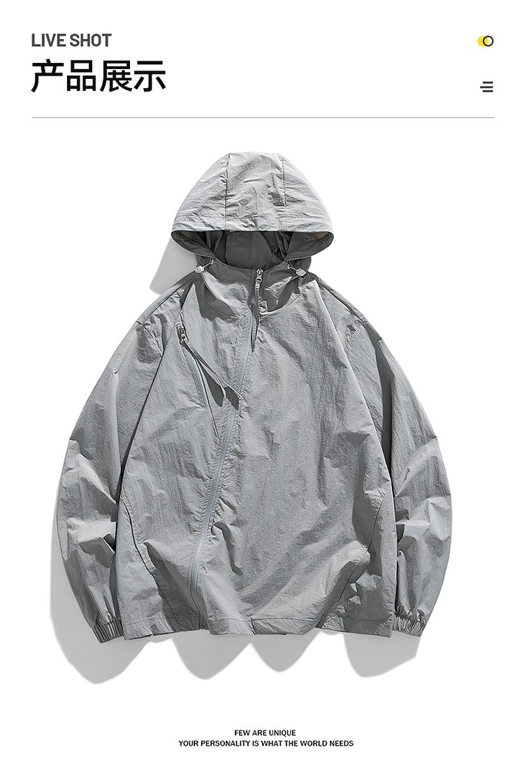 男士純色冰絲防曬衣男夏季薄款防曬服男款連帽外套輕薄透氣皮膚衣