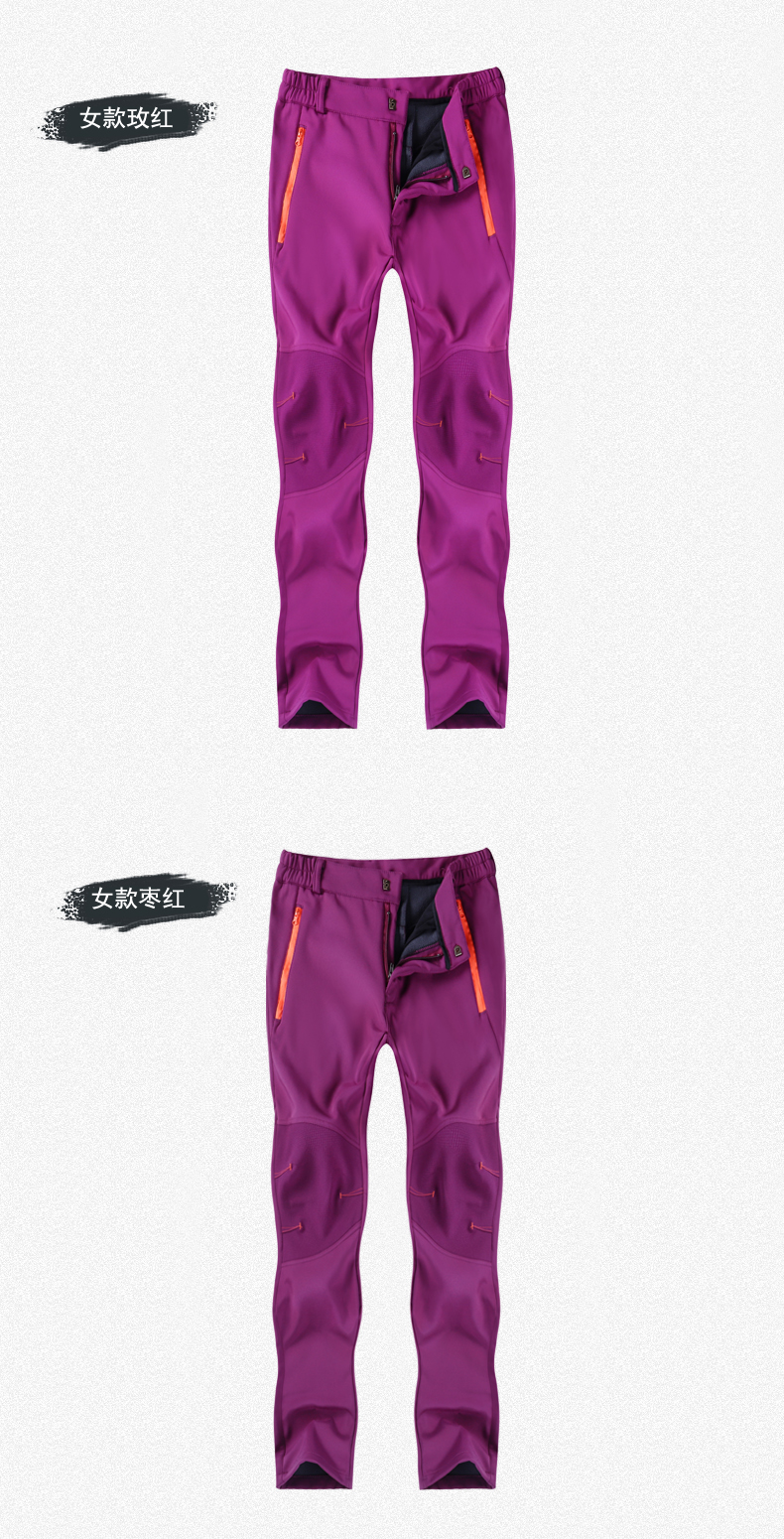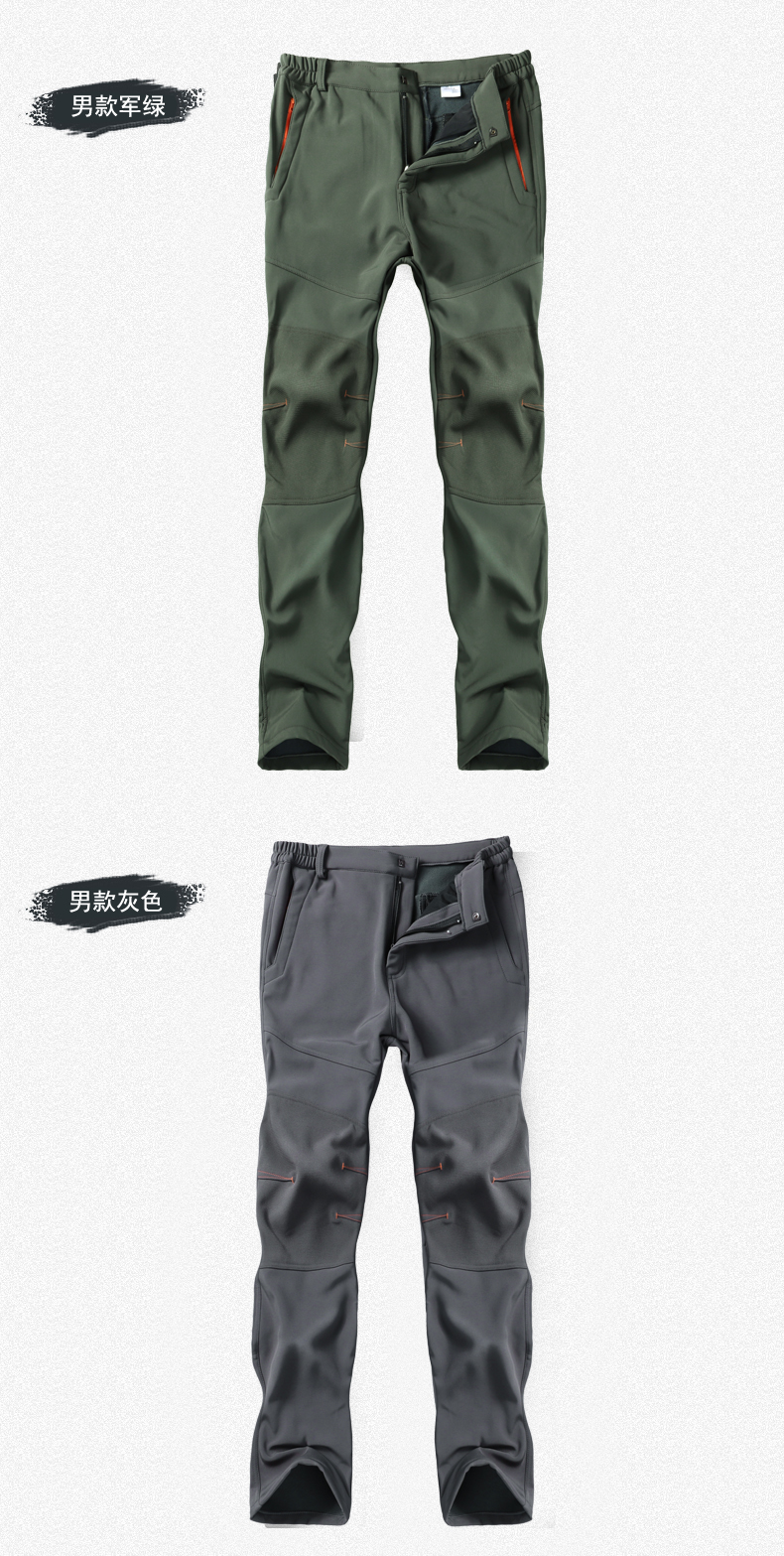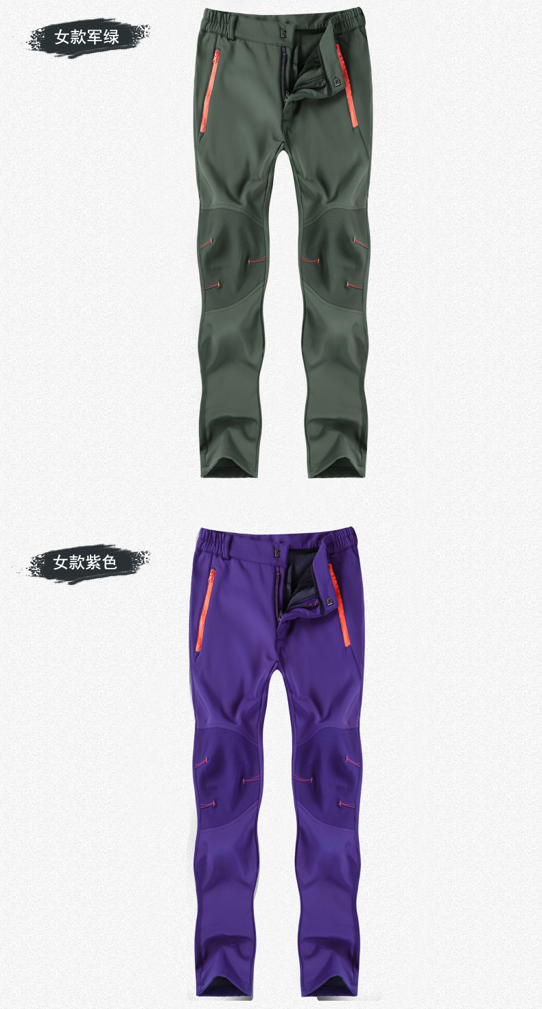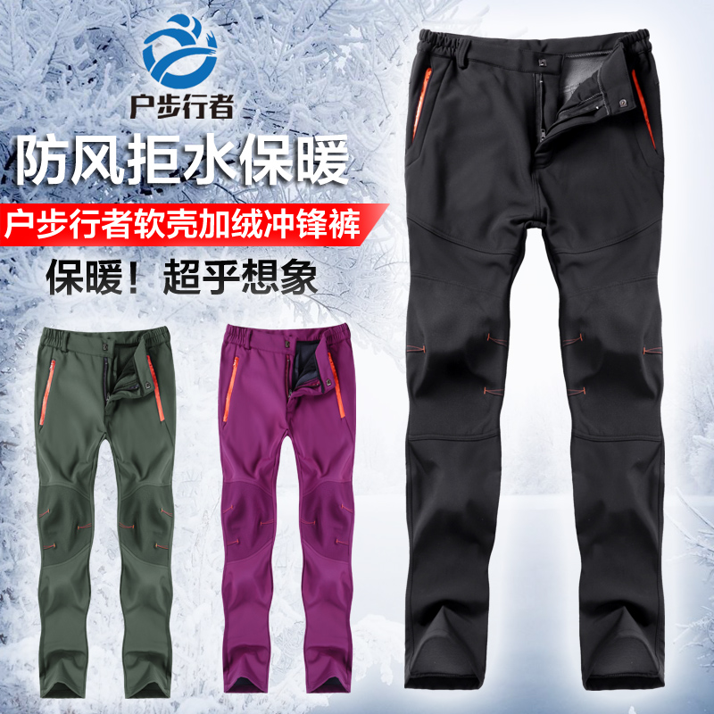 戶步行者冬季戶外衝鋒褲男女加絨加厚登山滑雪防風防水抓絨軟殼褲