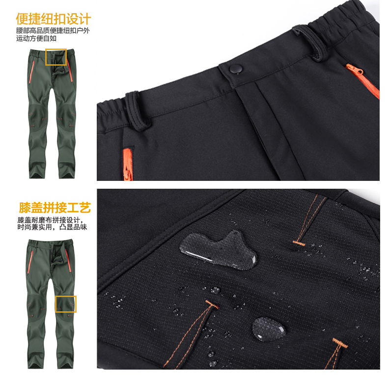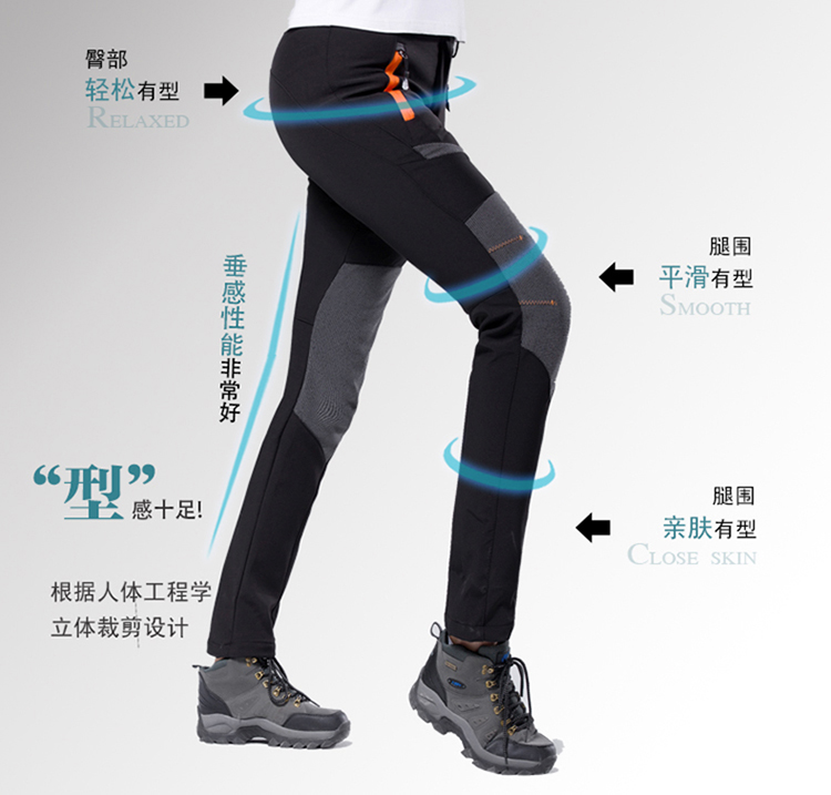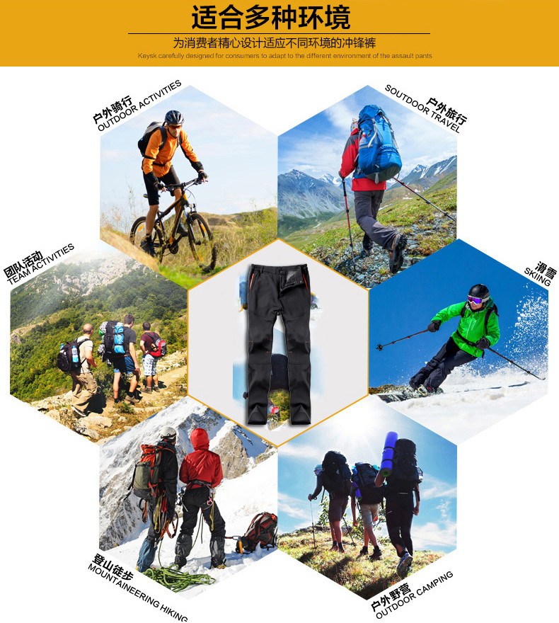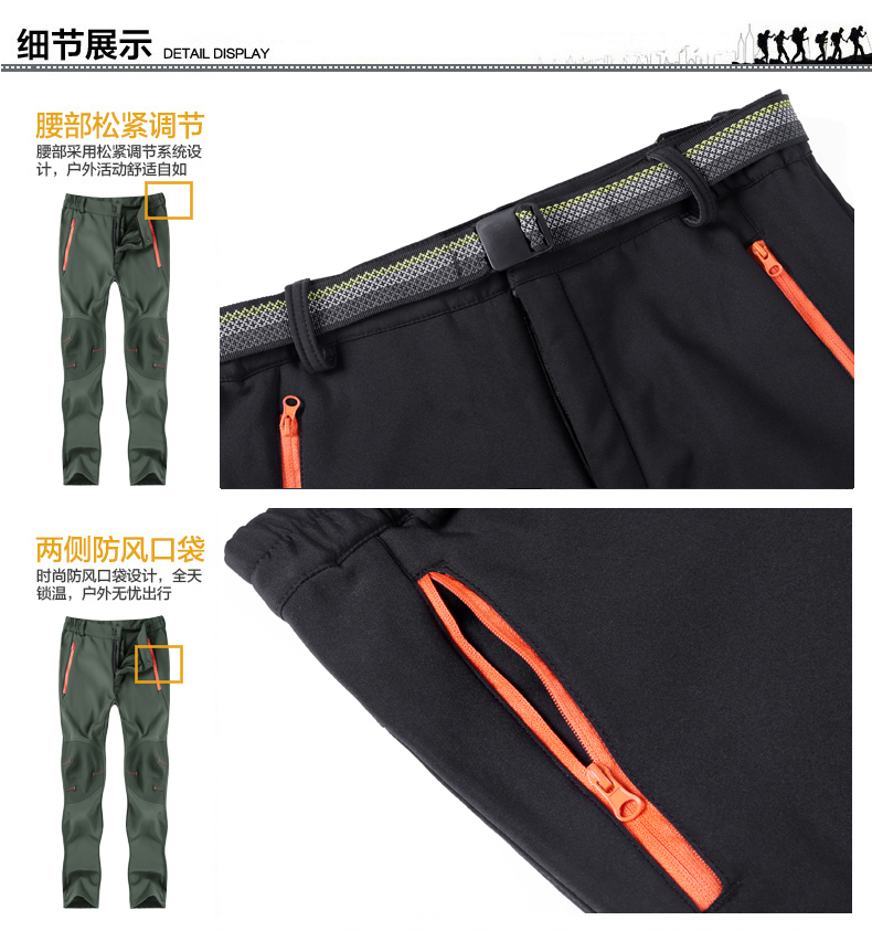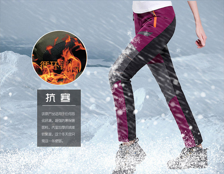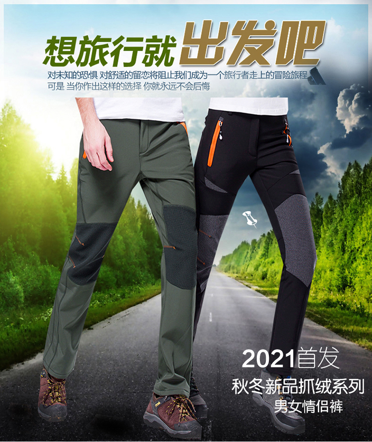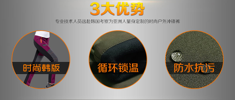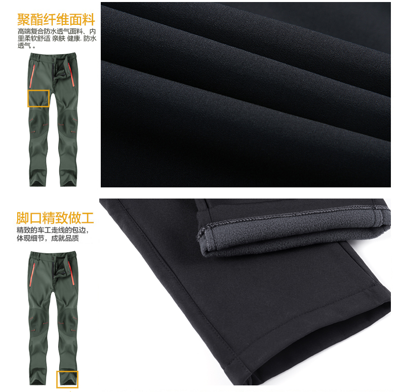戶步行者冬季戶外衝鋒褲男女加絨加厚登山滑雪防風防水抓絨軟殼褲