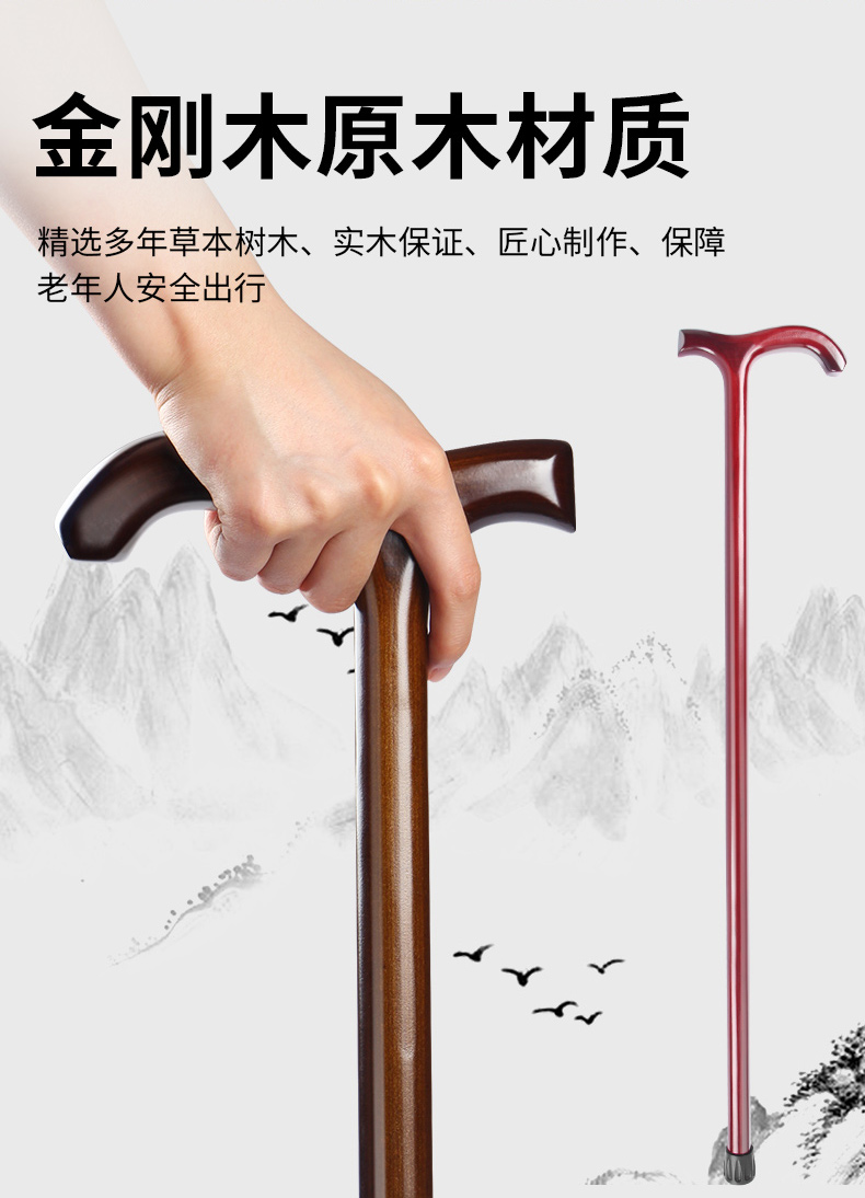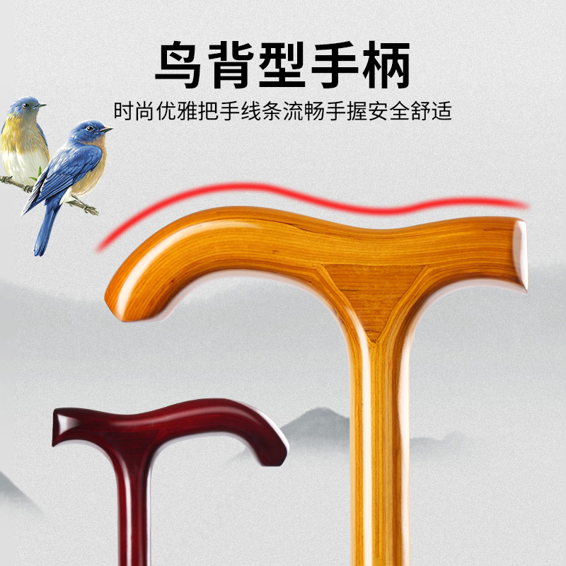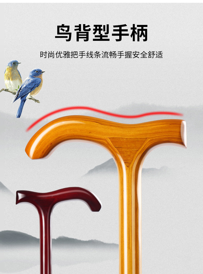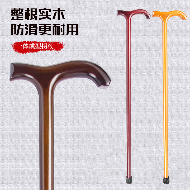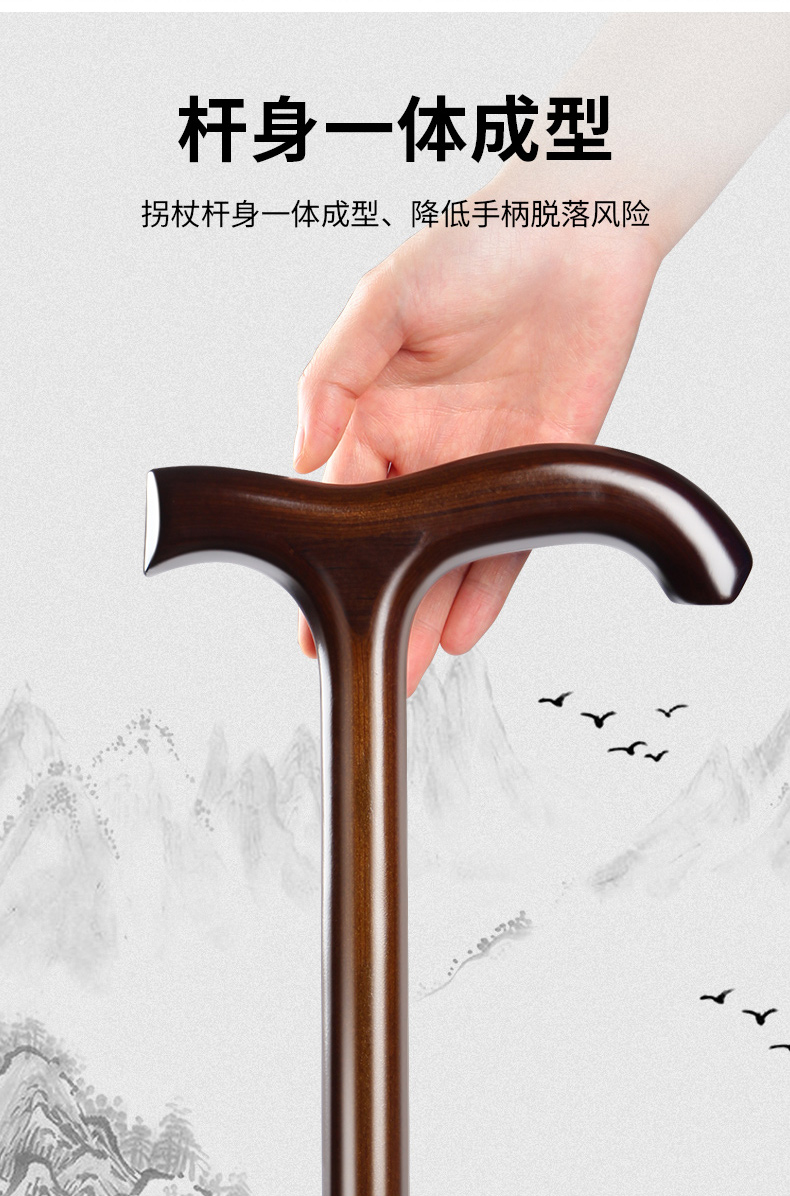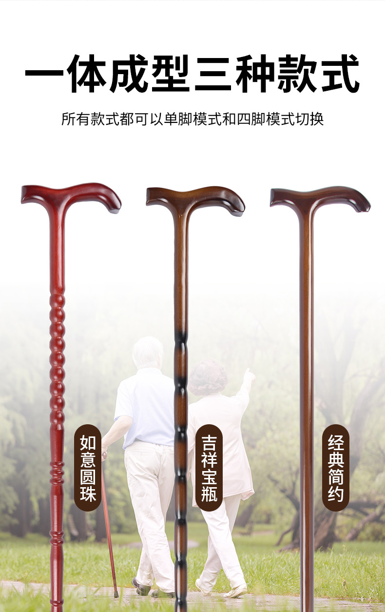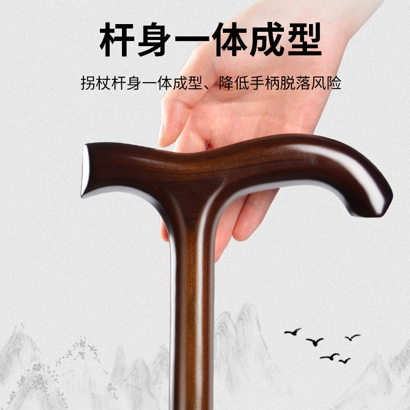 一體實木老人柺杖輕便防滑老年人手杖四腳穩固柺棍木頭拐扙拄手棍