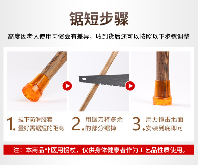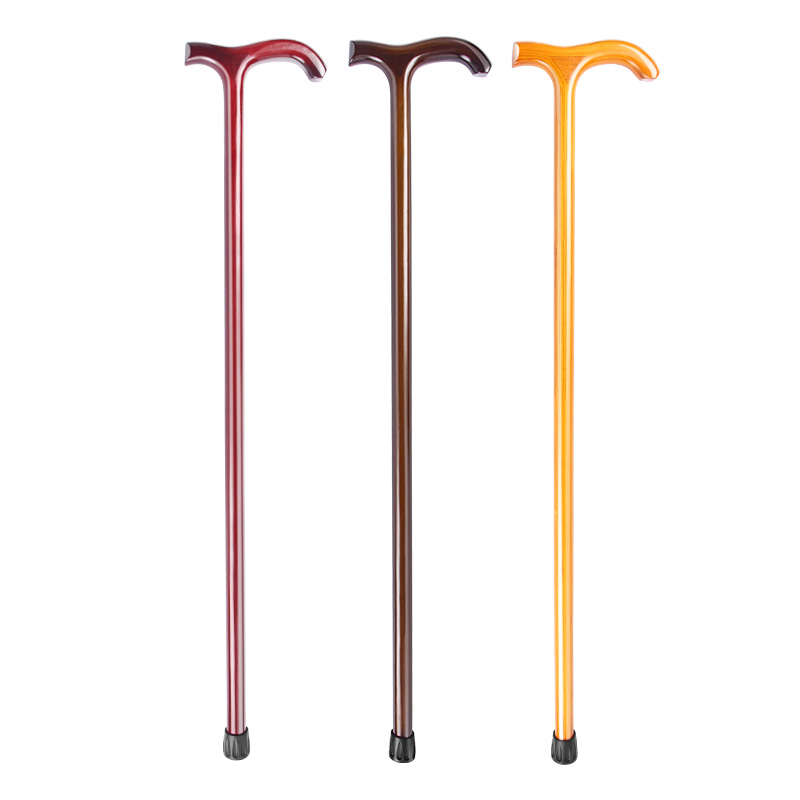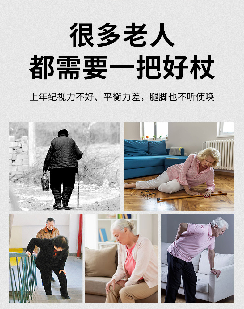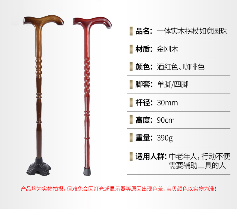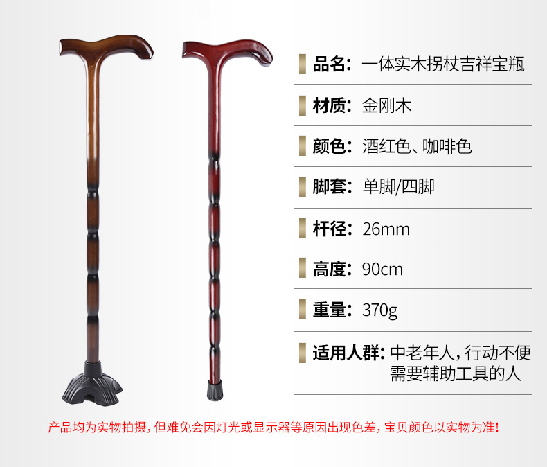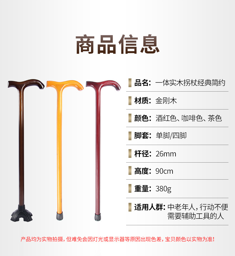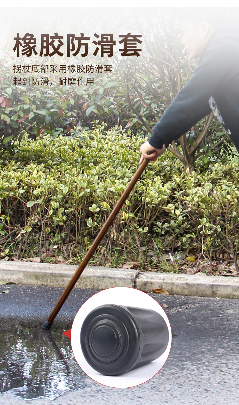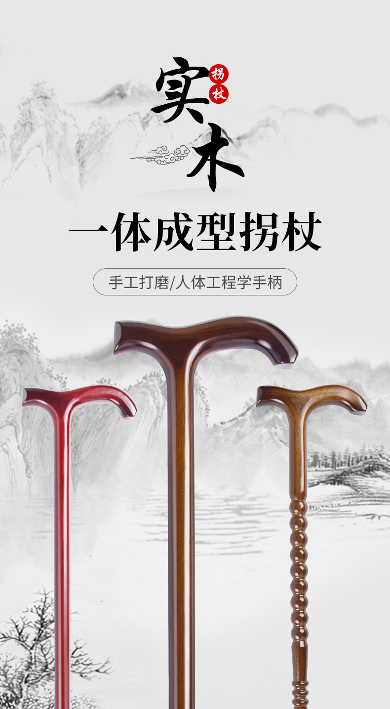 一體實木老人柺杖輕便防滑老年人手杖四腳穩固柺棍木頭拐扙拄手棍