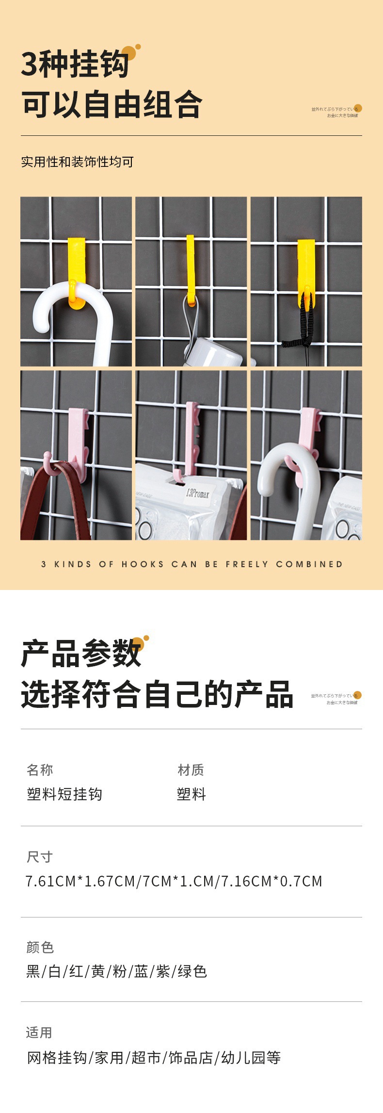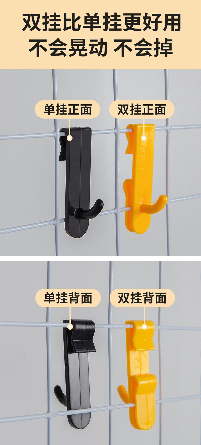 网格挂钩片铁丝网家用收纳无痕货架铁网勾陈列幼儿园彩色塑料代发