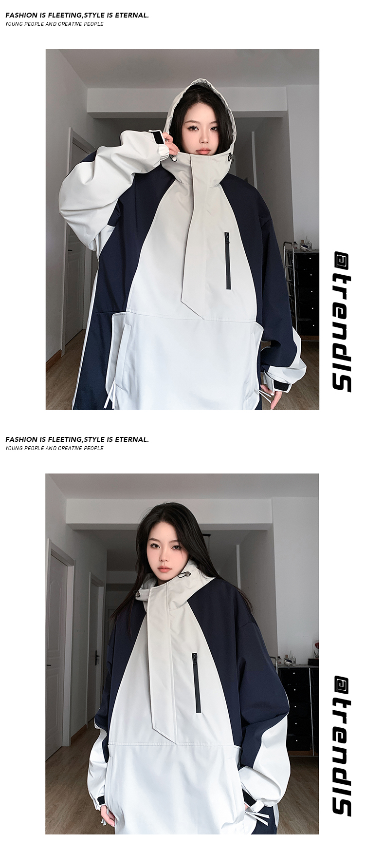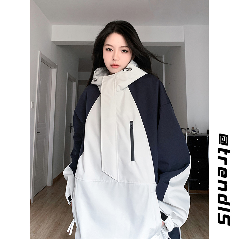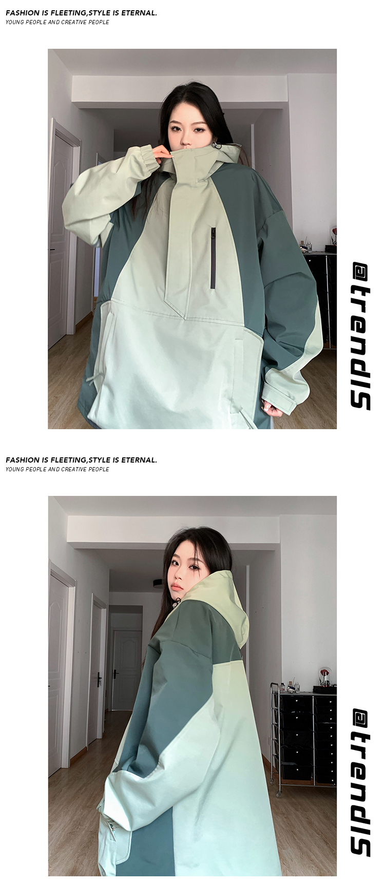 國潮機能風衝鋒衣外套高級感設計感vintage撞色拼接連帽運動衫夾克
